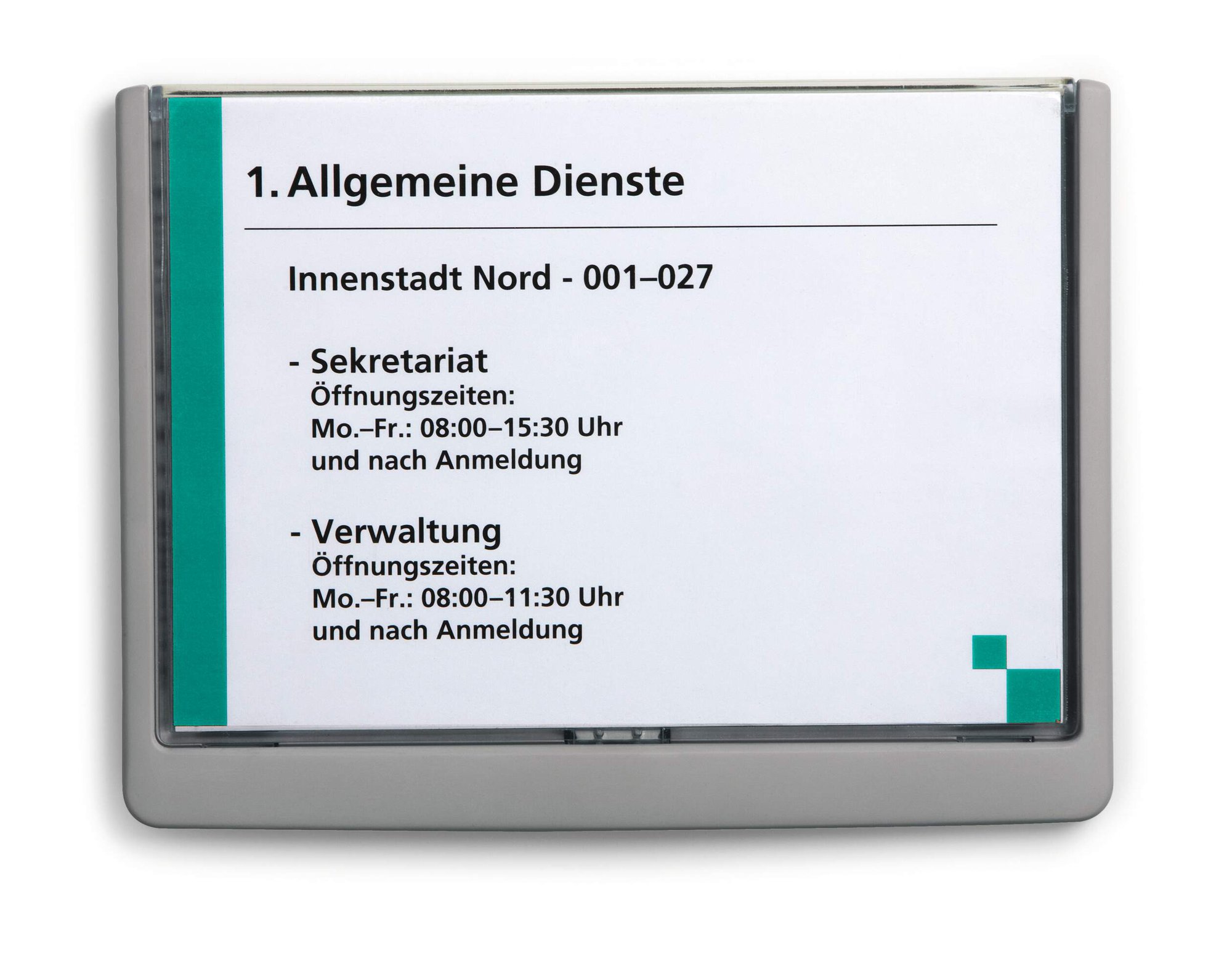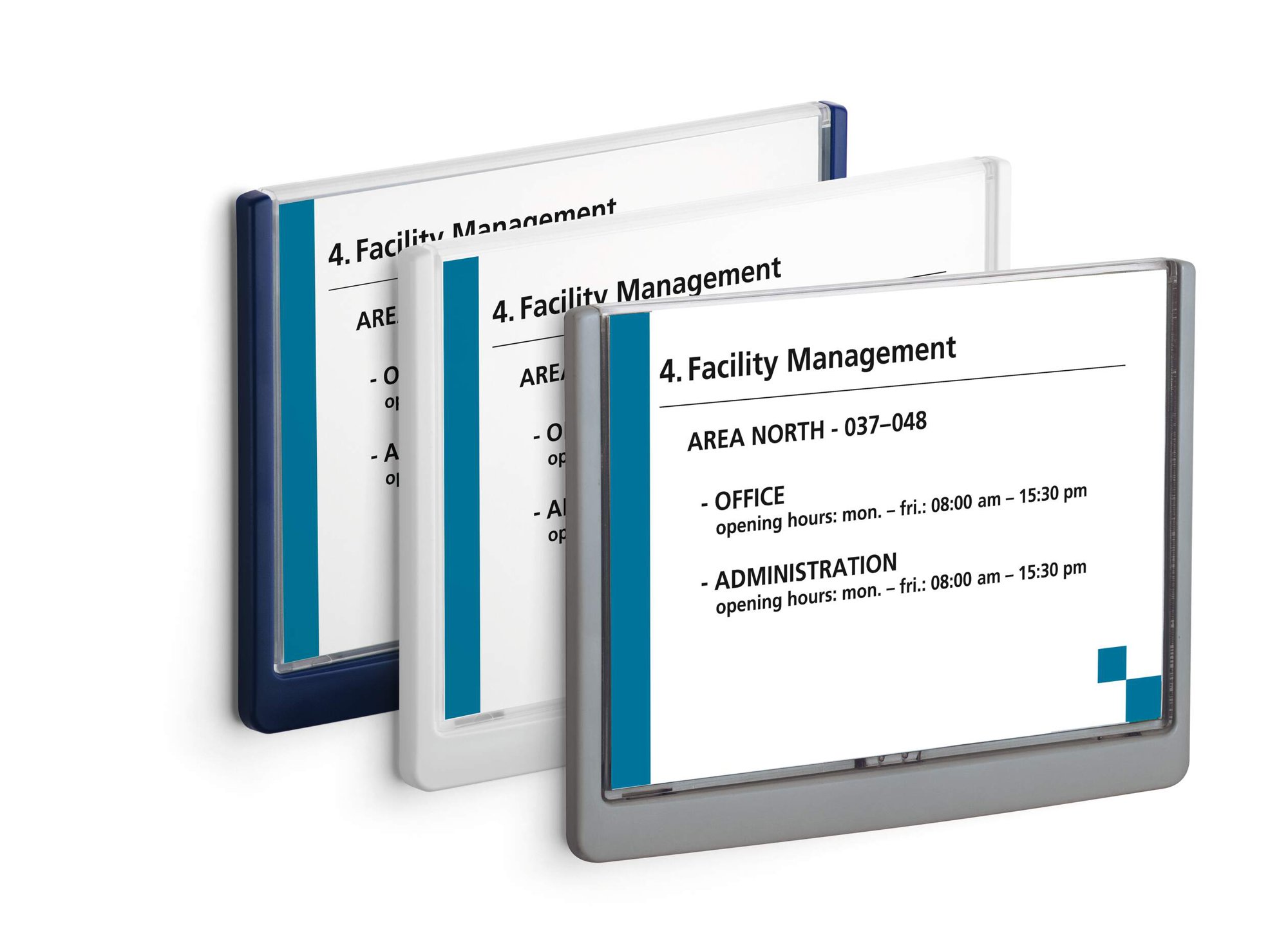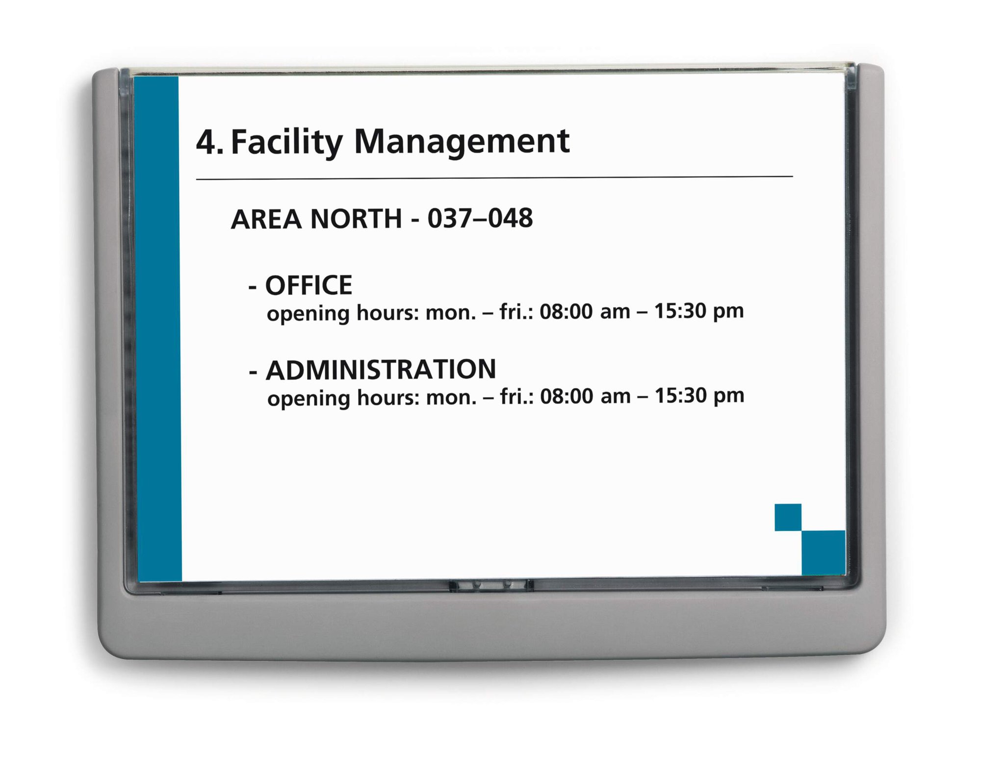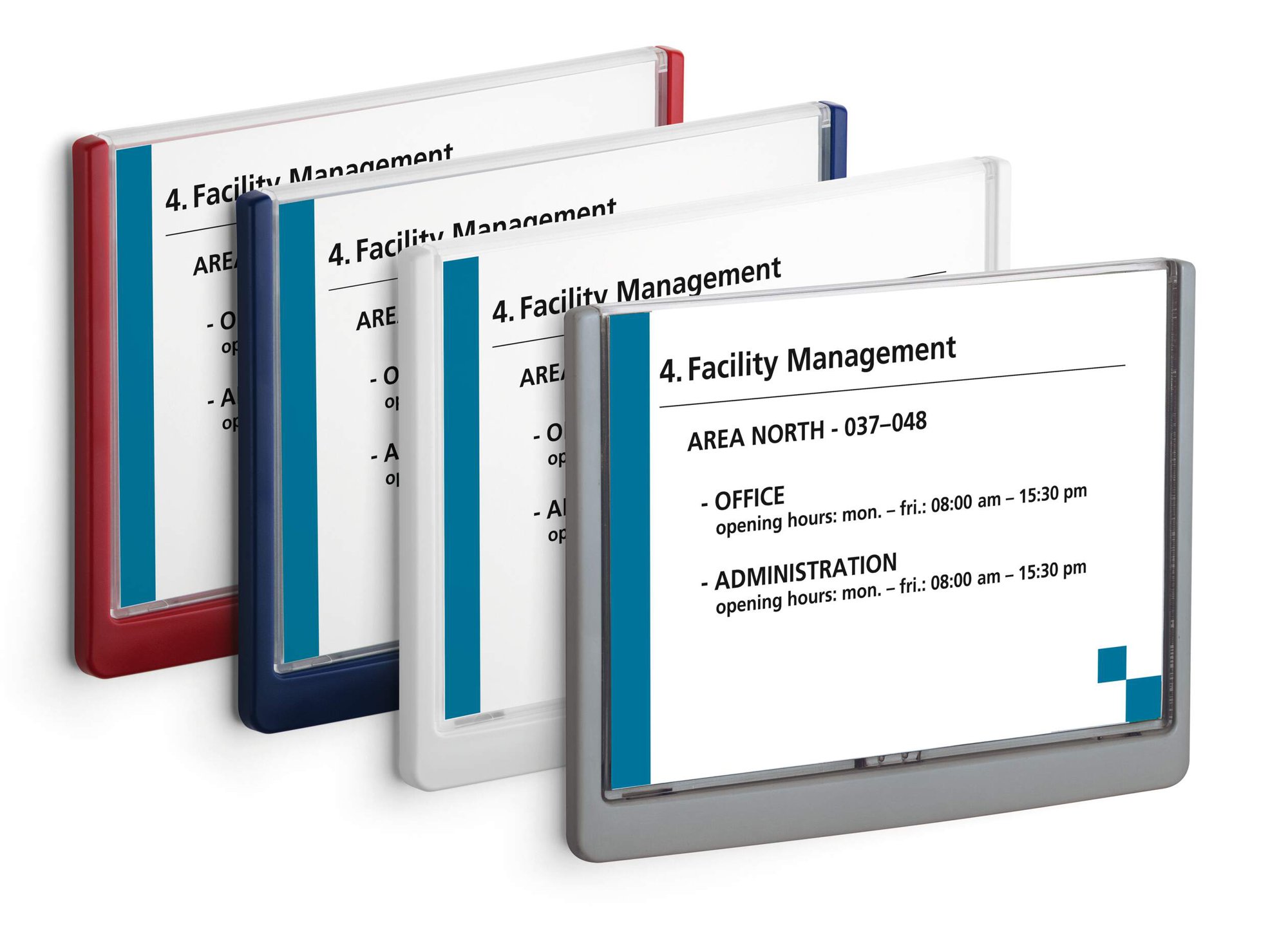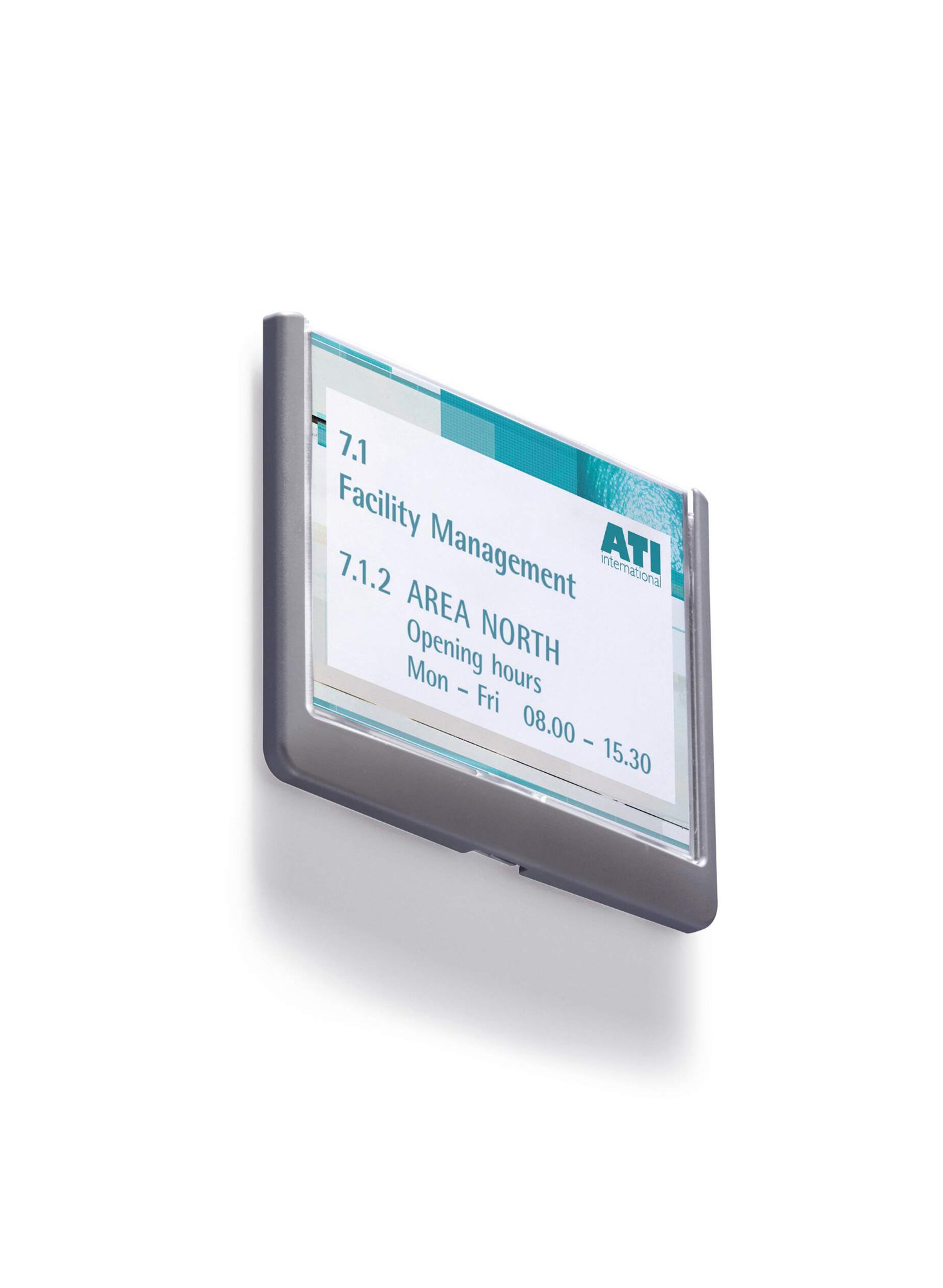 CLICK SIGN is a high quality ABS door sign range, with a pull-out viewing window to easily replace inserts. They feature an anti-scratch window and a variety of mounting options for different surfaces. They are a durable and versatile signage solution.<br><br>Compatible with printable inserts (product # 485502)<br><br>Includes:<br>1X Doorplate CLICK SIGN<br>1X 160gsm blank insert cards<br>2X Nylon wall plugs<br>2X Galvanised screws<br>2X Adhesive buttons<br>1X Instructions<br><br>Insert dimensions: A5 Landscape (210 x 148 mm)<br>Made in Germany