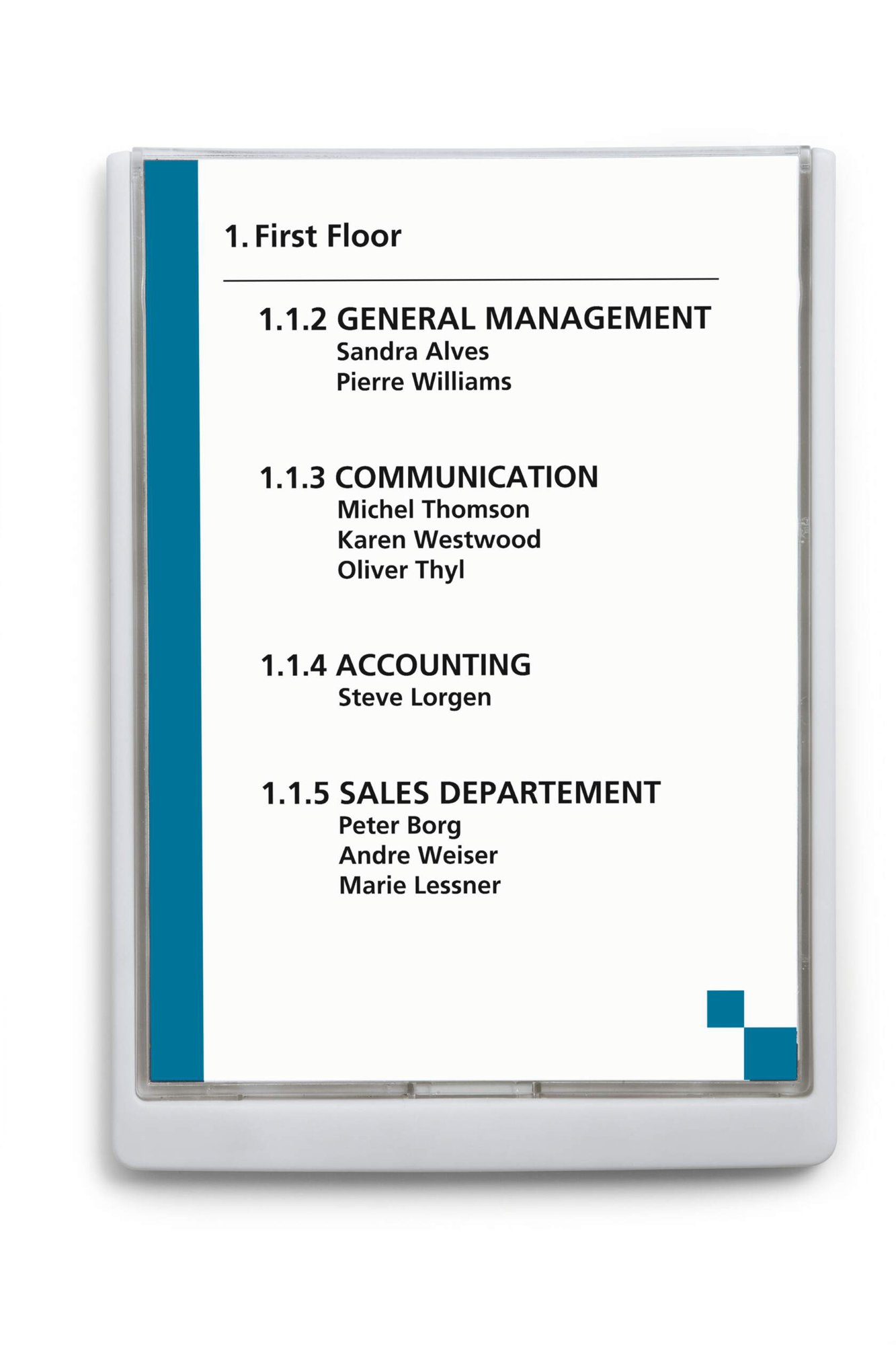 CLICK SIGN is a high quality ABS door sign range, with a pull-out viewing window to easily replace inserts. They feature an anti-scratch window and a variety of mounting options for different surfaces. They are a durable and versatile signage solution.<br><br>Compatible with printable inserts (product # 485602)<br><br>Includes:<br>1X Doorplate CLICK SIGN<br>1X 160gsm blank insert cards<br>2X Nylon wall plugs<br>2X Galvanised screws<br>2X Adhesive buttons<br>1X Instructions<br><br>Insert dimensions: A4 Portrait (210 x 297 mm)<br>Made in Germany