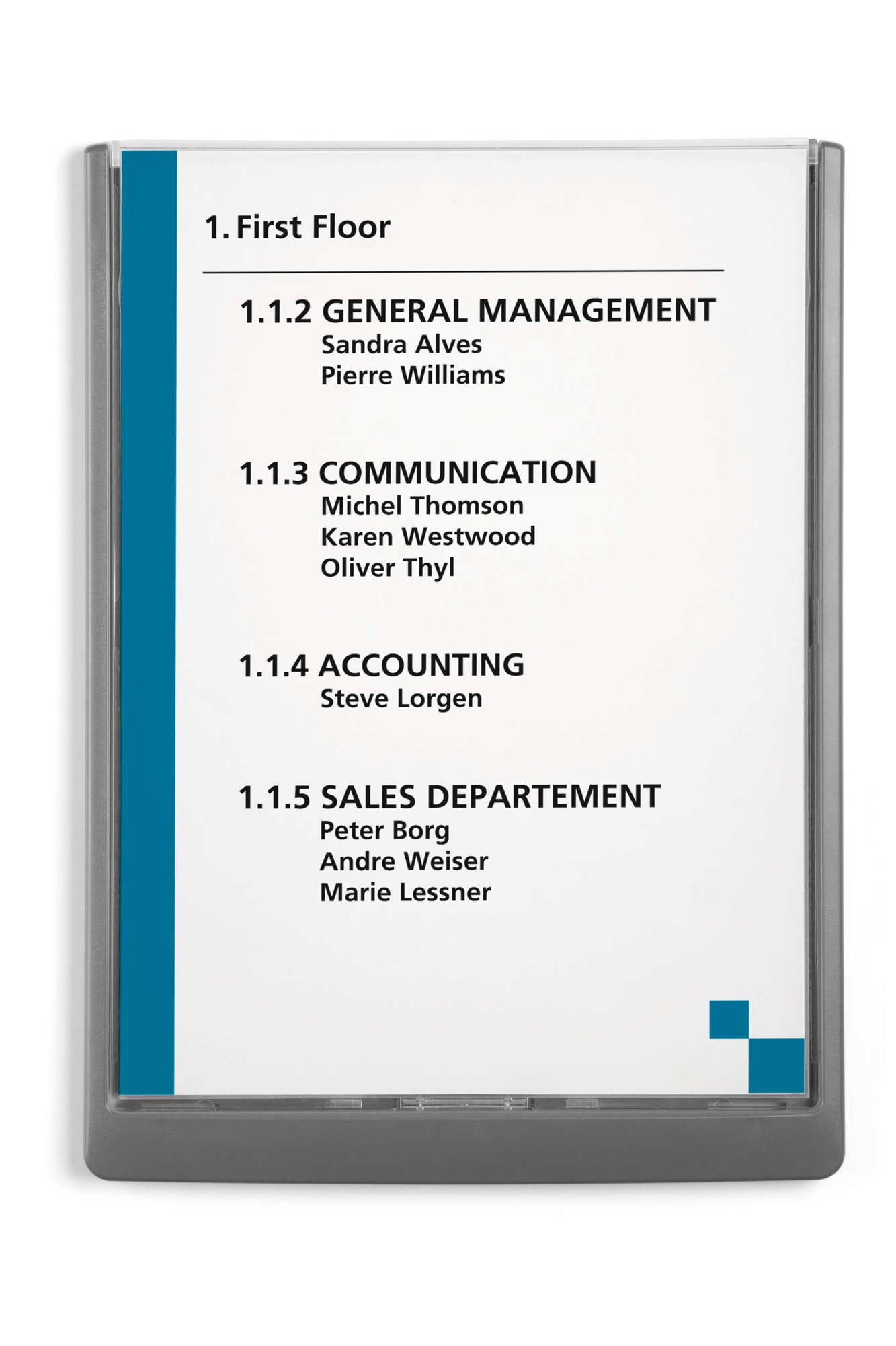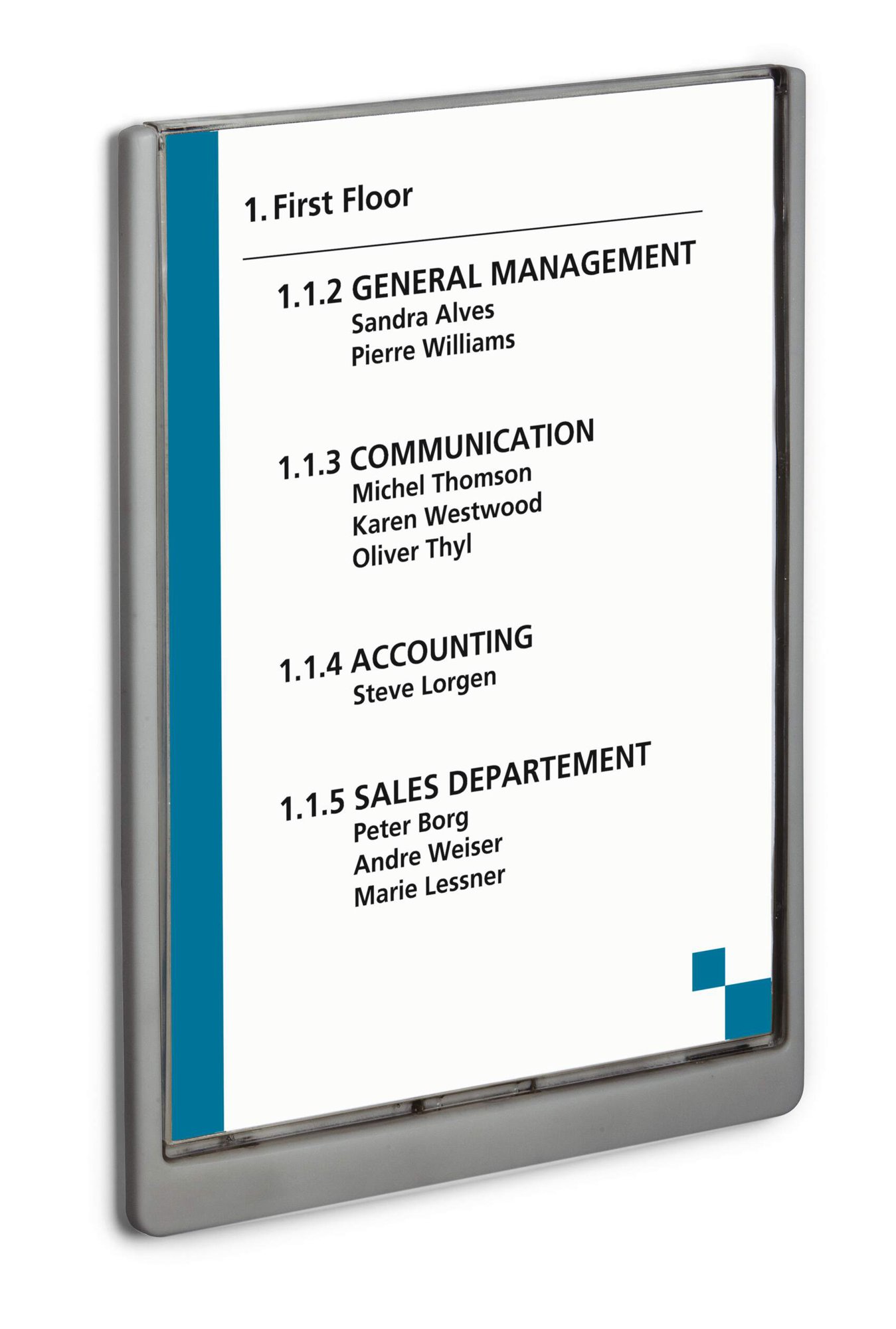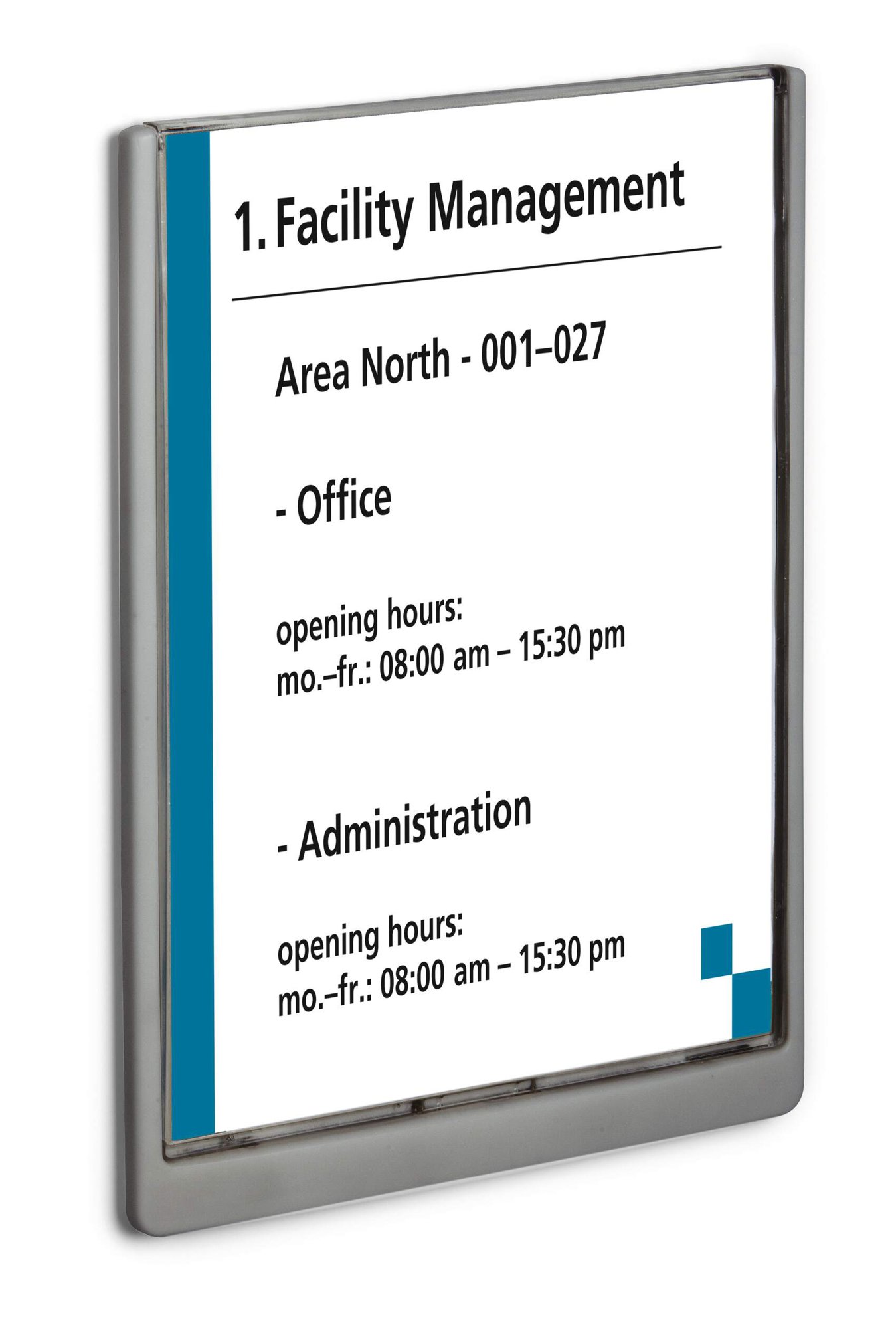 CLICK SIGN is a high quality ABS door sign range, with a pull-out viewing window to easily replace inserts. They feature an anti-scratch window and a variety of mounting options for different surfaces. They are a durable and versatile signage solution.<br><br>Compatible with printable inserts (product # 485602)<br><br>Includes:<br>1X Doorplate CLICK SIGN<br>1X 160gsm blank insert cards<br>2X Nylon wall plugs<br>2X Galvanised screws<br>2X Adhesive buttons<br>1X Instructions<br><br>Insert dimensions: A4 Portrait (210 x 297 mm)<br>Made in Germany