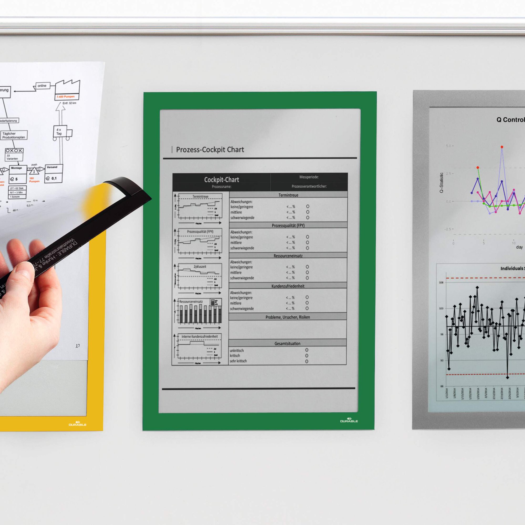 DURAFRAME MAGNETIC €“ the ultimate solution for displaying documents and notices on metal surfaces with style and ease. Effortlessly swap inserts by simply lifting the magnetic frame, making updates quick and seamless. Designed in Germany and crafted in Europe, DURAFRAME is the UK's top choice for a reason.<br><br>Perfect for showcasing essential information on whiteboards such as notices, timetables, health and safety guidelines and maintenance checks in either portrait or landscape format.<br><br>This versatile solution is popular in Education, Healthcare, Offices, Warehouses and Production Facilities alike.<br><br>Why choose DURAFRAME MAGNETIC, the trusted original?<br>Professional, eye-catching display: Boldly coloured frames with discreet magnetic strips for a clean, sleek look.<br>Clear visibility: The frame's window ensures the entire document is easily readable.<br>Built to last: Made from premium, durable materials that protect your documents from wear and tear.<br>Maximum hold: Wider magnetic strips on all sides keep documents securely in place.<br>Enhanced protection: Guard against damage from dust, liquid, and daily use.<br>Durability meets performance: Anti-glare, scratch-resistant coating ensures documents remain easy to read and protected over time.<br><br>DURAFRAME MAGNETIC €“ your go-to for professional, secure, and long-lasting document display.