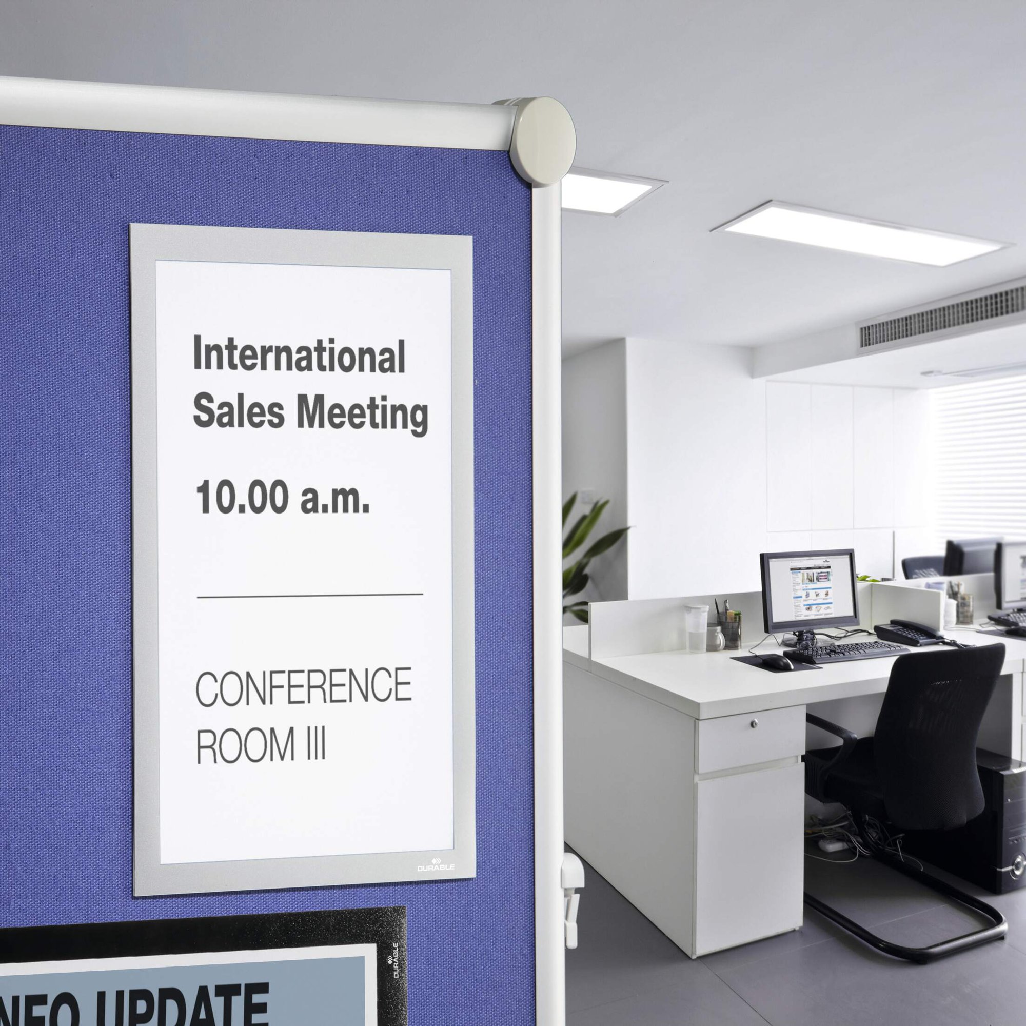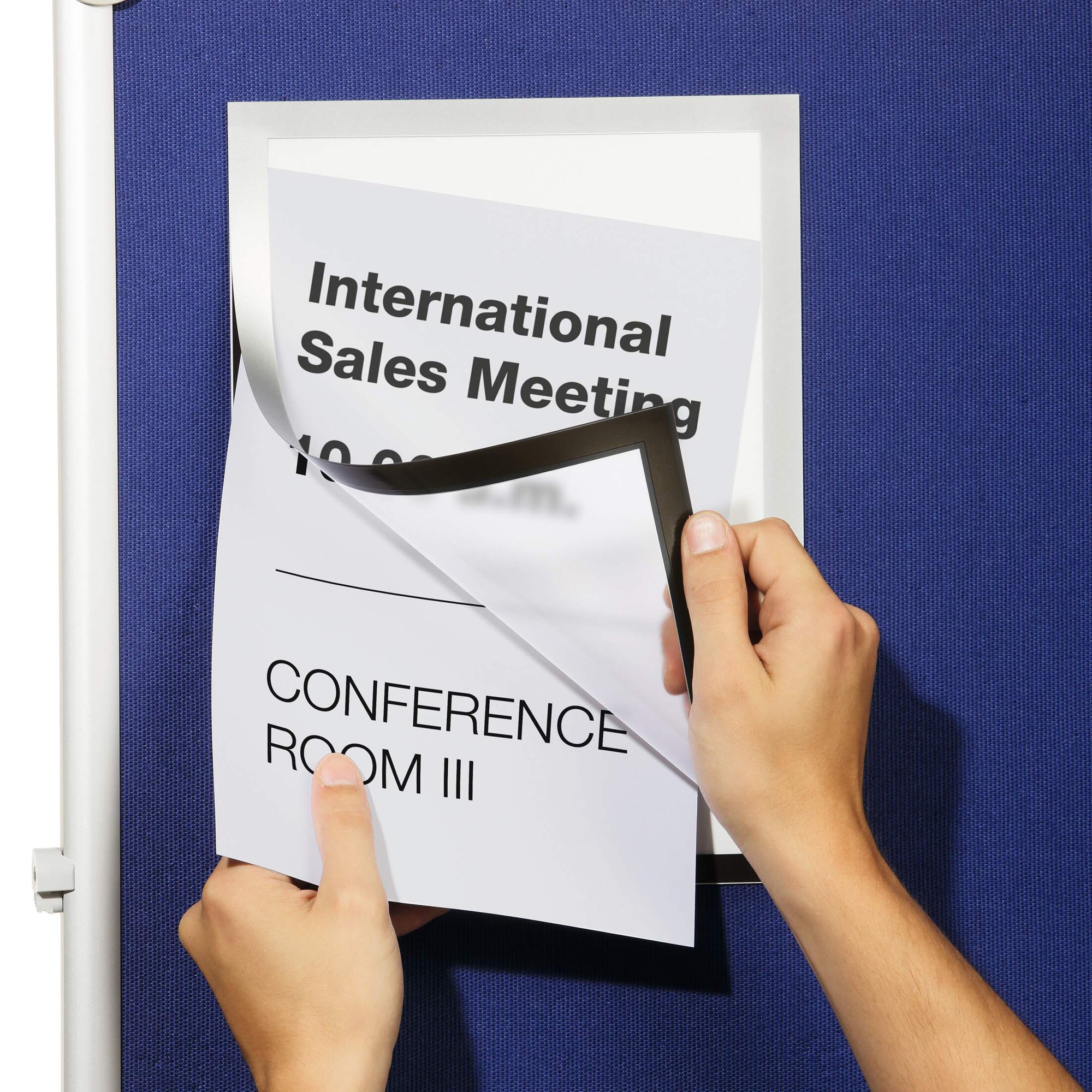The original fold-back frame. DURAFRAME GRIP is ideal for displaying documents on textile surfaces. The inserts can be quickly exchanged thanks to the unique magnetic fold-back design.<br><br>The hook and loop attachment on the reverse of the frame makes it perfect for displaying documents on fabric surfaces such as textile panels, partition walls and acoustic panels.<br><br>The frames can be removed without causing any damage or leaving any residue.