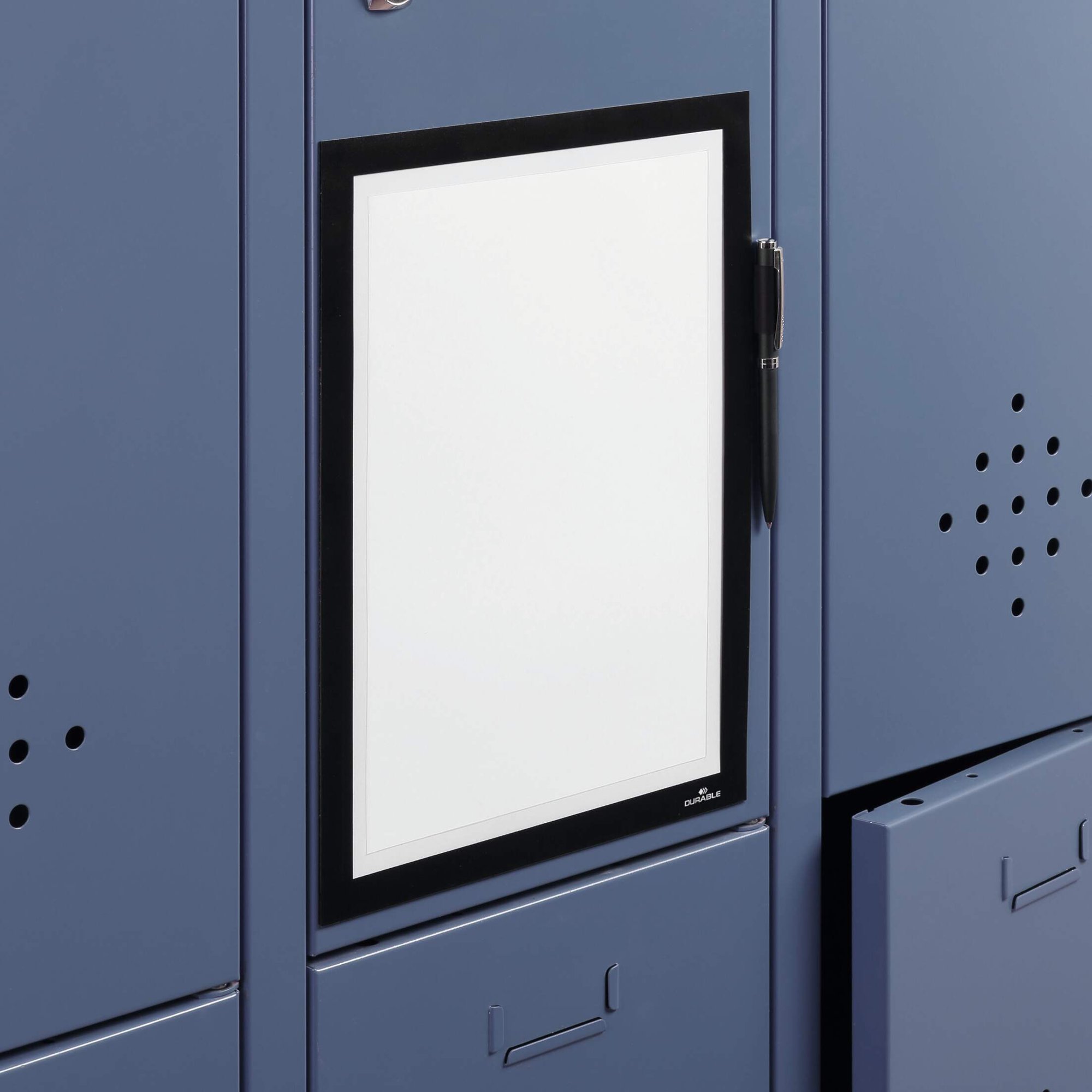 The original fold-back frame. DURAFRAME NOTE with pen holder is the ideal solution for writing directly on documents and notices. The inserts can be quickly exchanged thanks to the unique magnetic fold-back design.<br><br>The inserts can be directly written onto making it perfect for cleaning rotas, event sign-up sheets, or for safety and maintenance checklists. <br><br>The frames can be removed without causing any damage or leaving any residue.