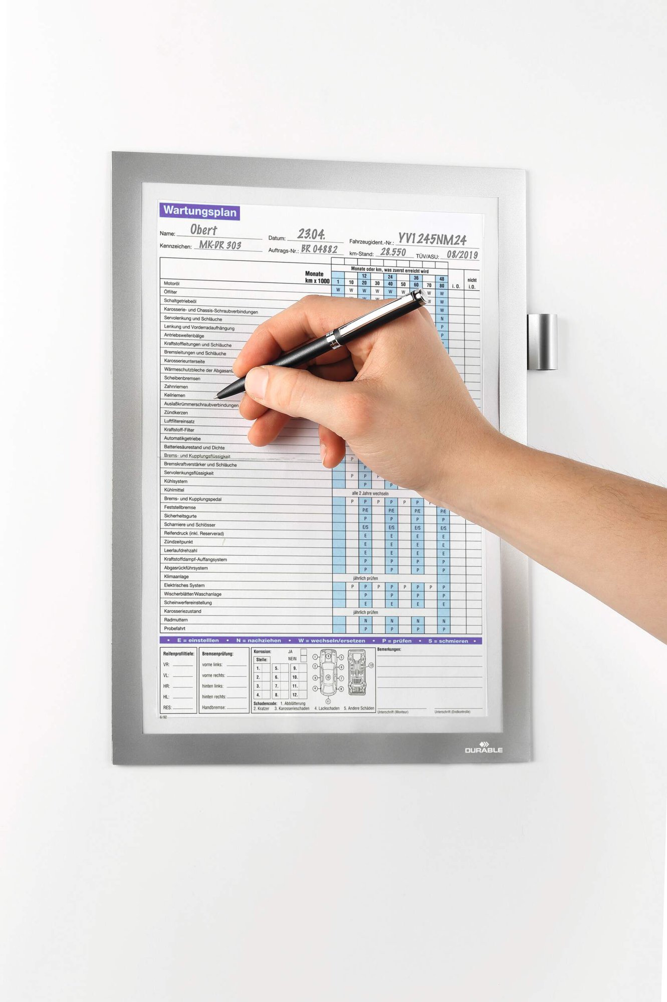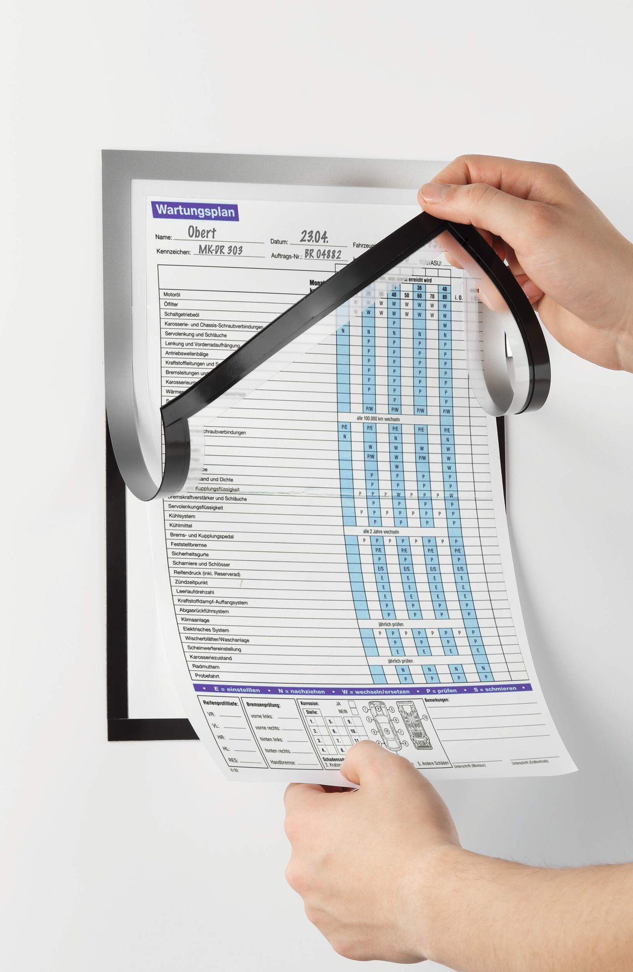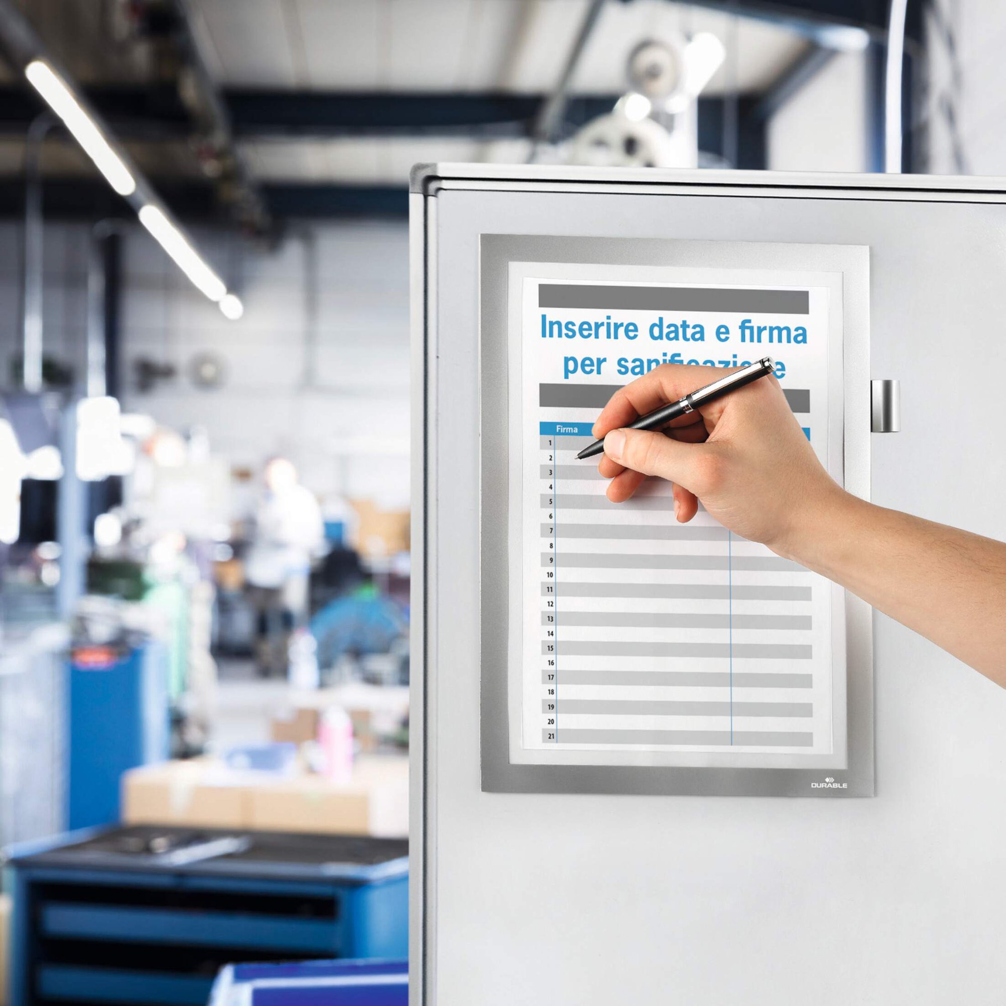 The original fold-back frame. DURAFRAME NOTE with pen holder is the ideal solution for writing directly on documents and notices. The inserts can be quickly exchanged thanks to the unique magnetic fold-back design.<br><br>The inserts can be directly written onto making it perfect for cleaning rotas, event sign-up sheets, or for safety and maintenance checklists. <br><br>The frames can be removed without causing any damage or leaving any residue.