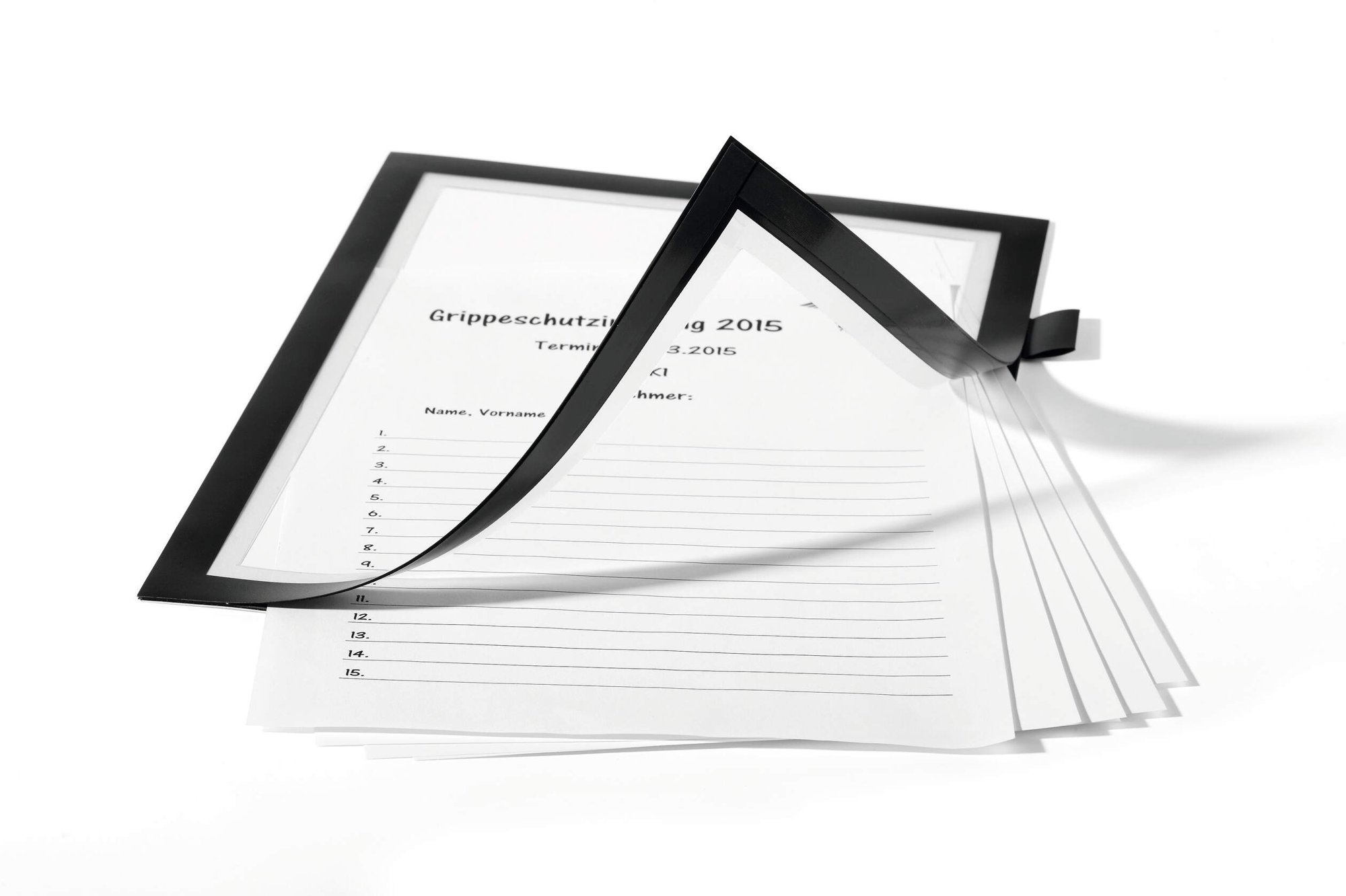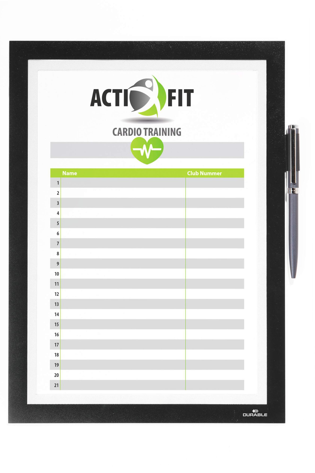 The original fold-back frame. DURAFRAME NOTE with pen holder is the ideal solution for writing directly on documents and notices. The inserts can be quickly exchanged thanks to the unique magnetic fold-back design.<br><br>The inserts can be directly written onto making it perfect for cleaning rotas, event sign-up sheets, or for safety and maintenance checklists. <br><br>The frames can be removed without causing any damage or leaving any residue.