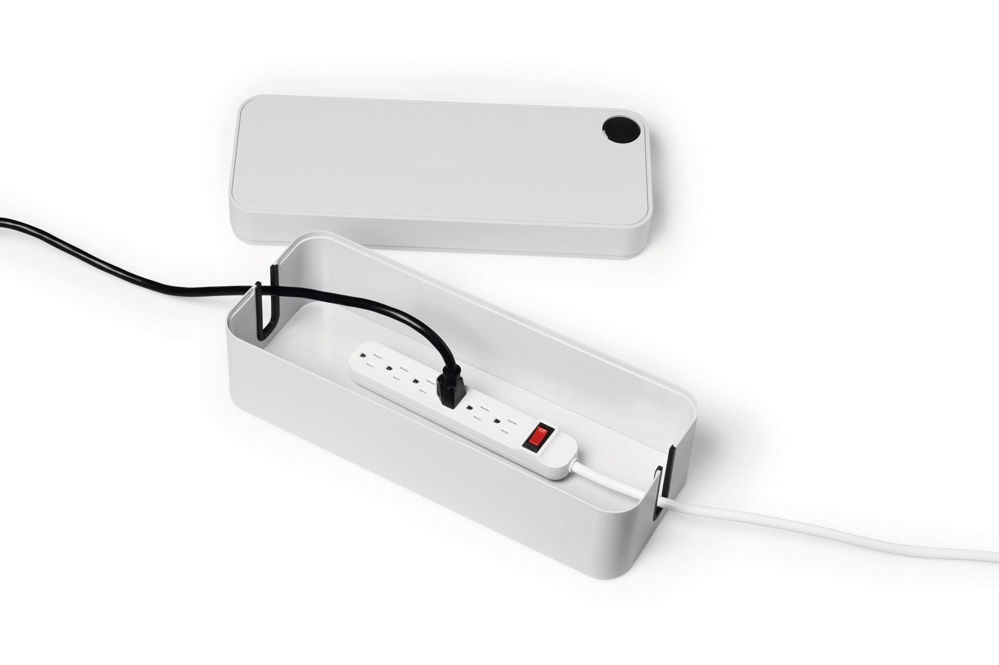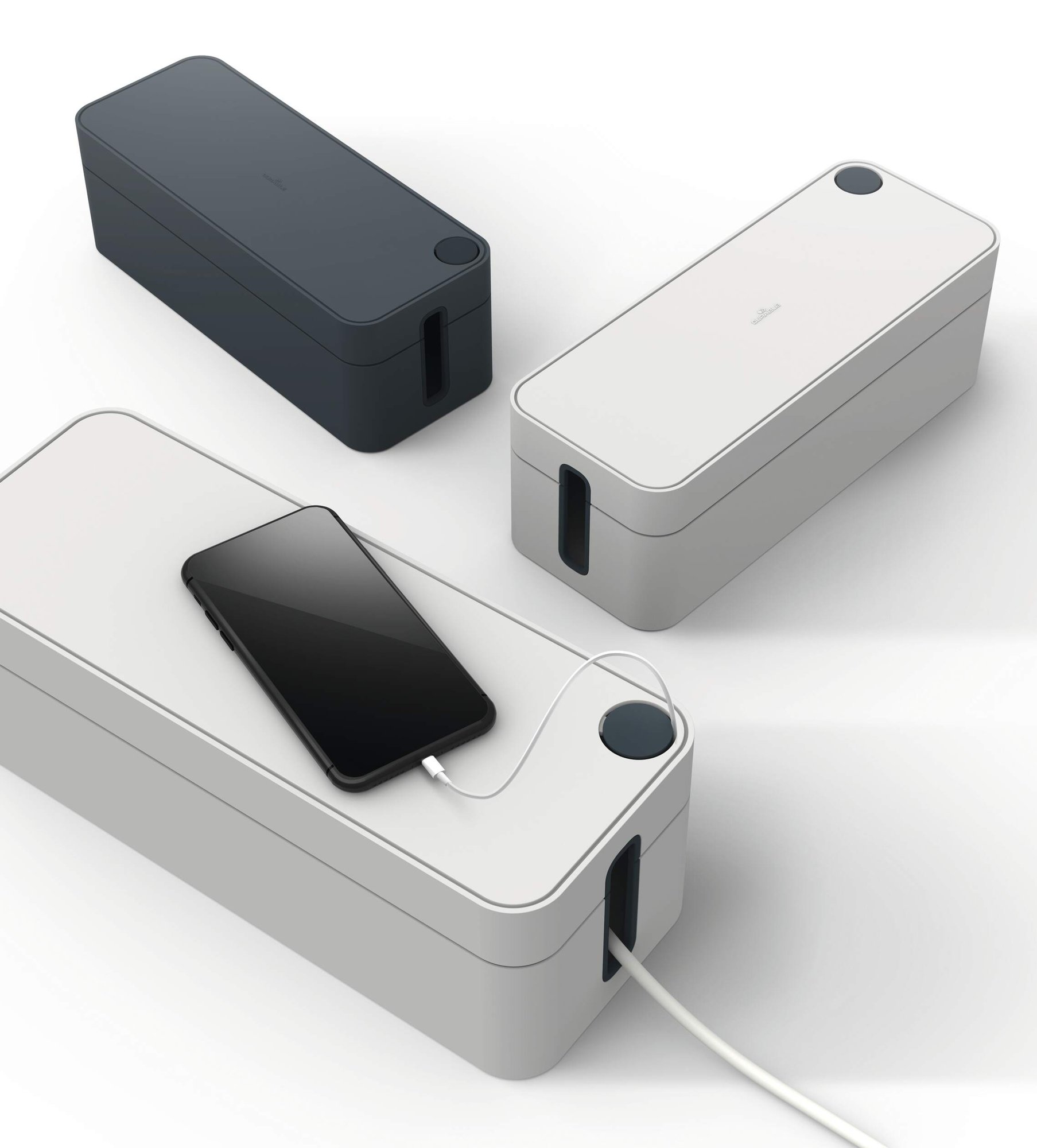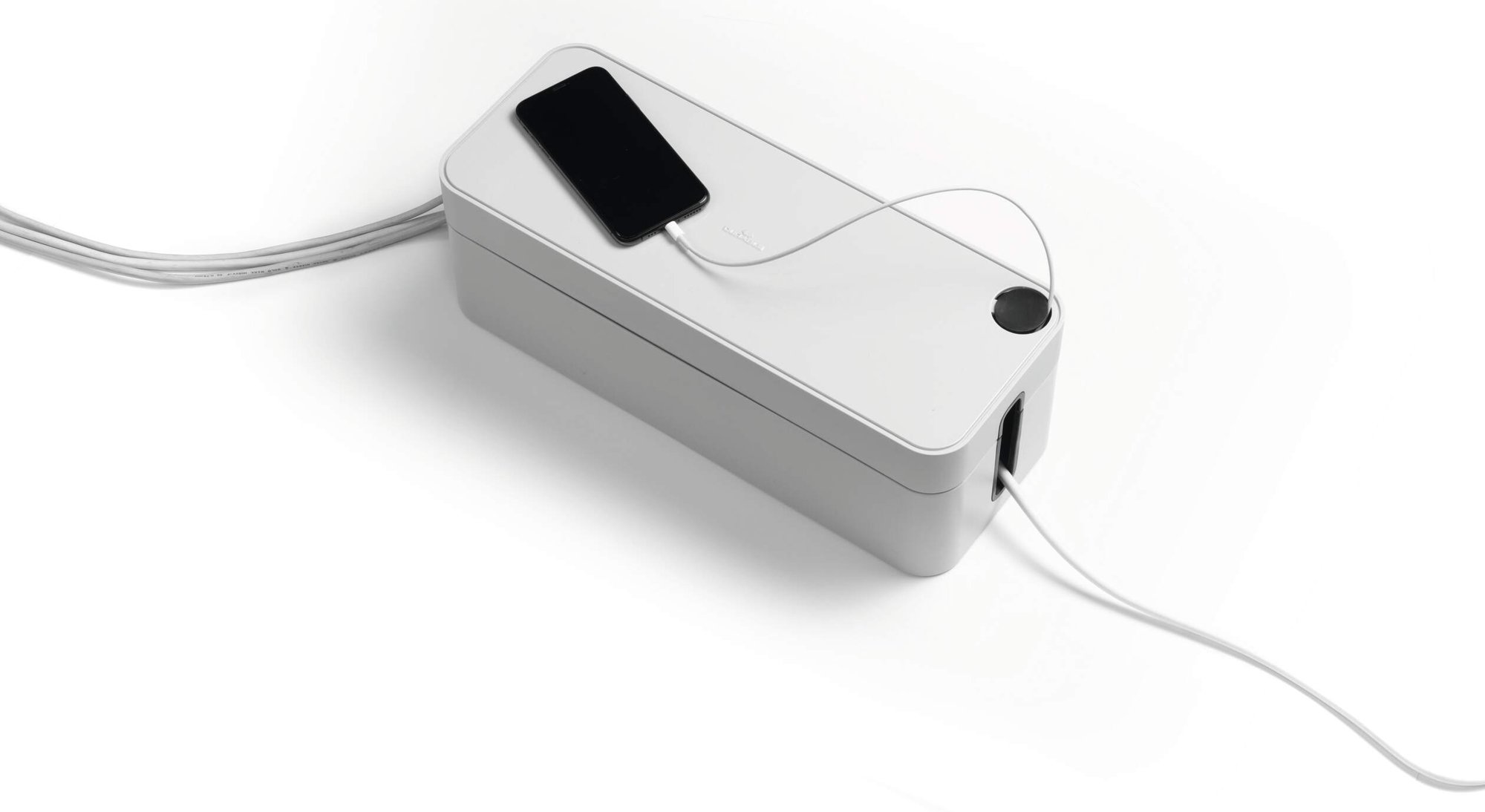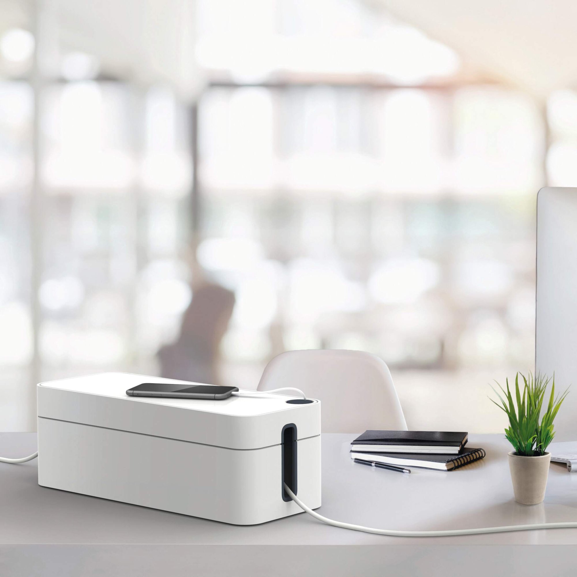 Tame cable chaos and effortlessly declutter your space with CAVOLINE our award winning cable management tool. This sleek Compatibleact box conceals power strips and messy wires, for a safe and tidy setup. They are ventilated and built with flame retardant plastics ensuring an extra layer of safety and protection against electrical hazards.<br><br>The box features 2 cable outlets, they are opposed for air circulation and rubberised to protect your leads. The lid includes a covered slot perfect for USB cables making it quick and easy to charge mobile devices. Rubberised pads on the base add stability and protect your floor and desk from scratches.<br><br>Create a safe and tidy working environment<br><br>Awards:<br><br>If Design Award 2020<br>Red Dot Design Award 2020<br>ICONIC Innovative Interior Winner 2021<br><br>Specifications:<br><br>Dimensions: 156 x 139 x 406 mm (L x H x W)<br>Fits: 5 Plug extension leads<br>Quantity: 1<br><br>Made in Germany and built to last