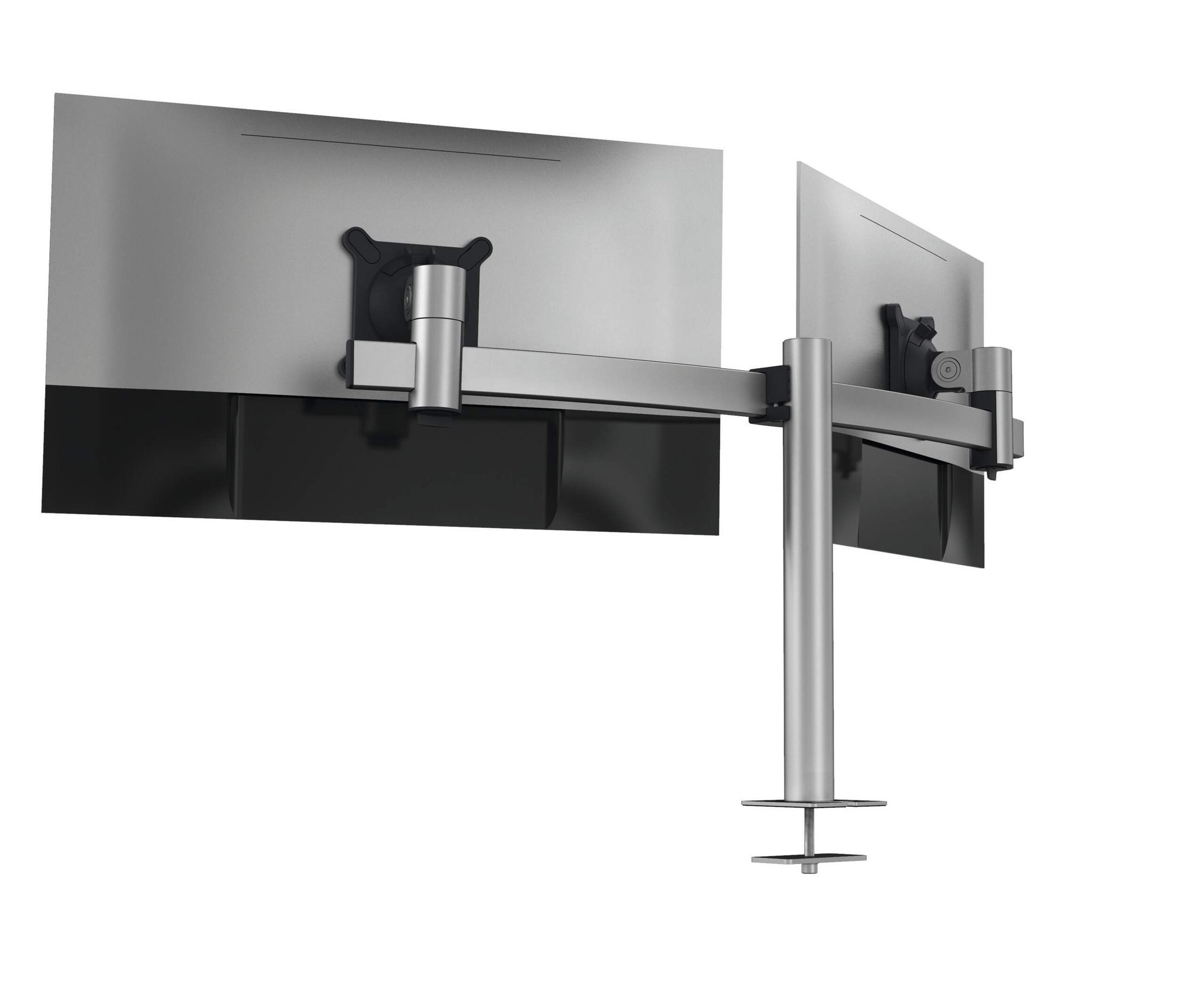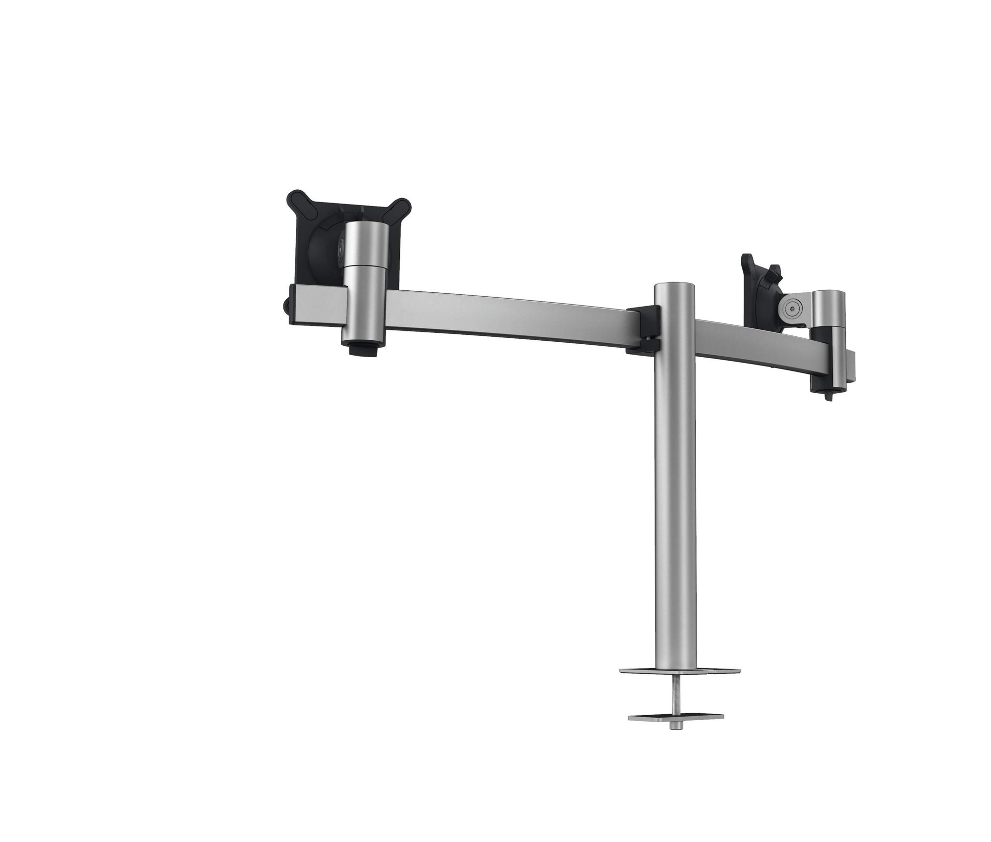 The adjustable monitor arm for 2 screens from DURABLE offers a Compatibleletely flexible solution for the ergonomic workplace. <br><br>The innovative monitor arms from DURABLE are the solution for efficient and ergonomic mounting of monitors to your desk. With a design that has been thought through down to the finest detail, the new monitor arms can be easily and quickly installed by just one person and can be adjusted to suit the individual user. <br><br>The monitor arm offer a flexible solution for every situation. Can support screens from 21-27 inches.