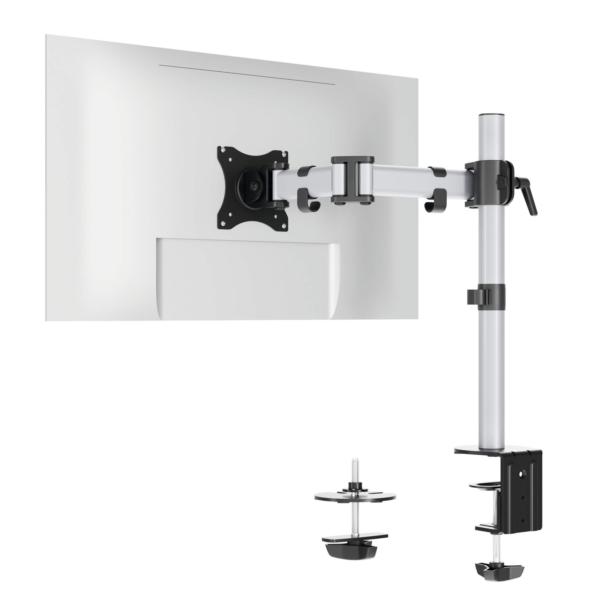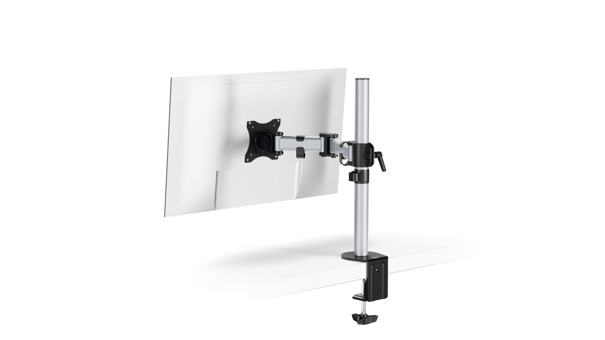 Built and designed in Germany Durable€™s new innovative monitor arms are the solution for efficient and ergonomic mounting. They feature an exceptional range of movement, smart cable management and superior build quality.<br><br>Two mounting options are included out of the box, a traditional table clamp and a through desk (table pin) for mounting flexibility.<br><br>With a design that has been thought through down to the finest detail, our new monitor arms can be easily and quickly installed by just one person with effortless tool free adjustment.<br><br>For screens from: 13 to 27 Inches<br>Max weight: 8 kg<br>Mounting options: Desk clamp and through desk<br>Table thickness: 10 - 88 mm