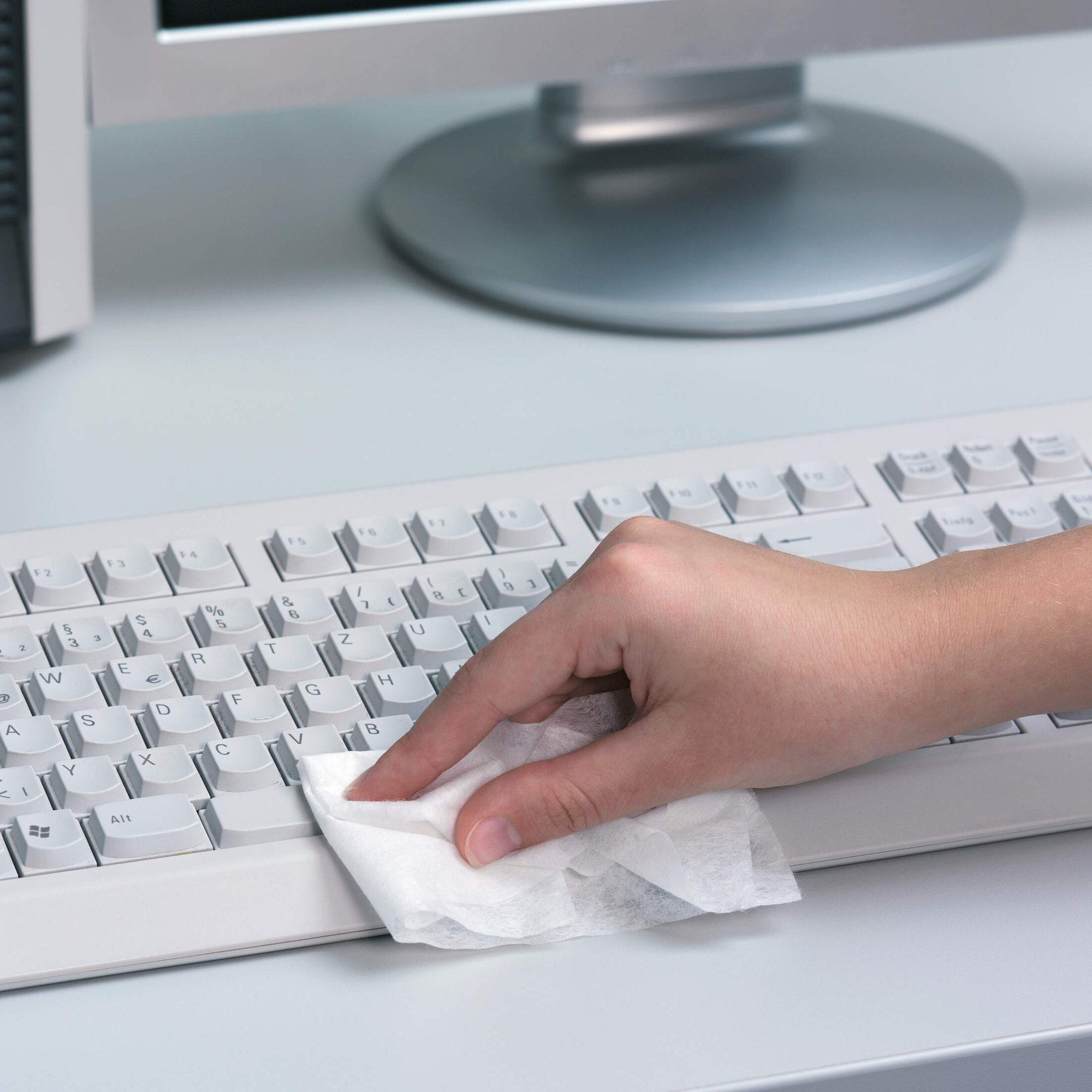 Improve workplace hygiene and keep your electronics clean and protected for longer with our anti-static surface wipes. You can feel good knowing that our desk wipes are 100% recyclable, biodegradable and biocide-free so they won€™t accumulate in landfills or harm marine life.<br><br>Designed in Germany and made in the UK our high-quality pre-saturated wipes come in a sealable reusable container to keep your wipes from drying out.<br><br>Designed in Germany