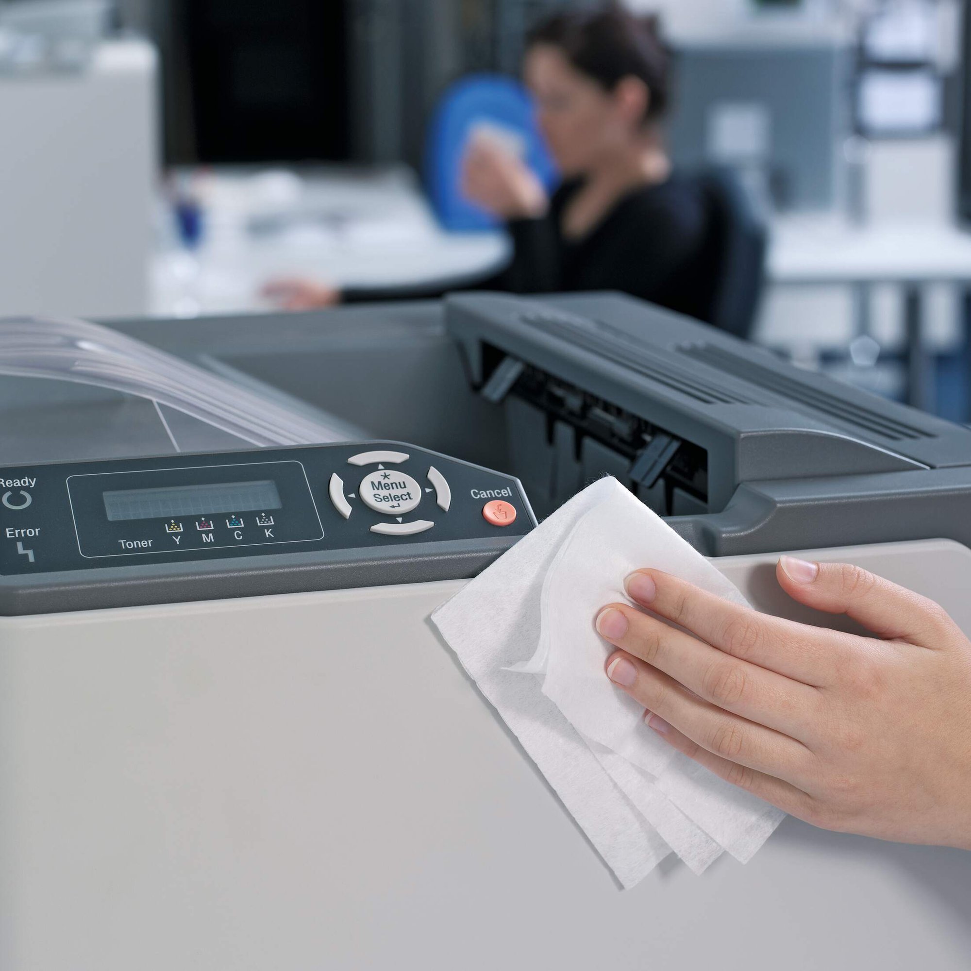 Improve workplace hygiene and keep your electronics clean and protected for longer with our anti-static surface wipes. You can feel good knowing that our desk wipes are 100% recyclable, biodegradable and biocide-free so they won€™t accumulate in landfills or harm marine life.<br><br>The wipes are anti-static treated so won€™t damage electronic devices and help to prevent dust attraction.<br><br>Cloth size: 150 x 120 mm<br><br>Designed and produced in Germany