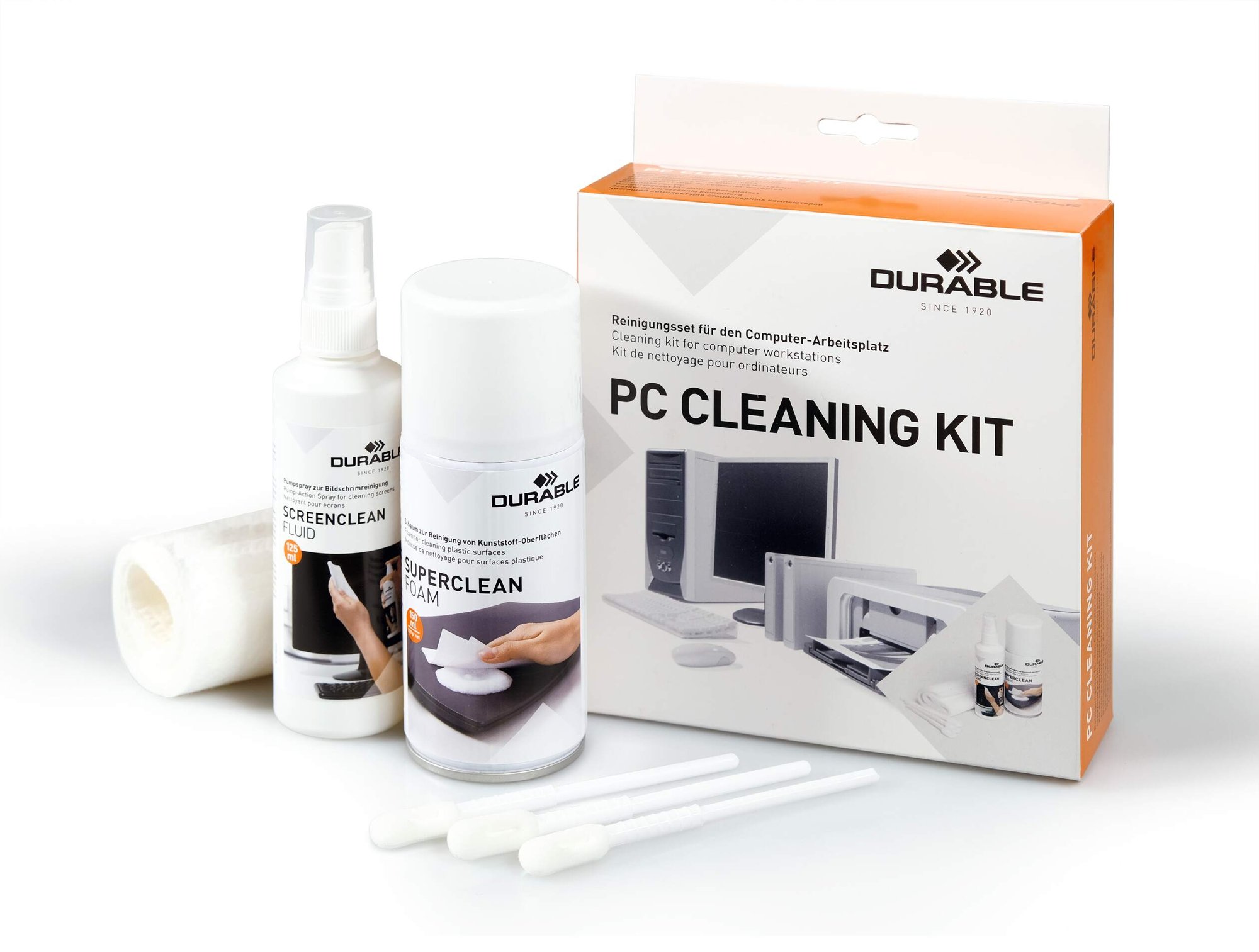 PC cleaning kit which contains everything you need to keep your workstation clean and tidy. The kit includes 1 150ml bottle of surface cleaning foam, 1 125ml bottle of SCREENCLEAN fluid, 10 absorbent wipes and 1 keyboard cleaning tool.<br><br>All of the cleaning fluids provide flawless streak-free cleaning.