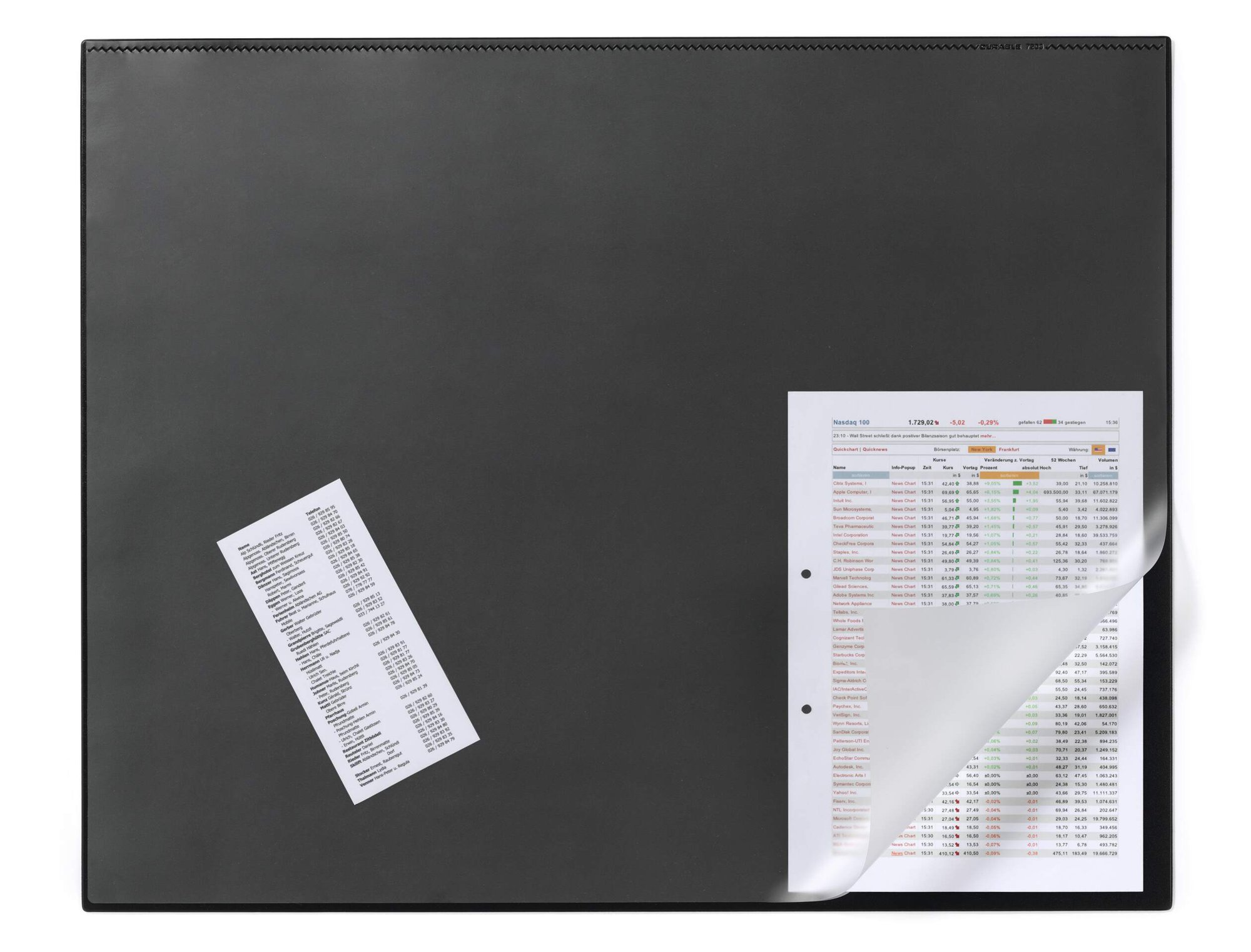 Modern versatile desk mat with a unique transparent cover which can be lifted to securely store small notes and documents whilst keeping them visible and close to hand.<br><br>Keep your desk clutter-free and your important information in sight with our unique and stylish see-through desk mat. Elevate your productivity and stay organised.<br><br>Not only do they offer excellent protection against scuffs, stains, and laptop burns, but it provides a comfortable soft touch writing surface thanks to the premium PVC-P construction.<br><br>Made with 15% recycled materials and built in accordance with ISO 14021, a high standard for eco-friendly products.<br><br>Dimensions: 65 x 52 cm<br>Made in Germany