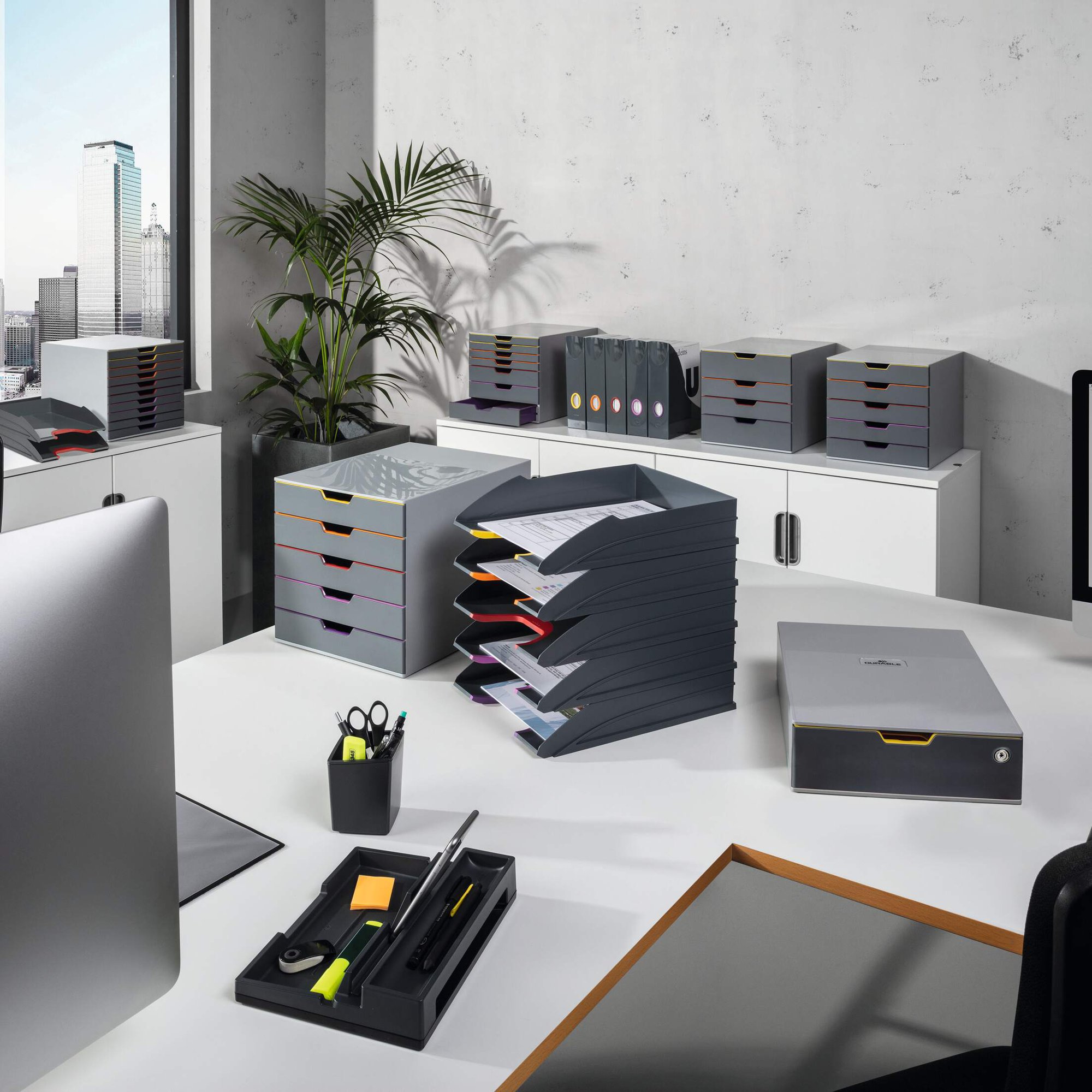 Contemporary VARICOLOR SAFE drawer box made of premium-quality plastics with a yellow accent colour. The box features a GDPR Compatibleliant cylinder lock for the storage of confidential documents and personal belongings.<br><br>The drawer has a silent smooth operating movement with integrated drawer stops. The unit includes a transparent labelling window and easy to exchange printable inserts (with digital templates).<br><br>All VARICOLOR draws are stackable and feature skid proof plastic feet for stability and the protection of your desk.<br><br>Includes:<br><br>1 x VARICOLOR Locking draw box<br>1 x Clear labelling window<br>1 x Printable labelling insert<br>2 x Durable cylinder lock keys<br><br>Size: 242 x 75 x 330 mm (W x H x L)<br>Paper sizes: A4, C4, folio and letter size formats<br>Made in Germany