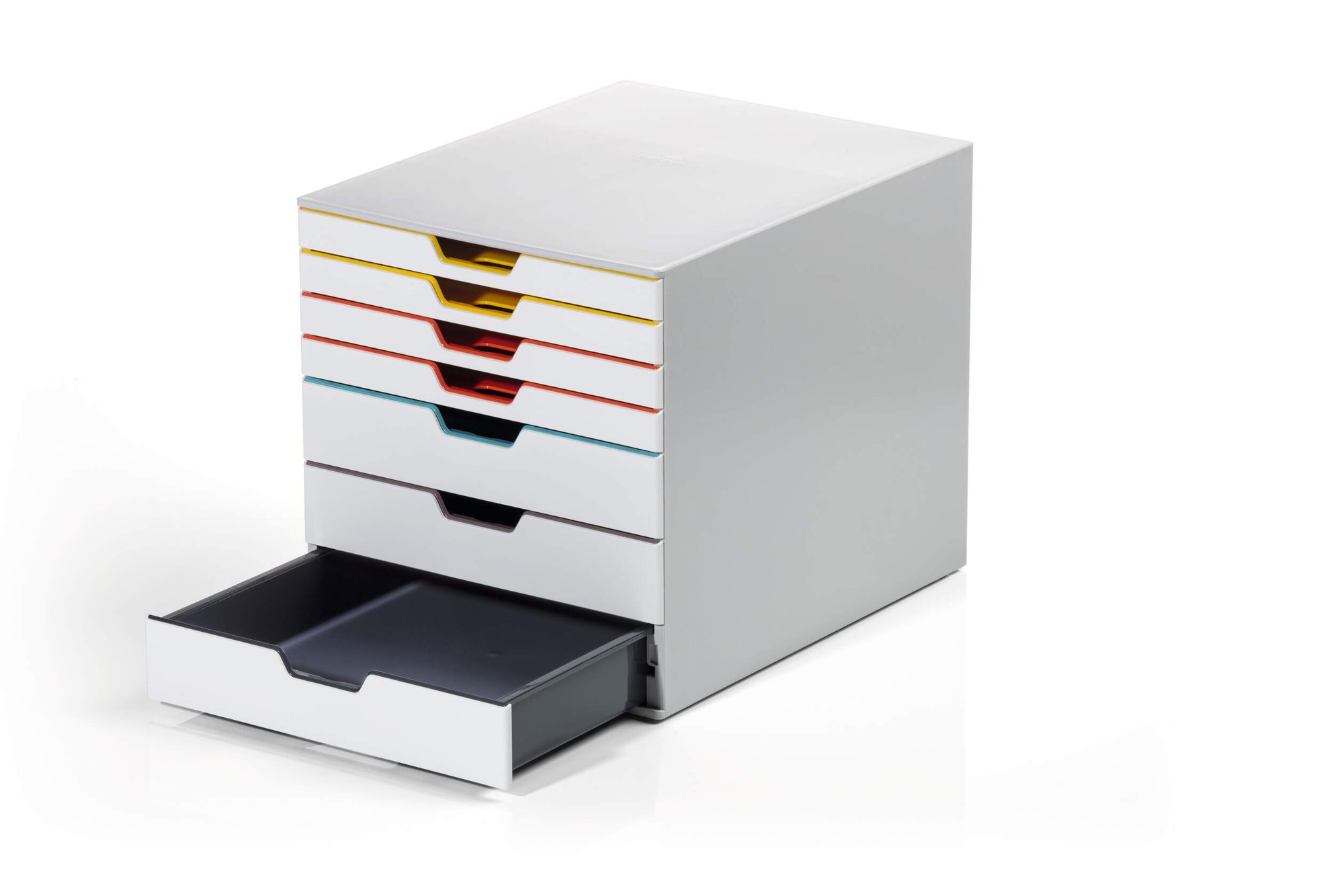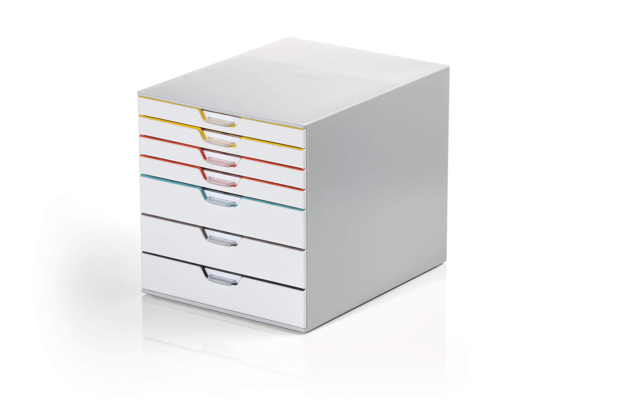 Durable€™s contemporary VARICOLOR MIX drawer box is made of premium-quality plastics with 7 silent smooth-operating drawers. Say goodbye to large filing cabinets and enhance your organisation with colour coloured draws giving you more space for the things you love.<br><br>The unit includes transparent labelling windows and easily exchangeable printable inserts with digital templates for easy organisation.<br><br>All VARICOLOR draws are stackable and feature anti-slip plastic feet for stability and the protection of your desk.<br><br>Includes:<br><br>1 x VARICOLOR draw box<br>7 x Clear labelling windows<br>7 x Printable labelling inserts<br><br>Size: 280 x 292 x 356 mm (W x H x L)<br>Paper sizes: A4, C4, folio and letter size formats<br><br>Made in Germany and built to last