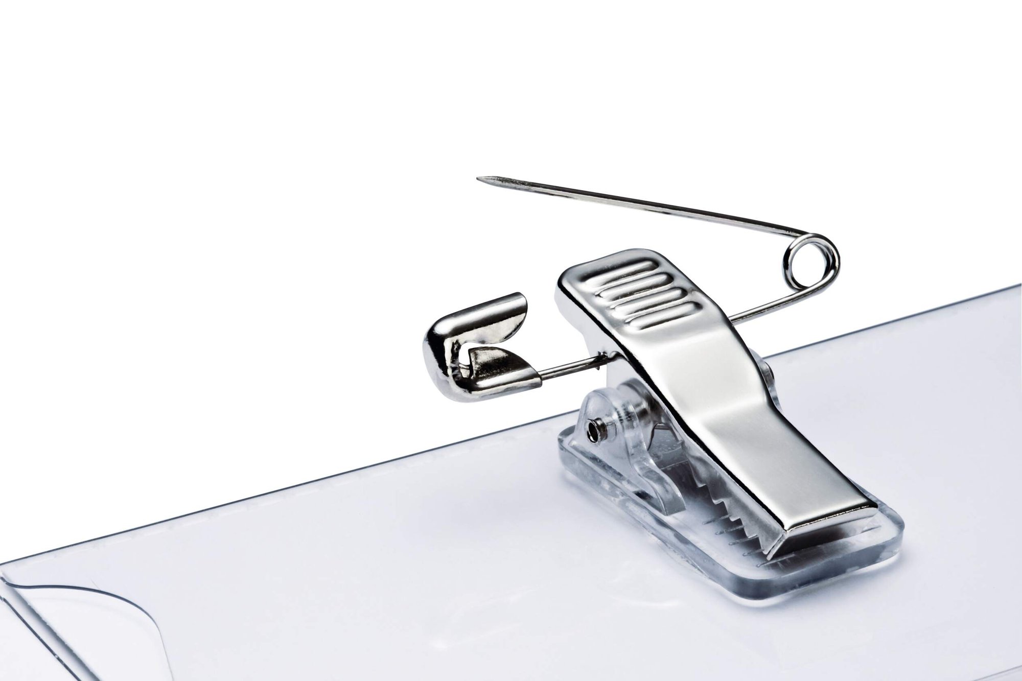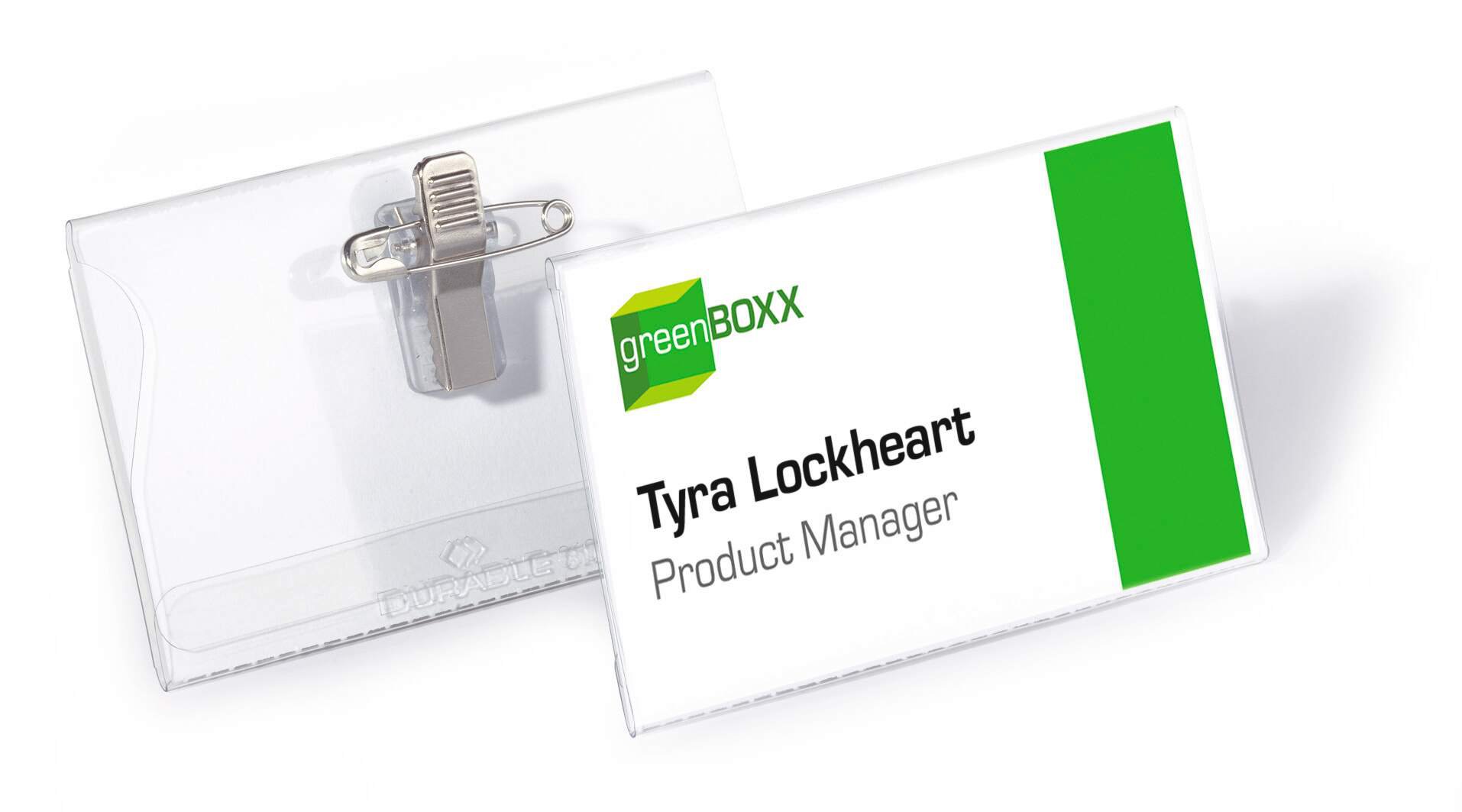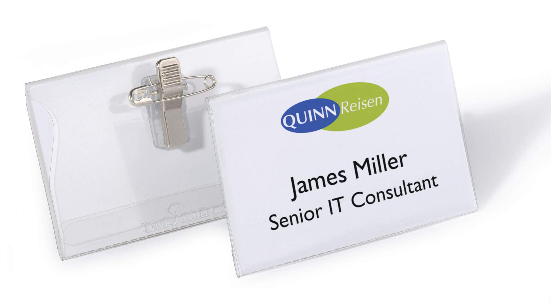 Crystal clear transparent name badges made of premium anti-tear plastics for increased durability. Combi clip has both a pin and clip fastener for quick and easy attachment to various types of clothing.<br><br>Say goodbye to fiddling with labels with our ergonomic thumb slot that makes insertion and removal of inserts a breeze<br><br>Environmentally friendly in accordance with ISO 14021: includes recycled material and is 100% recyclable.<br><br>Includes 50 pre-cut blank insert cards<br><br>Insert size: 54 x 90 mm<br>Pack size: 50<br><br>Made in Germany