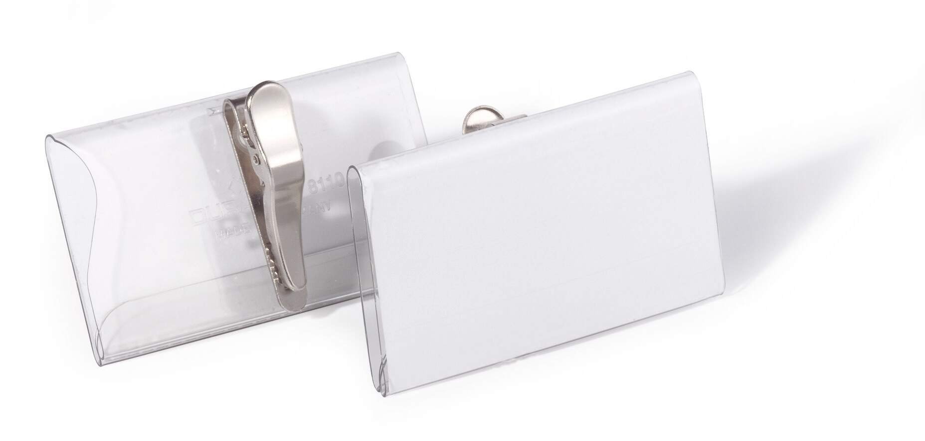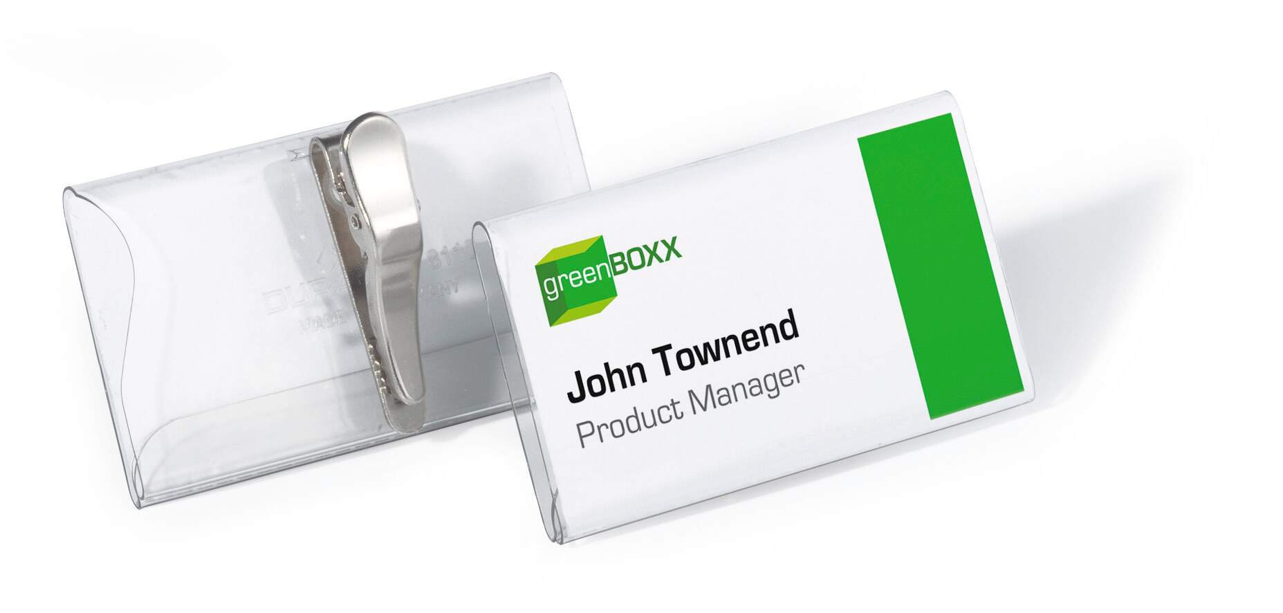 Crystal clear transparent name badges made of premium anti-tear plastics for increased durability. Say goodbye to fiddling with labels with our ergonomic thumb slot that makes insertion and removal of inserts a breeze.<br><br>Environmentally friendly in accordance with ISO 14021: contains recycled material and is 100% recyclable.<br><br>Provided with 25 pre-cut blank insert cards<br>Compatible with printable insert sheets (product # 145302)<br><br>Made in Germany<br>Insert size: 40 x 75 mm<br>Pack size: 25