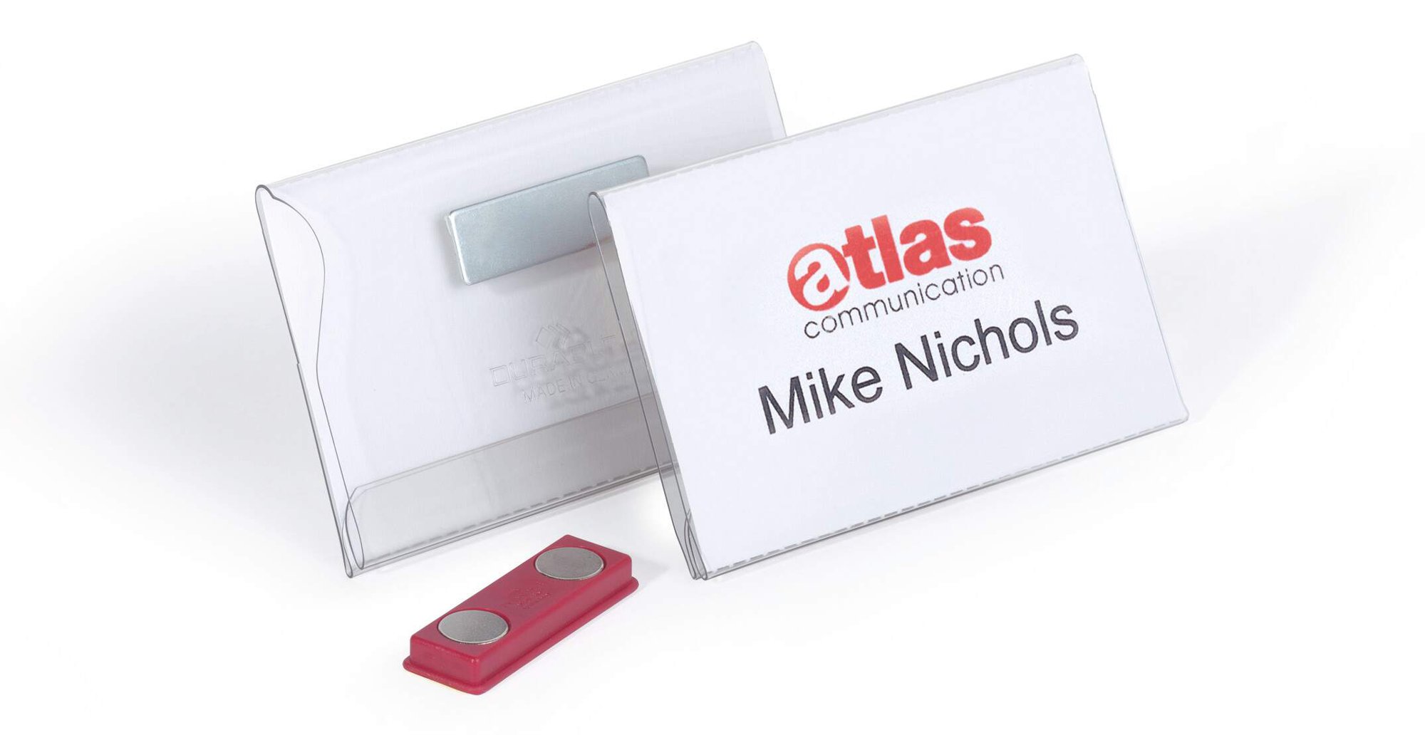 Crystal clear transparent name badges made of premium anti-tear plastics for increased durability. Our simple and secure magnetic fastening will not damage clothes, even delicate fabrics.<br><br>Say goodbye to fiddling with labels with our ergonomic thumb slot that makes insertion and removal of inserts a breeze.<br><br>Environmentally friendly in accordance with ISO 14021: contains recycled material and is 100% recyclable.<br><br>Provided with 25 pre-cut blank insert cards<br><br>Made in Germany<br>Insert size: 54 x 90 mm<br>Pack size: 25