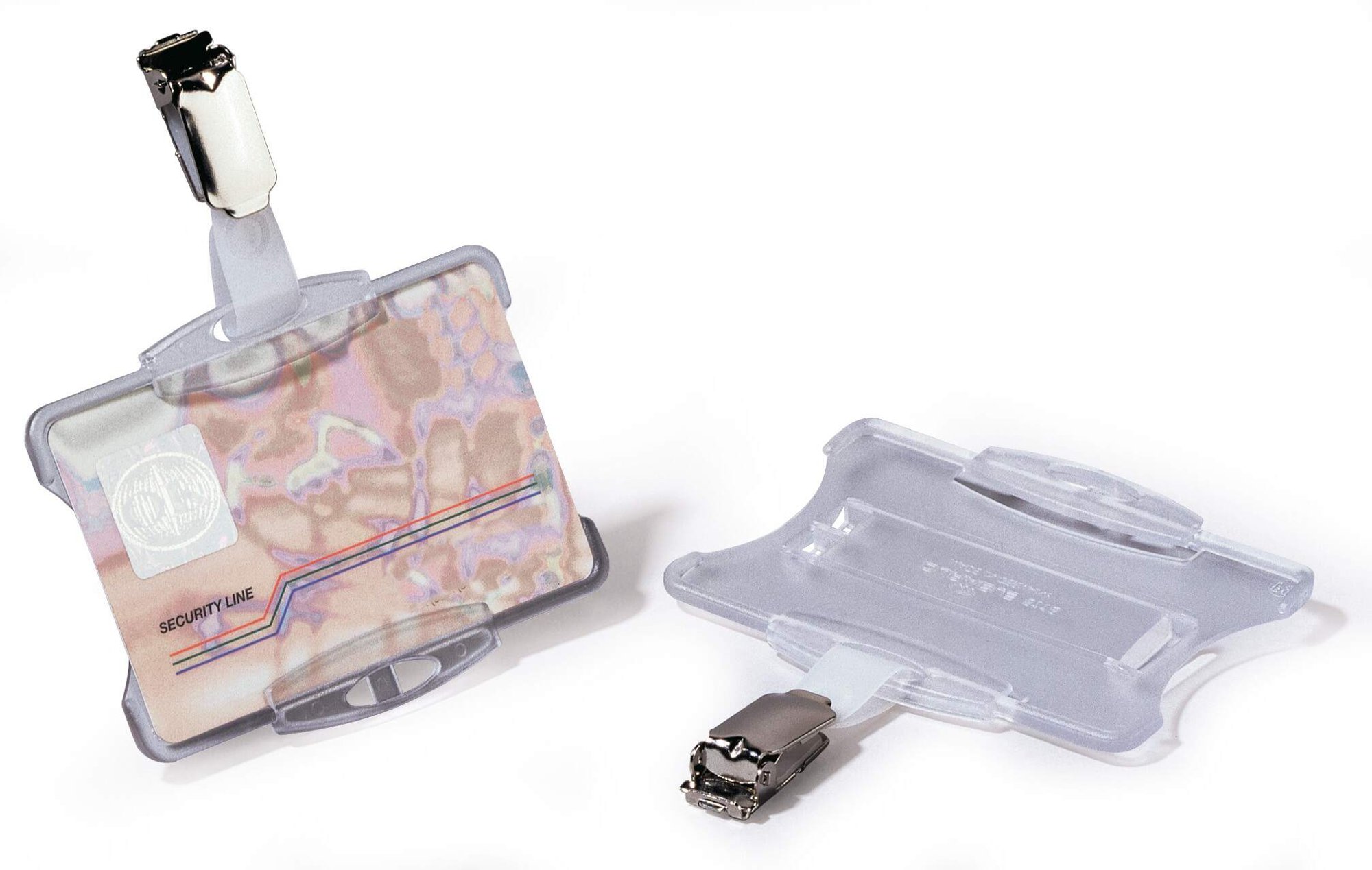 Our German-designed badge holders securely hold IDs without damaging the magnetic strip. The unique end stoppers to keep your card safe while remaining easy to exchange. They feature rotating metal clips with secure portrait and landscape fastenings for lanyards, chains and badge reels.<br><br>Made in Germany and environmentally friendly in accordance with ISO 14021: includes recycled materials and is 100% recyclable.<br><br>Kind to the planet and built to last.<br><br>Orientation: Landscape and Portrait<br>Supports cards up to: 54 x 87mm (standard credit card)<br>Quantity: 25