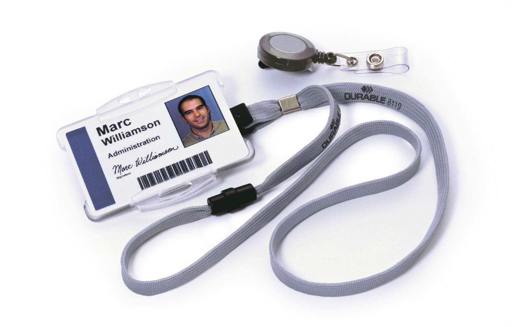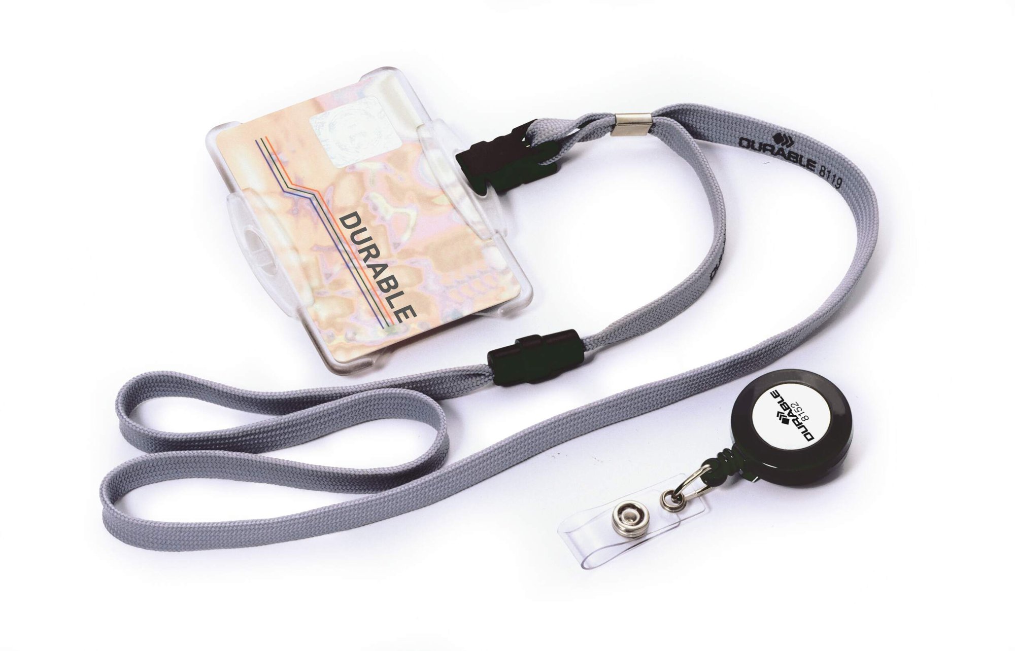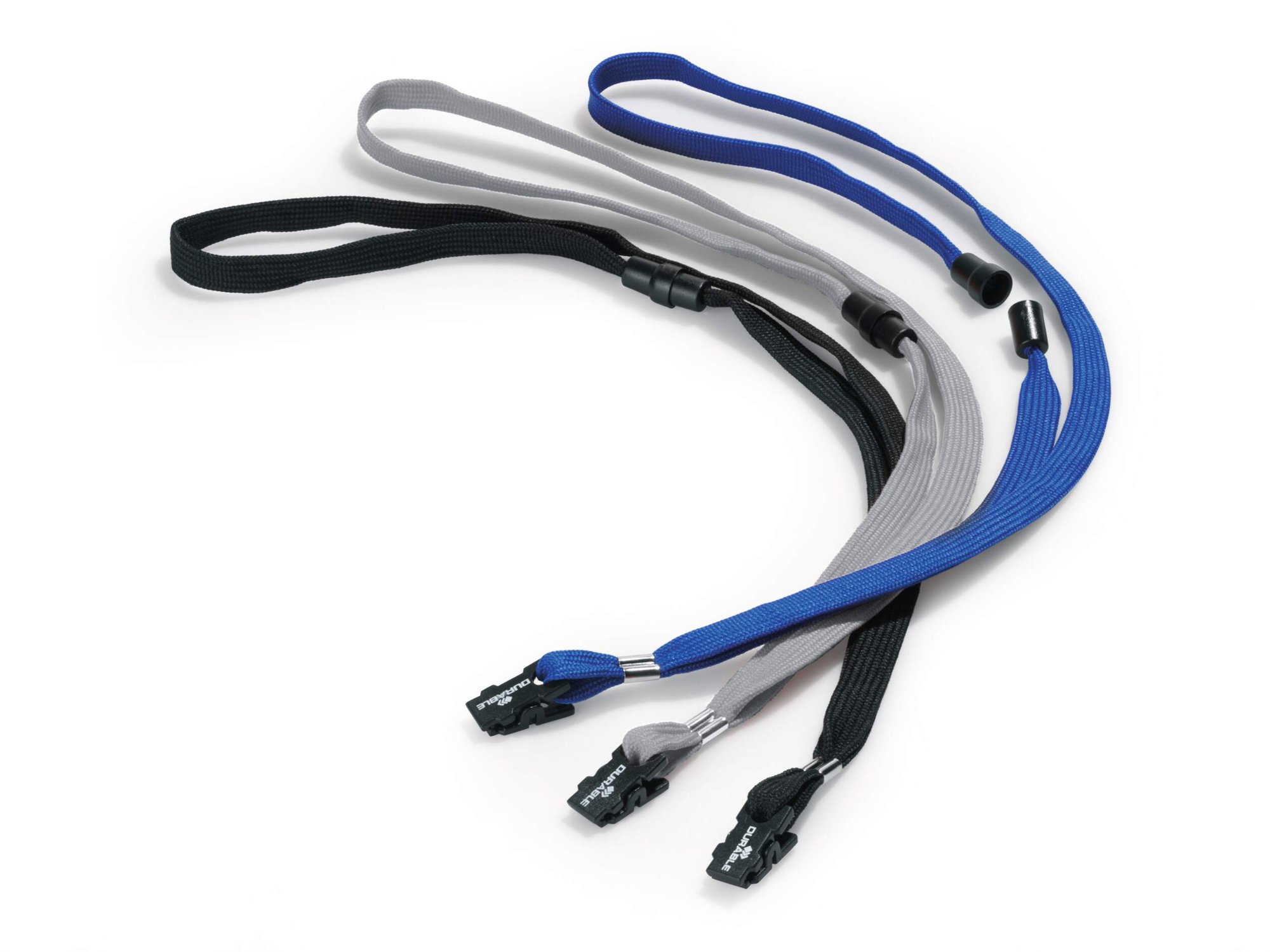 Our German-designed lanyards are made of soft comfortable fabric and include a built-in safety release protecting the user if the strap becomes caught or trapped. The easy clip attachment can be used with all Durable name badges with pins or punched holes.<br><br>Made in Germany and environmentally friendly in accordance with ISO 14021: 100% recyclable.<br><br>Kind to the planet and built to last.<br><br>Width: 1 cm<br>Length: 44 cm<br>Quantity: 10