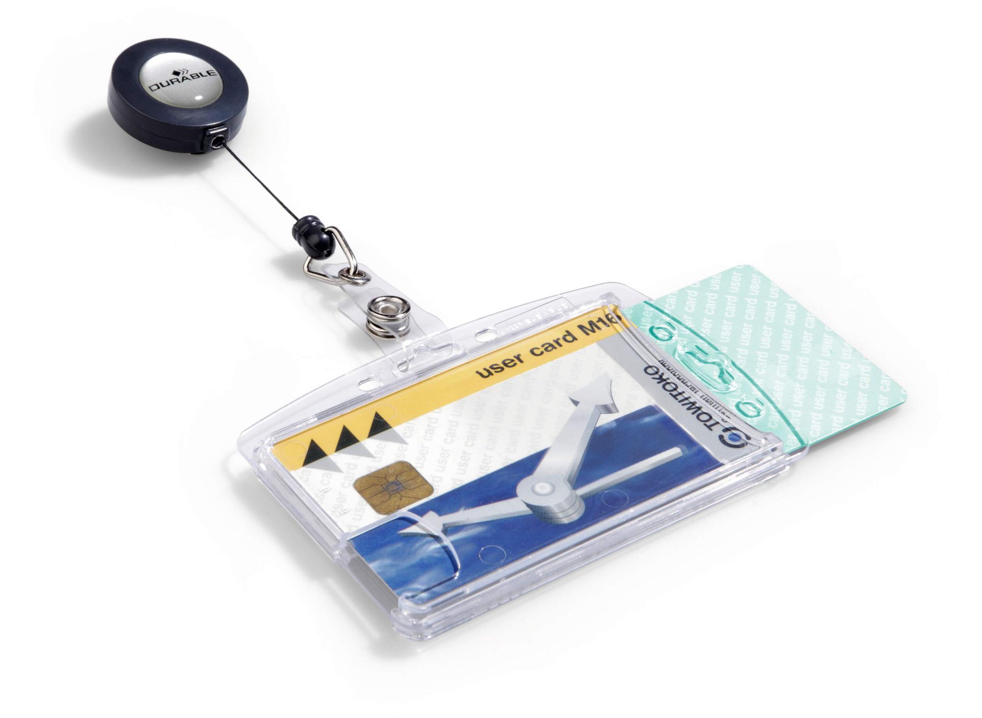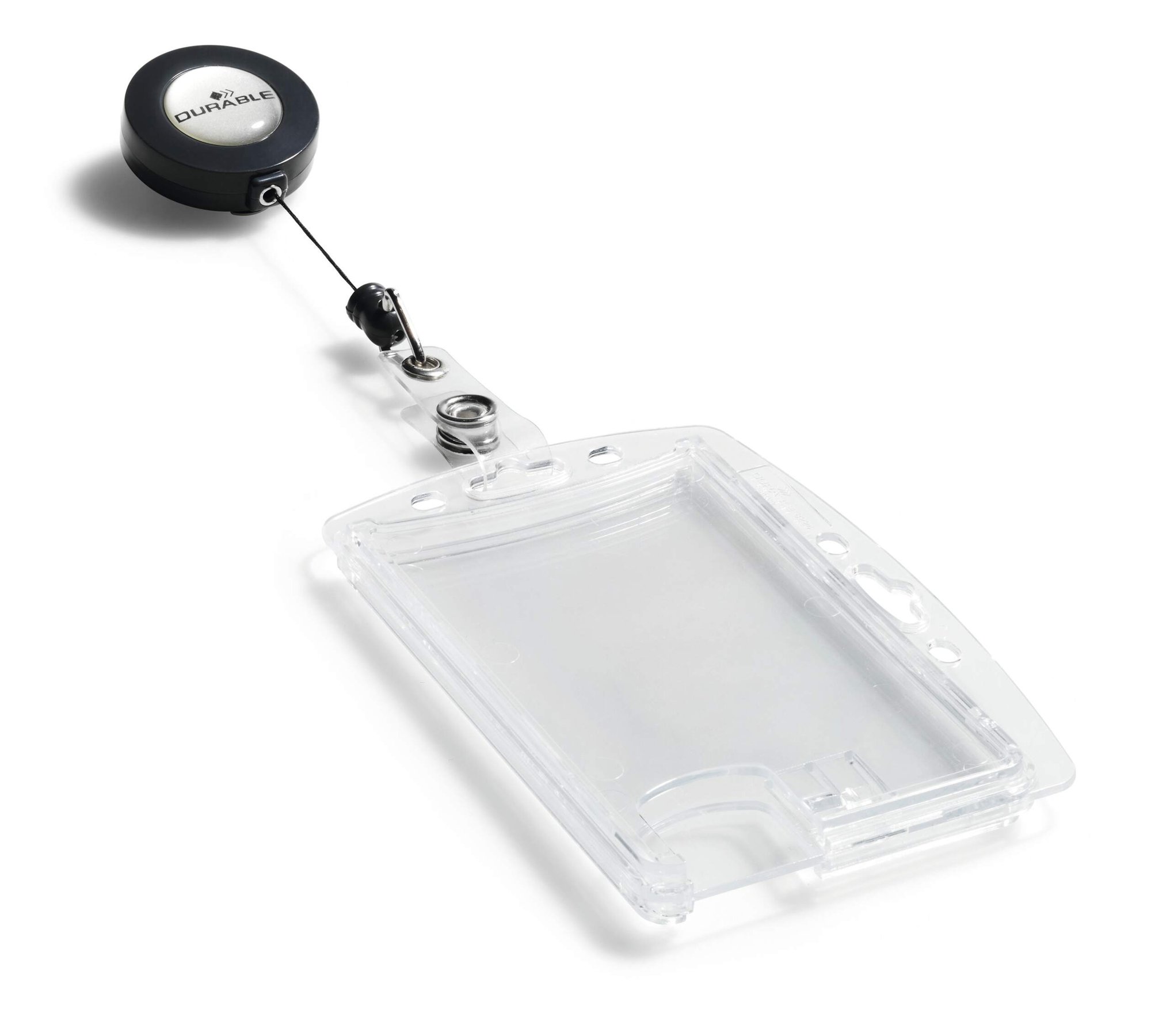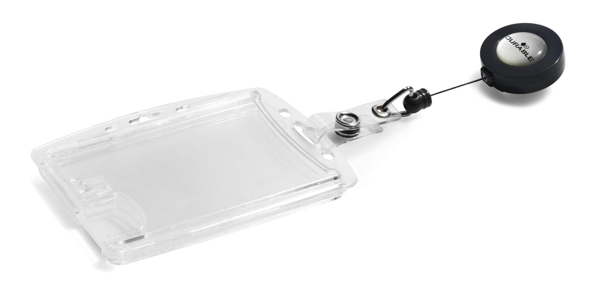 Our German-designed Duo badge holders securely hold 2 IDs without damaging their magnetic strips and feature a thumb slot on the reverse for easy removal of passes. The badge reel can be removed in exchange for lanyards or clips with secure mounting holes for both landscape and portrait orientations.<br><br>Made in Germany and environmentally friendly in accordance with ISO 14021: includes recycled materials and is 100% recyclable.<br><br>Kind to the planet and built to last.<br><br>Orientation: Landscape and Portrait<br>Supports cards up to: 54 x 87mm (standard credit card)<br>Badge reel length: 80 cm<br>Quantity: 10