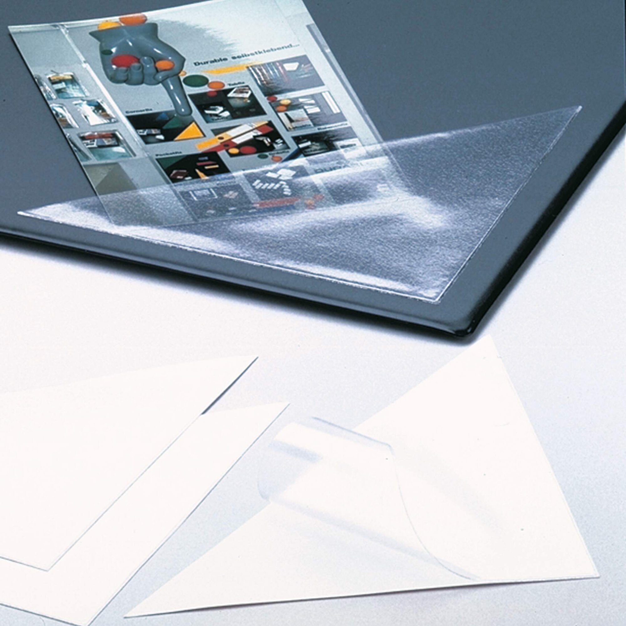 Durable Cornerfix are self-adhesive triangular pockets that are made €‹€‹of a transparent flexible film. They are used to accommodate loose unpunched documents into folders, ring binders, and lever arch files. Anti-tear reinforced for an extended life cycle.<br><br>Environmentally friendly according to ISO 14021: 100% recyclable.<br><br>Dimensions: 75 x 75mm