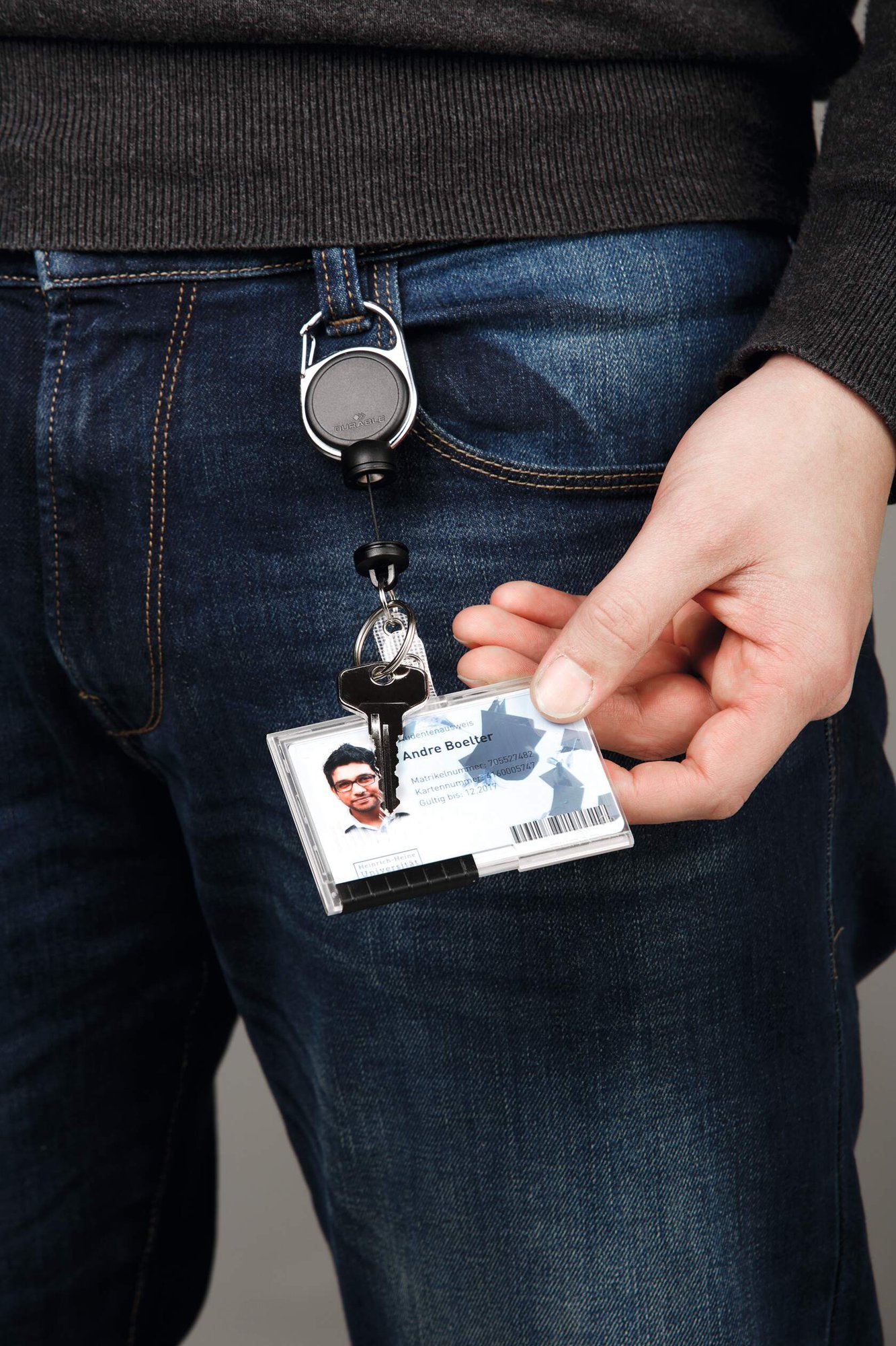 Extra strong German-designed carabiner badge reel with reinforced stud loop fastener perfect for heavy card holders and large sets of keys. The reel features a secure integrated carabiner for attaching to belt loops. Perfect for workplaces with high levels of security.<br><br>The magnet keeps the badge reel neatly rolled up to a max weight of 300g.<br><br>Made in Germany and environmentally friendly in accordance with ISO 14021: includes recycled materials and is 100% recyclable.<br><br>Kind to the planet and built to last.<br><br>Attachment: Press stud loop<br>Reel length: 60 cm<br>Supported weight: 300 g<br>Quantity: 1