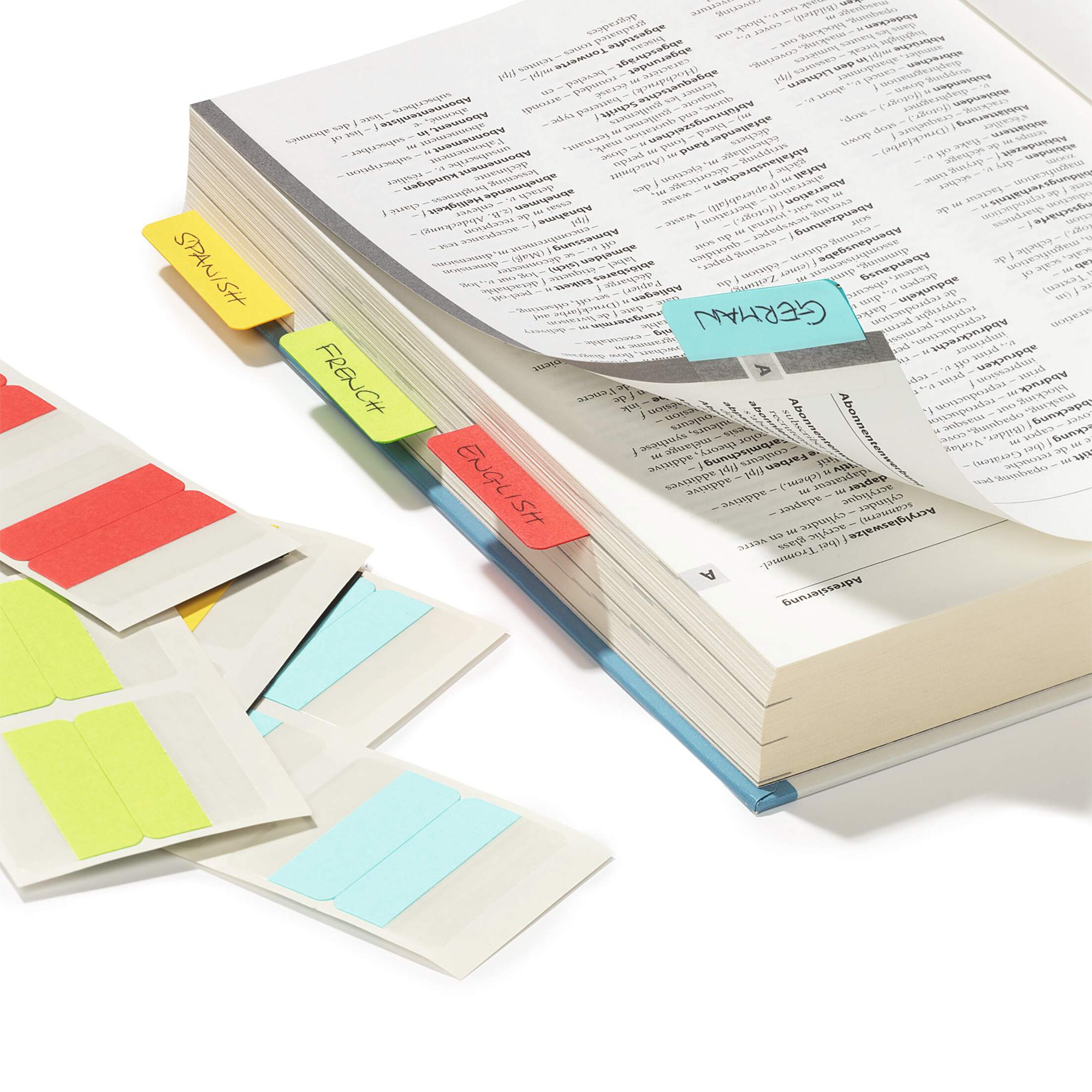 Durable QUICK TAB DUOs are double sided self-adhesive tabs for clear subdividing and labelling of card indexes, project files, catalogues, books etc. Thanks to the extra wide 40mm width, the tabs provide you with a large clear space to easily label your pages.<br><br>This pack of 24 tabs includes a variety of vibrant colours including blue, red, yellow and green. The self-adhesive is strong enough to securely attach to your page while allowing the tabs to be removed without damaging the document.<br><br>Made in Germany and environmentally friendly in accordance with ISO 14021: 100% recyclable