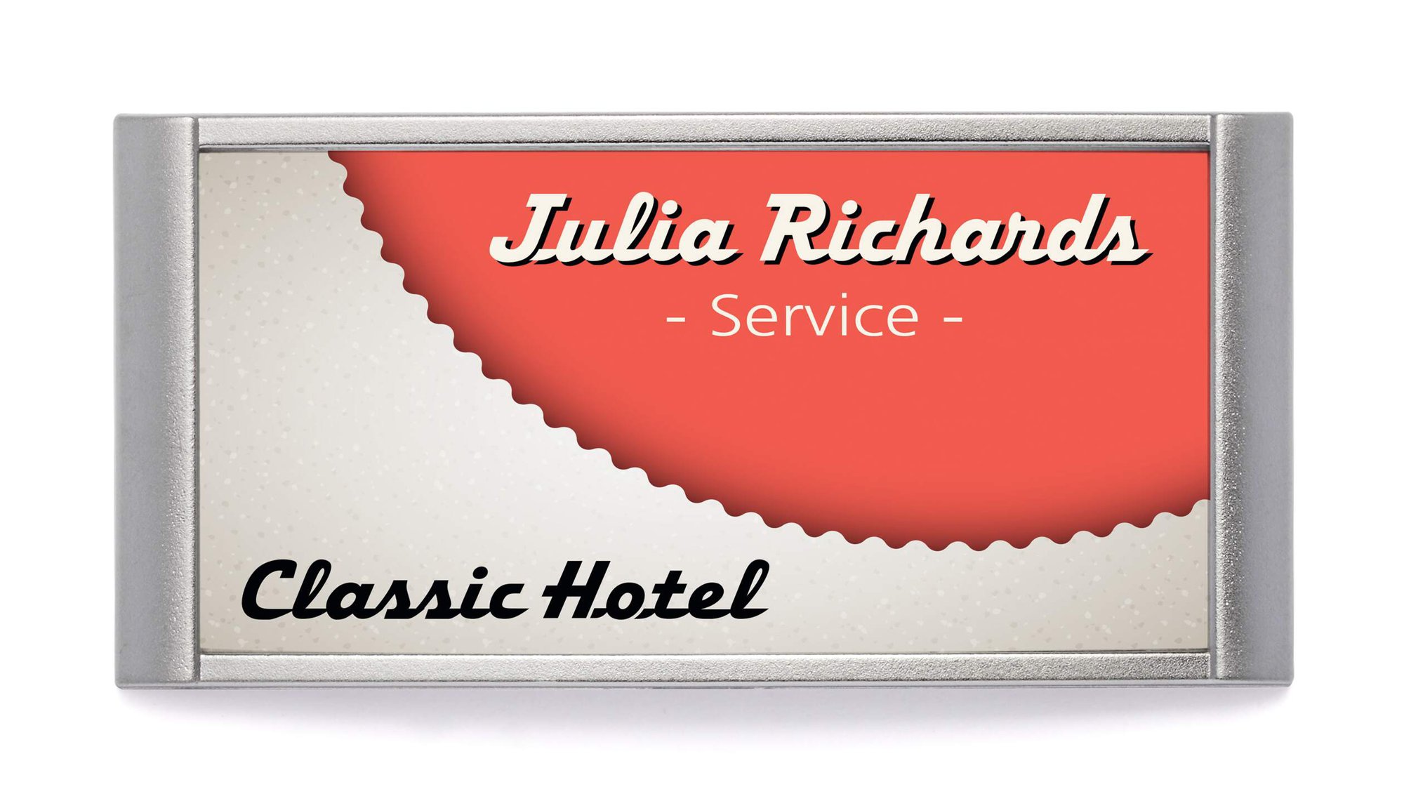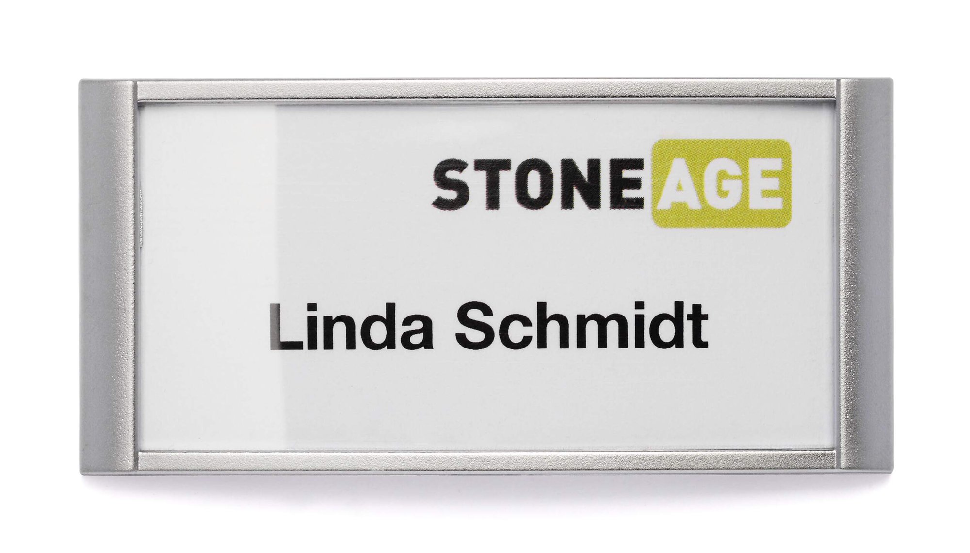 A crystal clear framed name badge with an unpretentious, executive design for use in banks, hotels, hospitality and trade fairs etc. It features a simple and secure magnetic fastening that will not damage clothes, even delicate fabrics.<br><br>Say goodbye to fiddling with labels with our easy tab design that makes exchanging inserts a breeze.<br><br>Environmentally friendly in accordance with ISO 14021: 100% recyclable.<br><br>Provided with 10 pre-cut blank insert cards<br>Compatible with printable insert sheets (product # 142302)<br><br>Made in Germany<br>Insert size: 30 x 65 mm<br>Pack size: 10