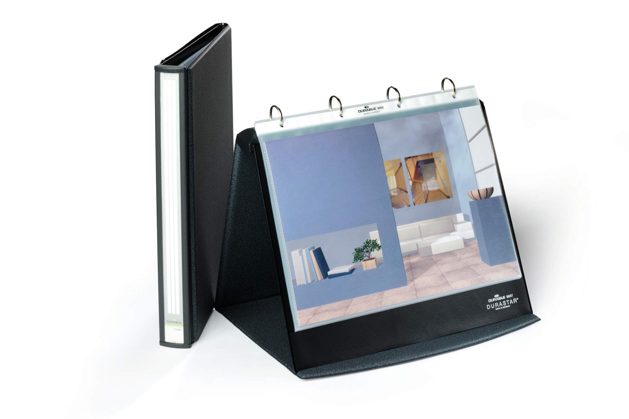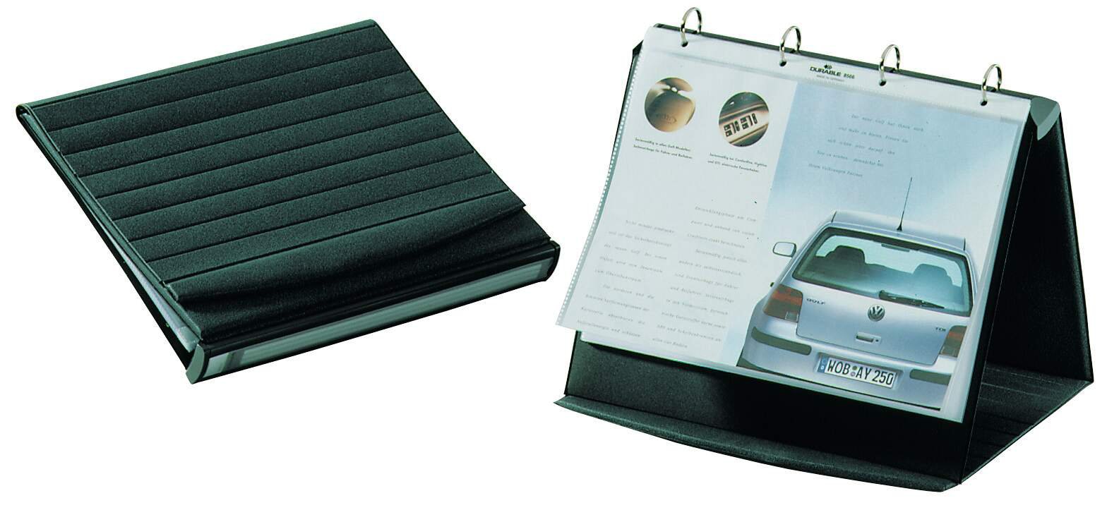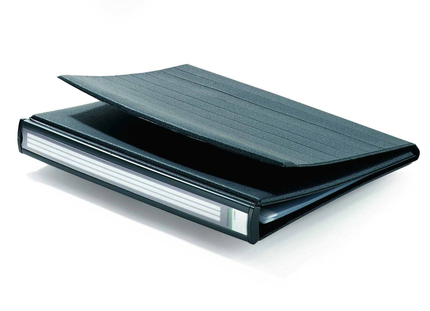 A range of high-quality and stylish presentation table flipcharts. They provide great versatility and can be used for trade fairs, exhibitions, training courses and presentations etc. The quality of this range is evident through the soft ribbed metallic grey PVC material. Provided with a unique removable spine label for the easy identification of all presentations.<br><br>All our flipcharts are built in-house in Germany. They are made to a high standard from premium quality plastics and undergo strict quality control<br><br>Comes with 10 low-reflection, premium-quality punched pockets with reinforced holes (expandable to 30+)<br><br>Size: 290 x 320 x 290 mm (H x W x D)