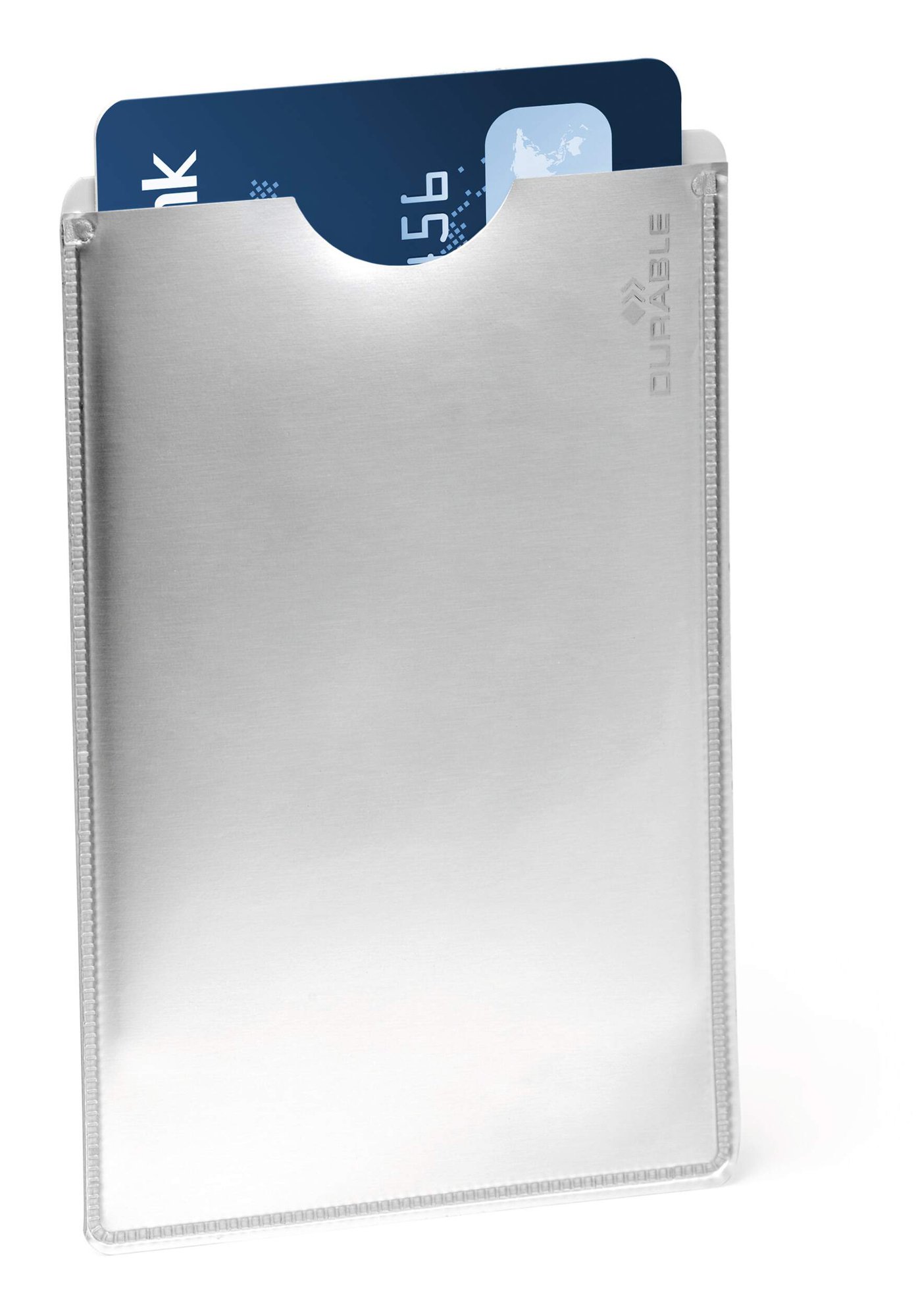 The Durable RFID Secure Sleeve protects you against contactless identity theft and RFID skimming. Tested to a high frequency and rated RFID-Secure by TÜV, our wallets provide the highest level of protection.<br><br>The slim line sleek silver wallet is designed in Germany and features a smooth coated surface for a secure space saving alternative to a traditional wallet.<br><br>Environmentally friendly in accordance with ISO 14021: 100% recyclable<br><br>Holds cards up to: 54 x 86 mm (standard credit card size)