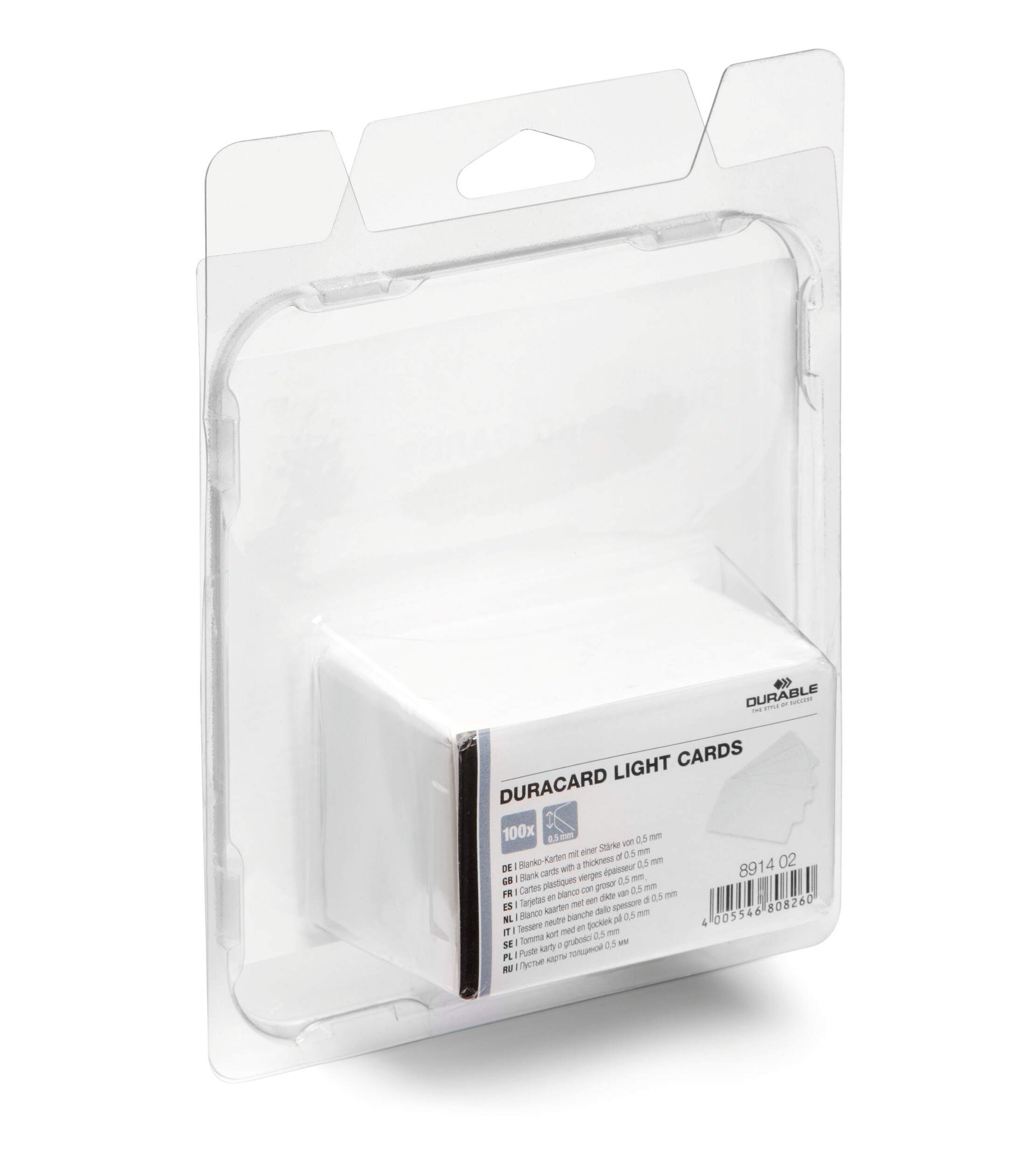 100 Slim PVC-cards for high resolution 300 dpi printing with the DURACARD ID 300 card printer allowing it to print at the highest quality.<br><br>Compatible with our free online name badge design software DURAPRINT, with database functionality, saving you both time and money.<br><br>Strong, reliable, and environmentally friendly in accordance with ISO 14021: 100% recyclable.<br><br>Compatible with: Sublimation printing & Thermal transfer printing<br>Card thickness: 0.5mm<br>Card format: 53.98 x 85.60 mm (Standard)<br>Quantity: 100