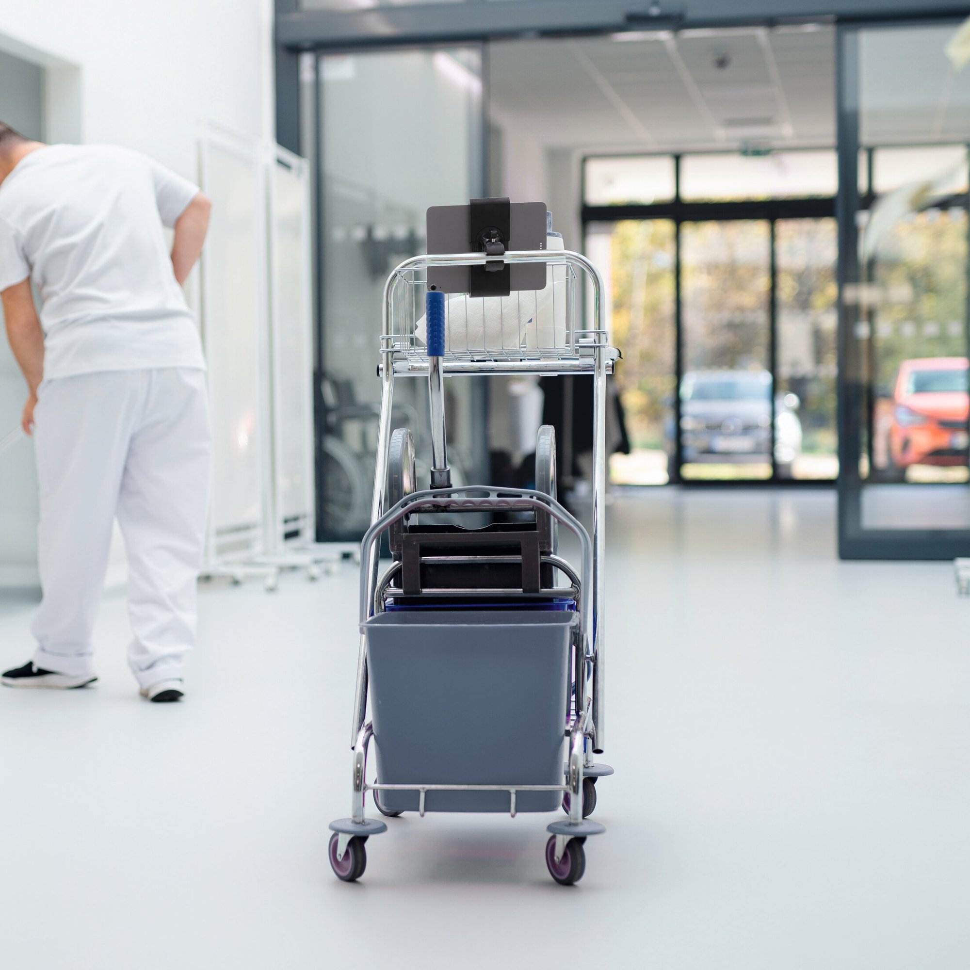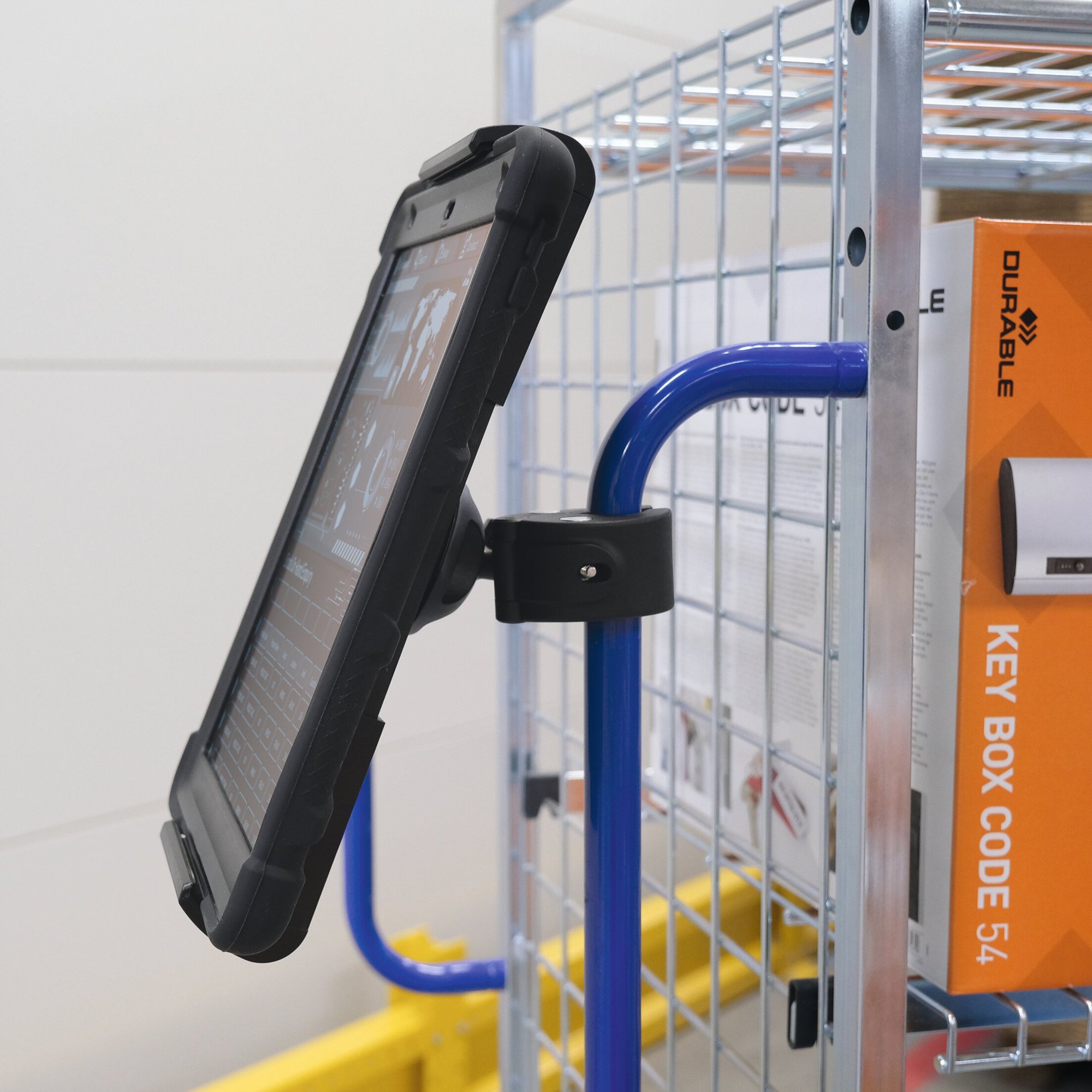 The Durable Tablet Holder TOUGH Clamp XL is a robust solution for mounting tablets on bars, trollies and shelves. Designed to hold 7-13 inch tablets with or without cases, its extra-deep mount ensures a secure fit.<br><br>Featuring a flexible ball joint and 360-degree rotation, it allows for easy adjustment to any angle. The symmetrical clamp design offers effortless handling, while rubberized surfaces protect your device from damage. This versatile holder is ideal for securing tablets in demanding industrial workspaces.<br><br>Compatibleatibility: 7-13 inch tablets (up to 23 mm thick)<br>Dimensions: 13 x 17.7 x 8.2 cm<br>Made in Germany and built to last