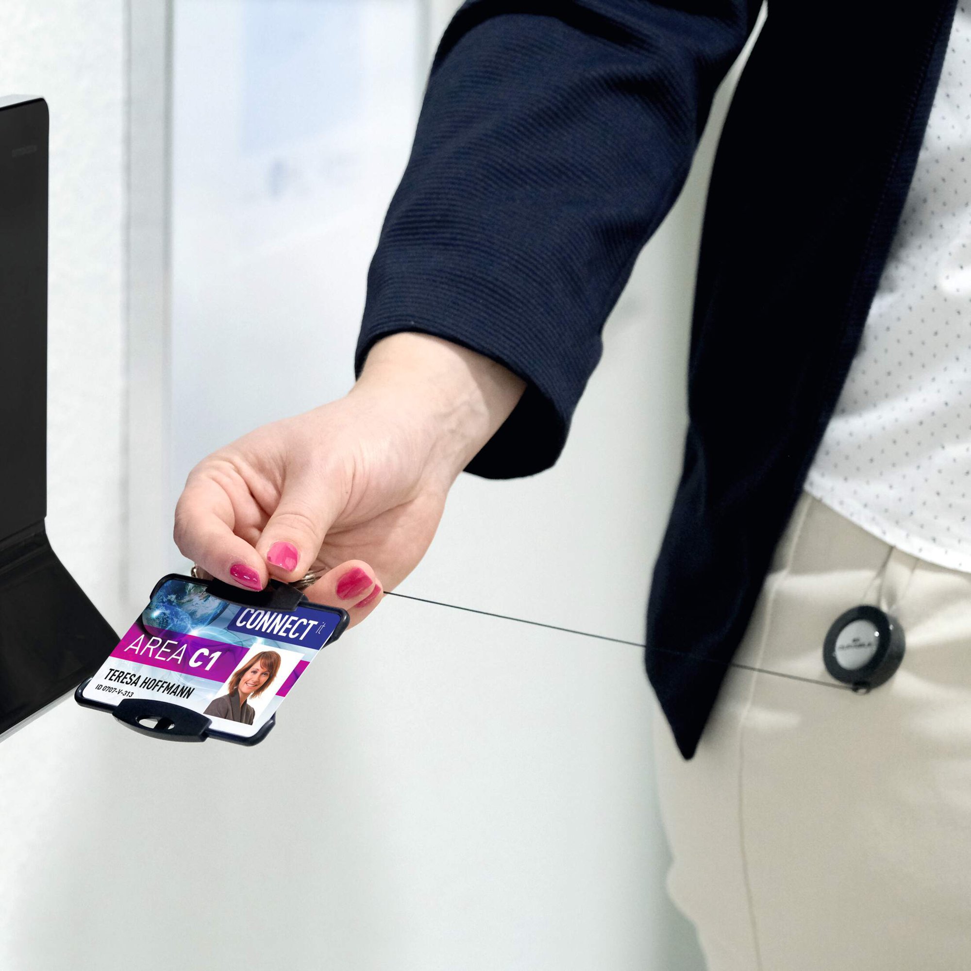 Eco-friendly German-designed ID card holders with a raised centre to protect the magnetic stripe of your pass extending their lifespan. They are made from recycled plastic and have received Blue Angel certification, a high standard for environmentally friendly products.<br><br>The low profile German-design can be used in both portrait and landscape orientations. They can be combined with a range of durable lanyards, chains and badge reels, etc.<br><br>Kind to the planet and built to last.<br><br>Orientation: Landscape or Portrait<br>Supports cards up to: 54 x 87mm (standard credit card)<br>Capacity: 1 Card<br>Quantity: 10