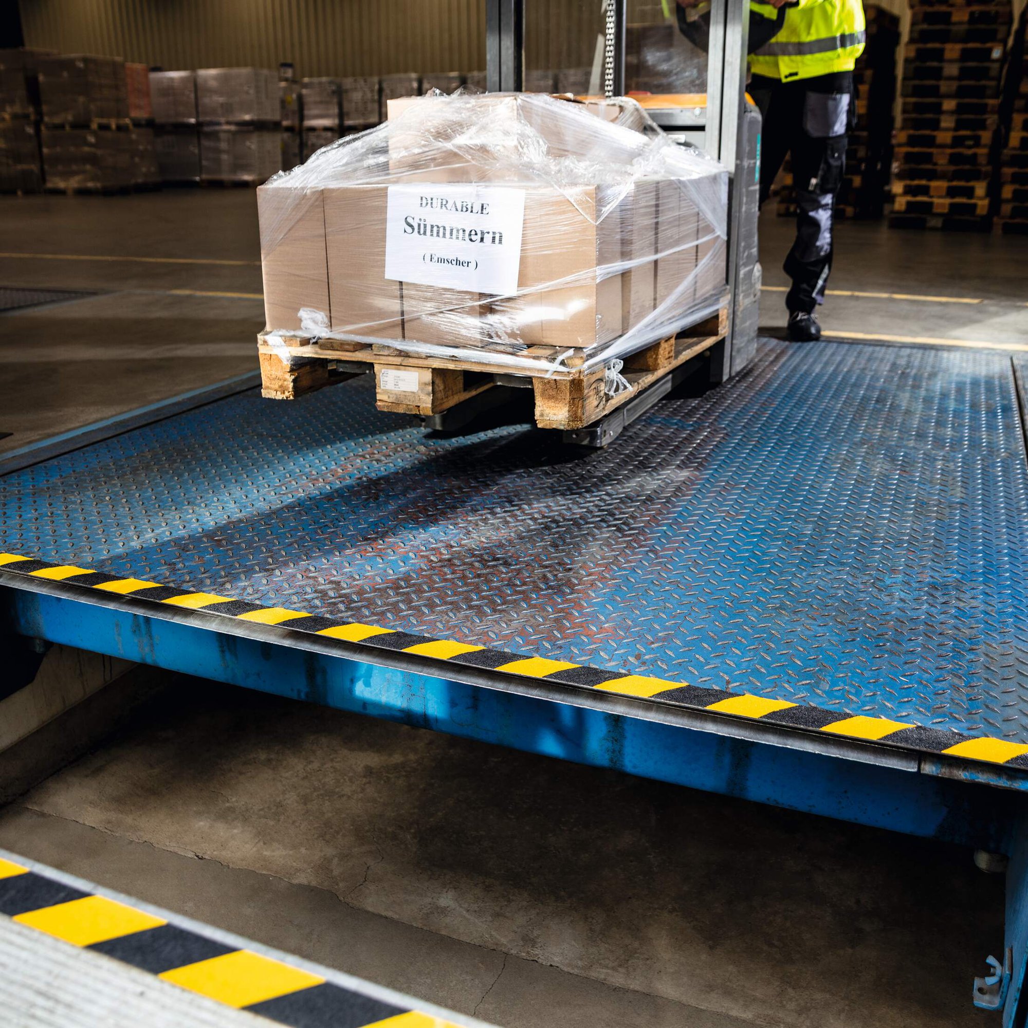 Coarse and durable anti-slip tape for improved safety in indoor and covered outdoor industrial areas. The aluminium tape is perfect for steps, ramps, industrial floors and treads on machines and vehicles.<br><br>The DURALINE GRIP+ range features R13 slip resistance, the highest slip resistance rating available on the market today. It provides excellent performance even when heavily soiled and subjected to heavy use.<br><br>Instructions:<br><br>1. Plan out where you need the tape to be applied<br>2. Thoroughly clean the installation area with detergent and leave to dry<br>3. Peel of the protective coating and slowly apply to the floor<br>4. Apply pressure with a roller or by simply walking along the tape<br>4. Leave to cure for 24 hrs before using forklifts<br><br>Technical standards: ASR A1.5/1.2 (Floors)<br>Abrasion resistance: High<br>Self-adhesive type: Permanent<br>Slip resistance: R13 (DIN 51130)<br>Length: 15 m<br>Width: 50 mm<br><br>Designed in Germany. Made in the UK