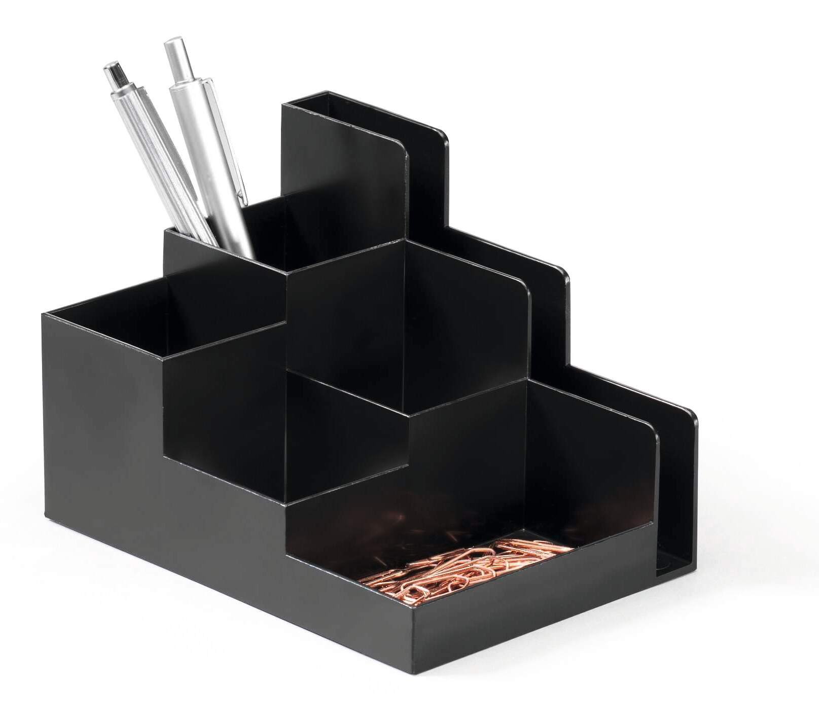 A modern eco-friendly desk organiser that€™s not only great for the planet but looks great on your desktop.<br><br>Our OPTIMO range features timeless minimalist design with a smooth charcoal finish. The 6 variable size Compatibleartments are great for storing pens, scissors, paper clips, makeup brushes, and much more.<br><br>The Blue Angel has been the ecolabel of the German Government for more than 45 years and is recognised across Europe. As the world€™s first ecolabel it€™s a reliable seal of approval and certifies that the products that bear it meet stringent environmental and performance standards.<br><br>Organisation doesn't need to cost the earth<br><br>Colour: Charcoal<br>Compatibleartments: 6<br>Dimensions: 118 x 162 x 110 mm (L x W x H)<br>Quantity: 1<br><br>Made in Germany and built to last