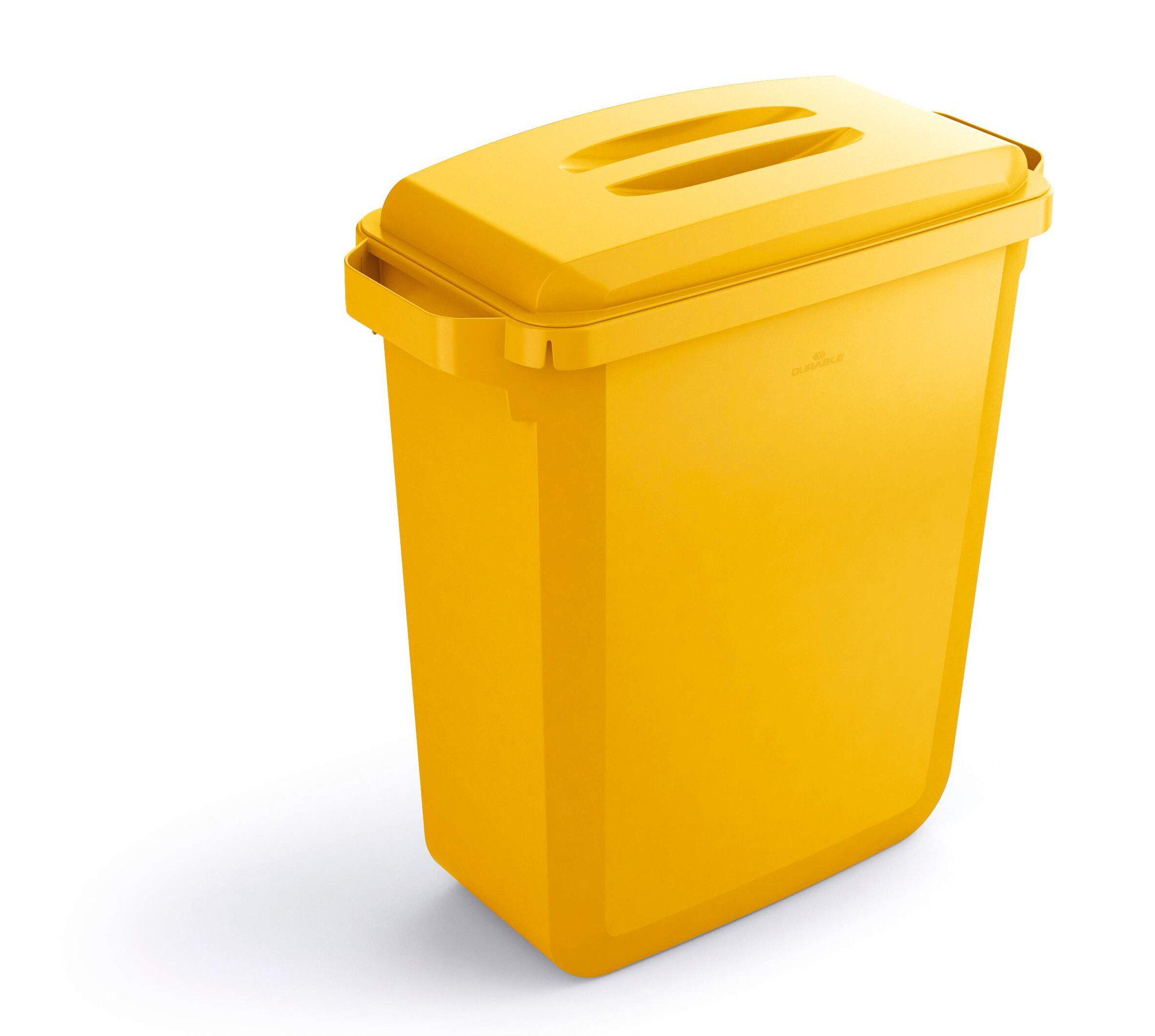 Ensure Compatibleliance with the UK's latest waste legislation with the Durable DURABIN 60L Recycling Bin in Yellow.<br><br>This Compatibleact yet spacious bin is designed to support efficient waste separation and recycling in offices, kitchens, warehouses, and other commercial environments. With a 60-litre capacity, it is ideal for sorting recyclables such as plastics, metals, paper, and cardboard while also being suitable for food waste disposal.<br><br>Manufactured from high-quality, durable plastic, this bin is both food-safe and freezer-safe, meeting European standards pursuant to EU Directive 1935/2004. Its sturdy built-in handles provide a comfortable grip, making lifting and emptying hassle-free. The smooth interior ensures easy cleaning, helping to maintain hygiene in high-traffic areas.<br><br>To help businesses Compatiblely with workplace recycling and waste separation regulations, the DURABIN 60L is Compatible with colour-coded DURABIN lids (sold separately). This allows for clear identification of waste streams, making waste management more efficient and organised.<br><br>An excellent choice for businesses, schools, and catering environments looking to implement a structured and Compatibleliant recycling system.<br><br>Dimensions: 600 x 282 x 590 mm (H x W x D)