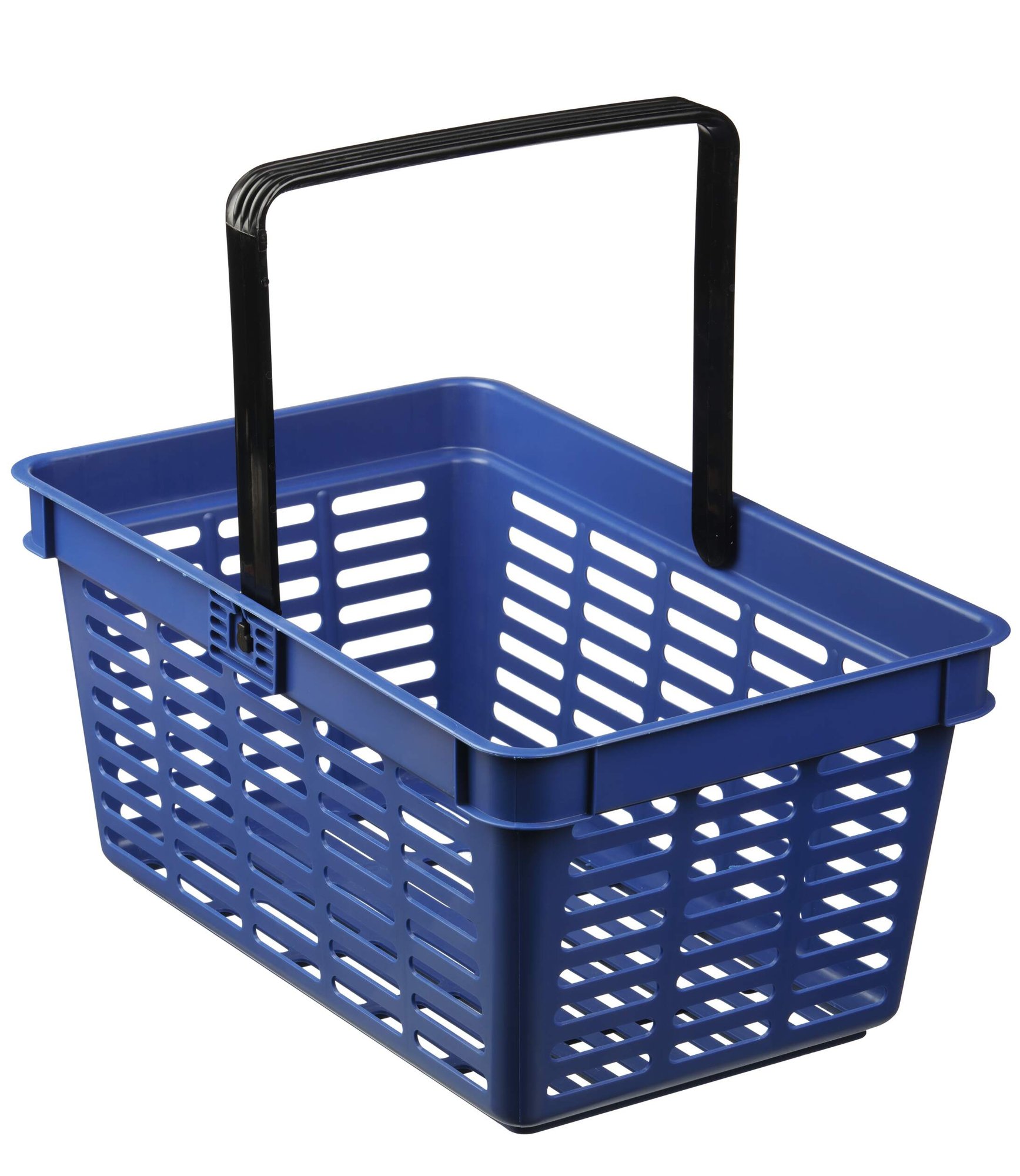 Stable, firm and stackable shopping basket in polypropylene with easy-grip nylon handle.