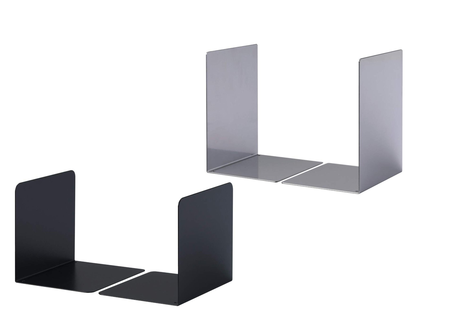 Durable bookends are made from high quality steel with a smooth epoxy powder coated finish for a premium feel. The minimalist German design features a low profile L shape that takes up less space on your shelfs than T shape alternatives.<br><br>Keep your books safe and organised, they are perfect for desks, mantle pieces and shelves providing a neat and tidy appearance.<br><br>Made with 60% recycled materials, 100% recyclable and built in accordance with ISO 14021, a high standard for eco-friendly products.<br><br>Dimensions: 123 x 130 x 123 mm (L x W x H)<br>Quantity: 2<br><br>Designed in Germany and built to last