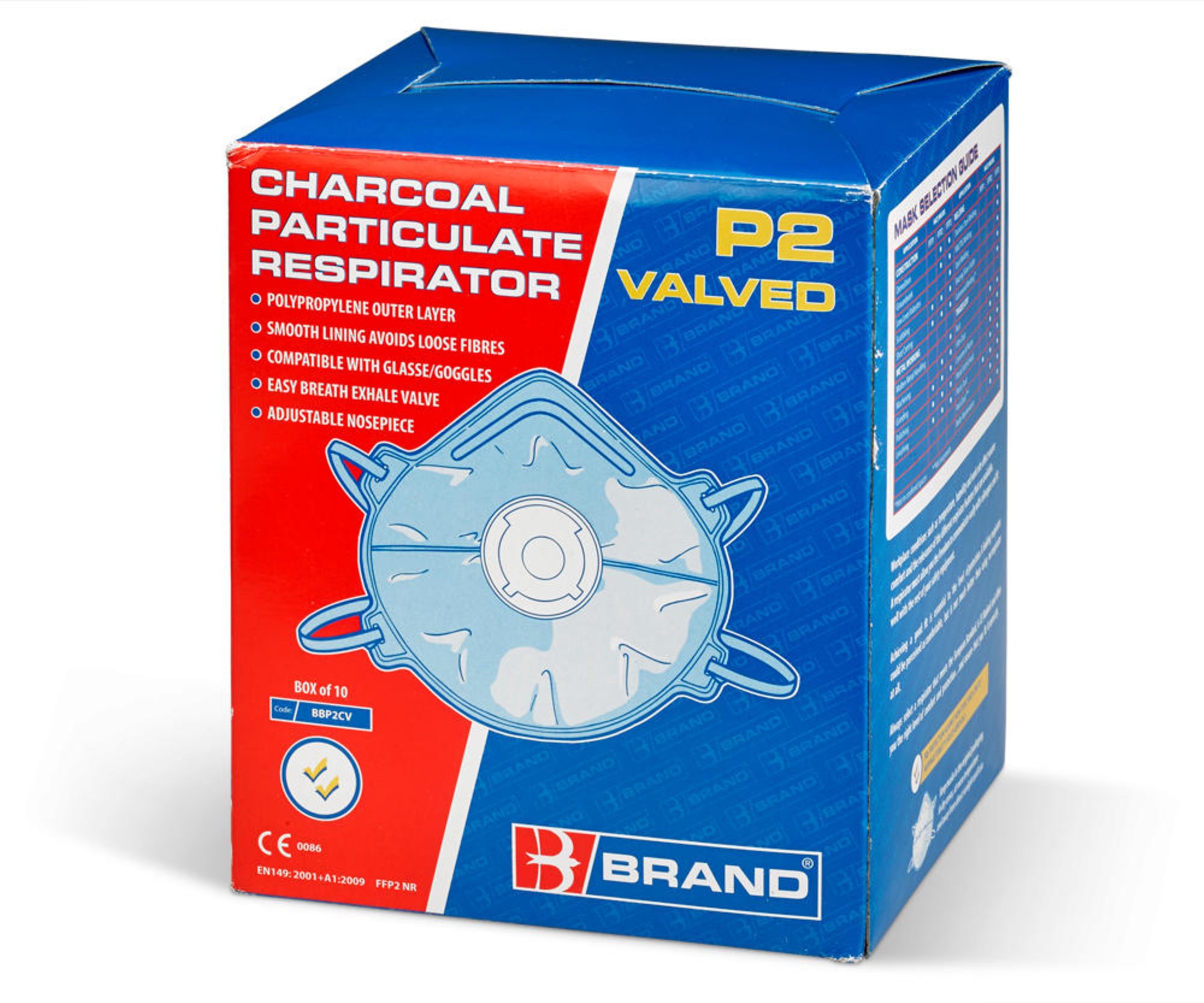 Polypropylene (P.P) outer layer provides smooth lining and avoids loose fibres. Embossed fringe seal avoids fluffy open layers around the edges. Latex free synthetic rubber head strap. Contour design ensures the Compatibleatibility of glasses / goggles and reduces fogging. Soft close-cell nose foam and adjustable nosepiece ensure custom shape and increase the worker comfort and acceptance. Conforms to EN149:2001 + A1:2009 FFP2 NR For Hazard Type: Toxic dusts, fumes and water-based mists. Example: Working with hardwood, glass fibres and plastic (non PVC) and some metalwork.