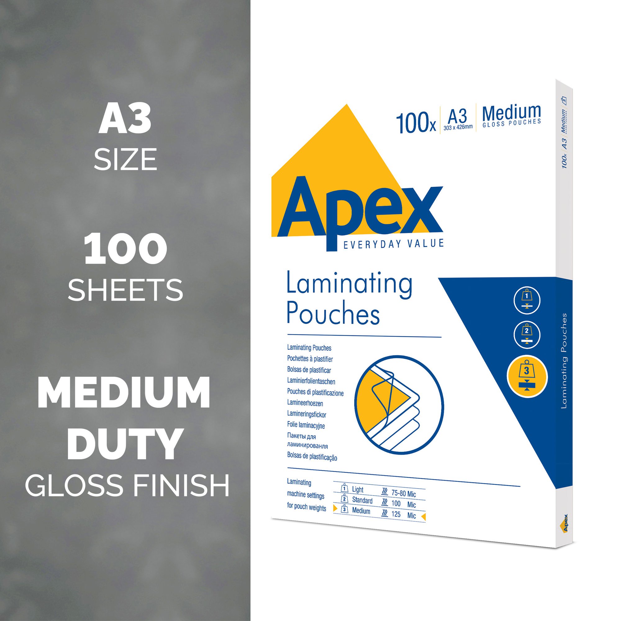 Apex Laminating Pouch A3 Medium Duty 100pk