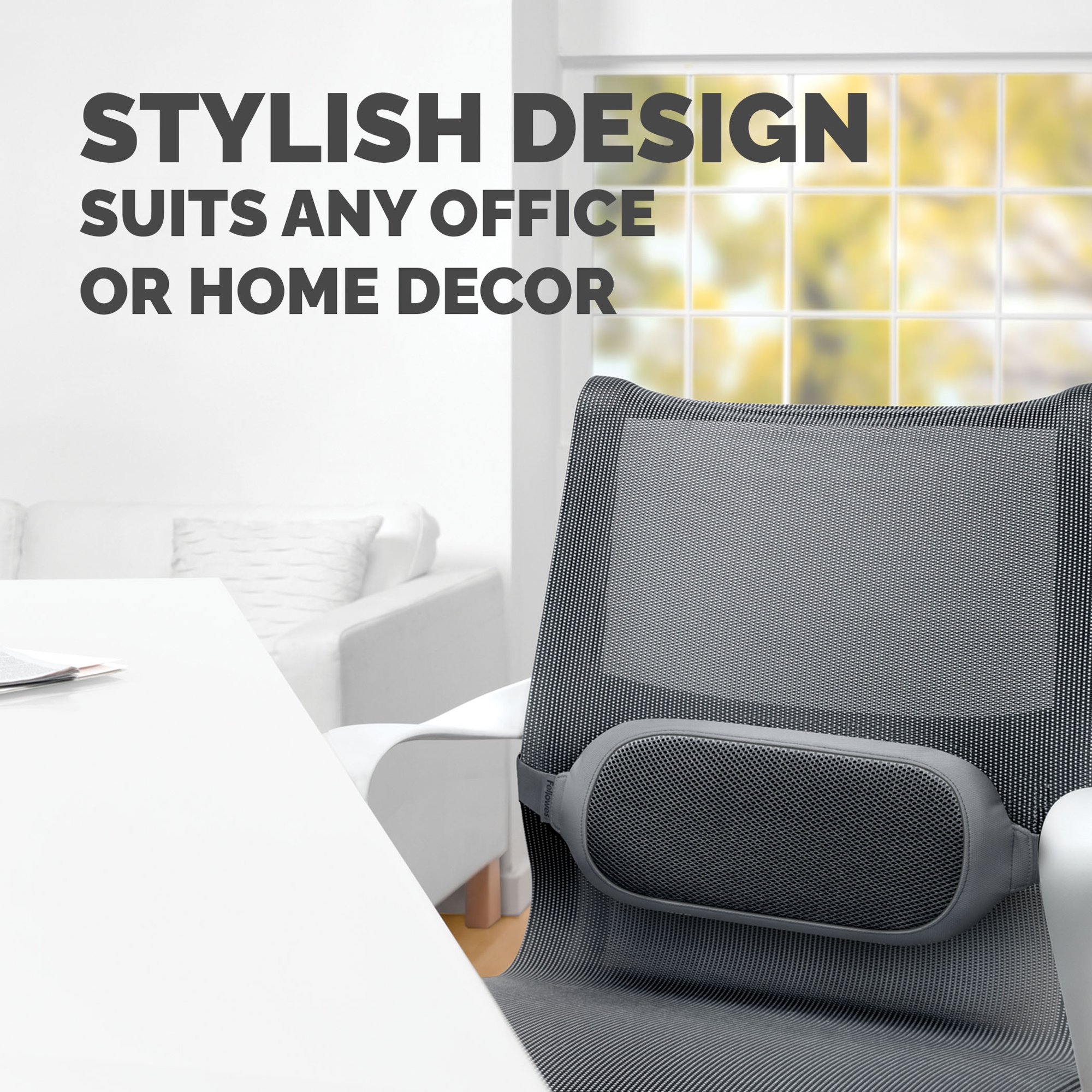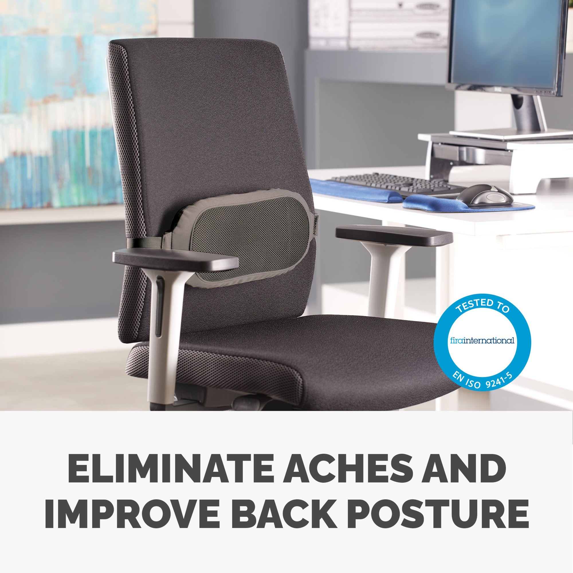 Work in both style and comfort with the I- Spire™ Series Lumbar Cushion from Fellowes. Sitting in a chair without proper support can cause poor circulation, back discomfort and overall fatigue. Maintain the correct posture and help prevent back tension as you work with this stylish yet practical back support. Designed to support the lower back, the foam cushion enhances comfort and support whilst the adjustable strap with durable buckle holds the cushion in place. It is designed to fit any chair it is fully adjustable. The contemporary and clean design Compatiblelements the modern workspace perfectly. Discover your own inspiring workspace with the full range of l -Spire™ Series from Fellowes, home office accessories.