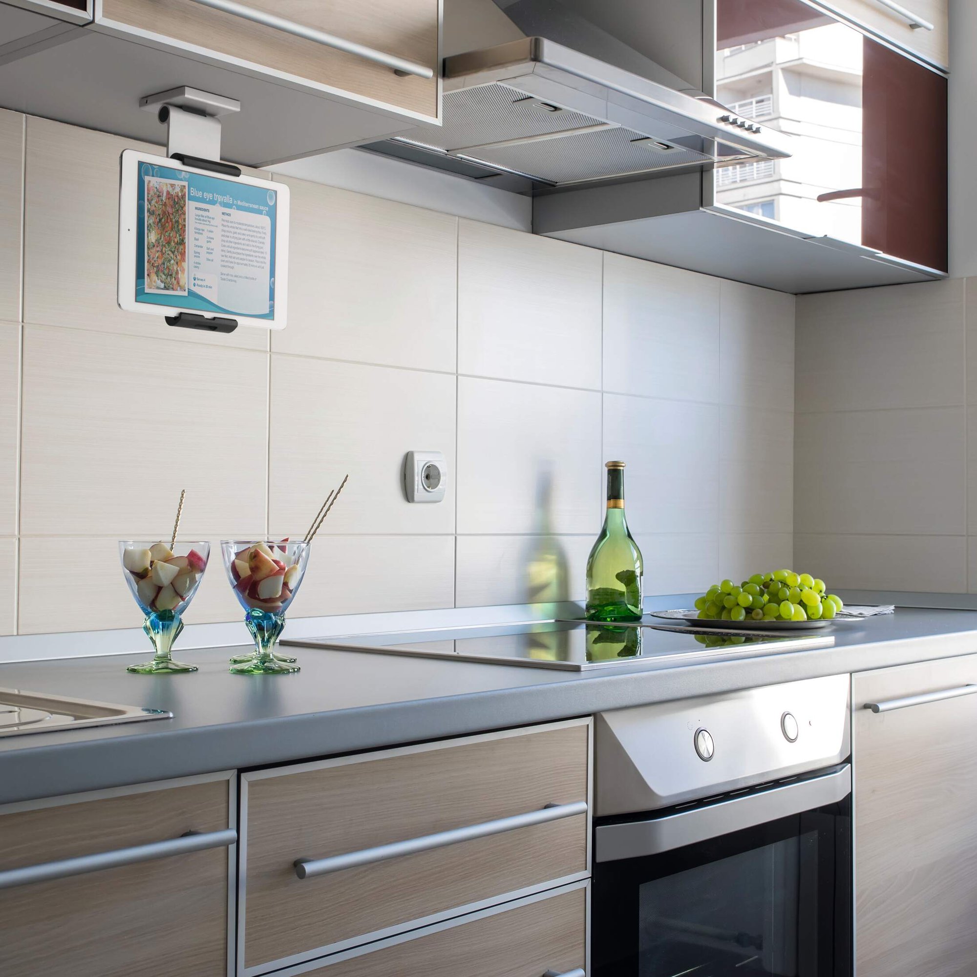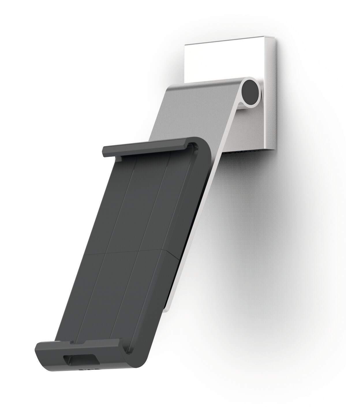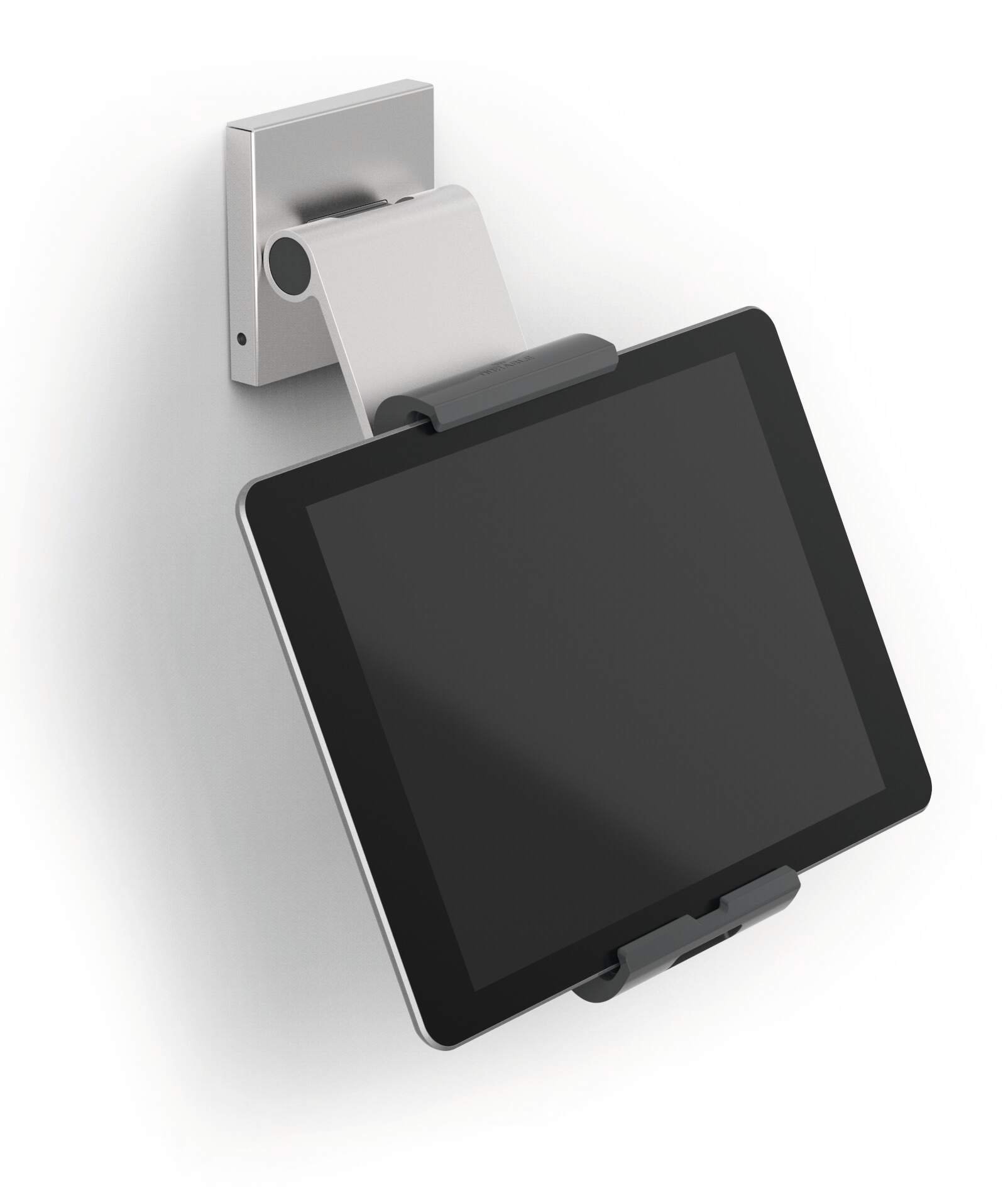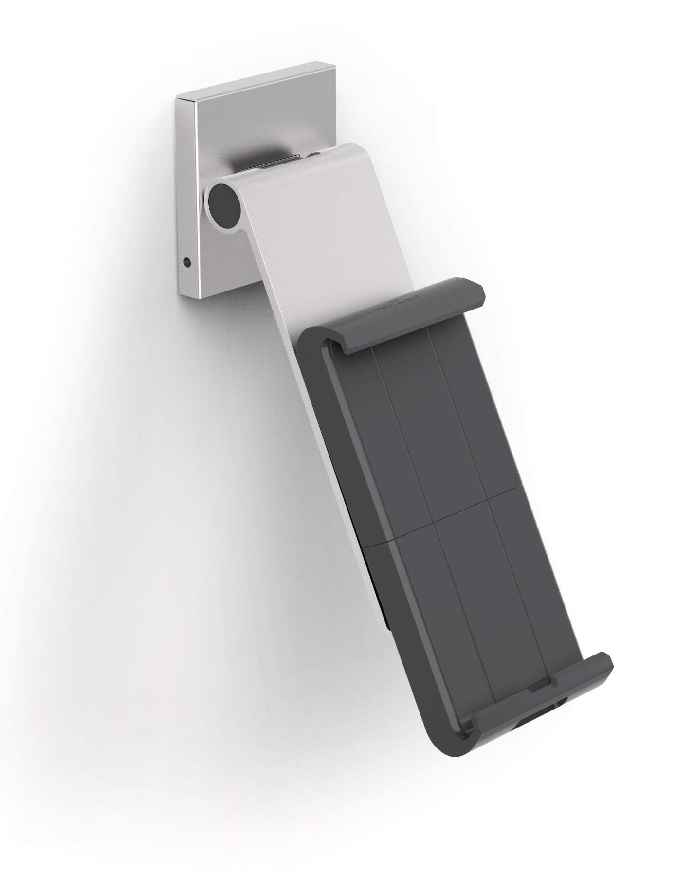 A modern and stylish wall mounted tablet holder in Silver which is perfect for any environment. The tablet holder securely holds tablets from 7 to 13" and includes an anti-theft system to prevent unauthorised removal of the tablet. The clamp securely holds the tablet in place and is rotatable 360° for use in both portrait and landscape format.<br><br>The tablet holder has a tilt angle range of 0° to 80° for Compatiblelete flexibility. The wall mounted tablet holder is easy to assemble and securely attaches to walls. Perfect for use in production plants