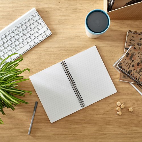 The RHINO Recycled A5 Twinwire Hardback Book is a perfect place for all your notes and ideas. The notebook includes 160 pages of 100% recycled paper, lined with 8mm lines, and a recycled hardback cover to protect your notes. The twinwire binding allows the book to lay flat.