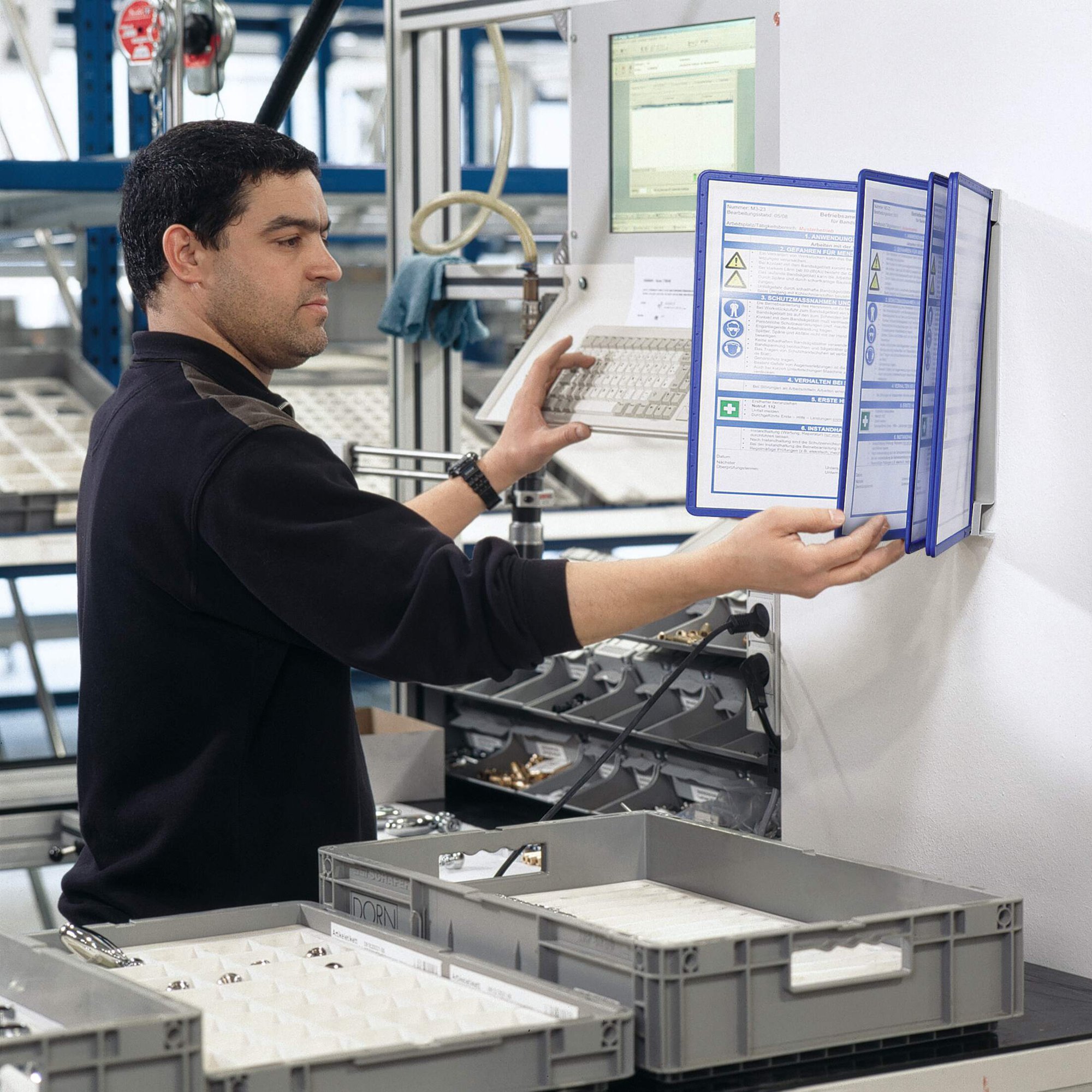 Enhance your organisation with our VARIO Display Panel System, including 5 A4 SHERPA panels. Crafted from durable polypropylene and framed with vibrant coloured profiles, these panels boast low-reflection film for clear readability Compatible with scanners and barcode readers.<br><br>Effortlessly replace panels with the convenient pivot mechanism. Backed by a 5-year warranty, trust in the durability and reliability of our system for long-term organisational needs.<br><br>Mount type: Wall mount<br>Included panels: 5<br><br>Made in Germany