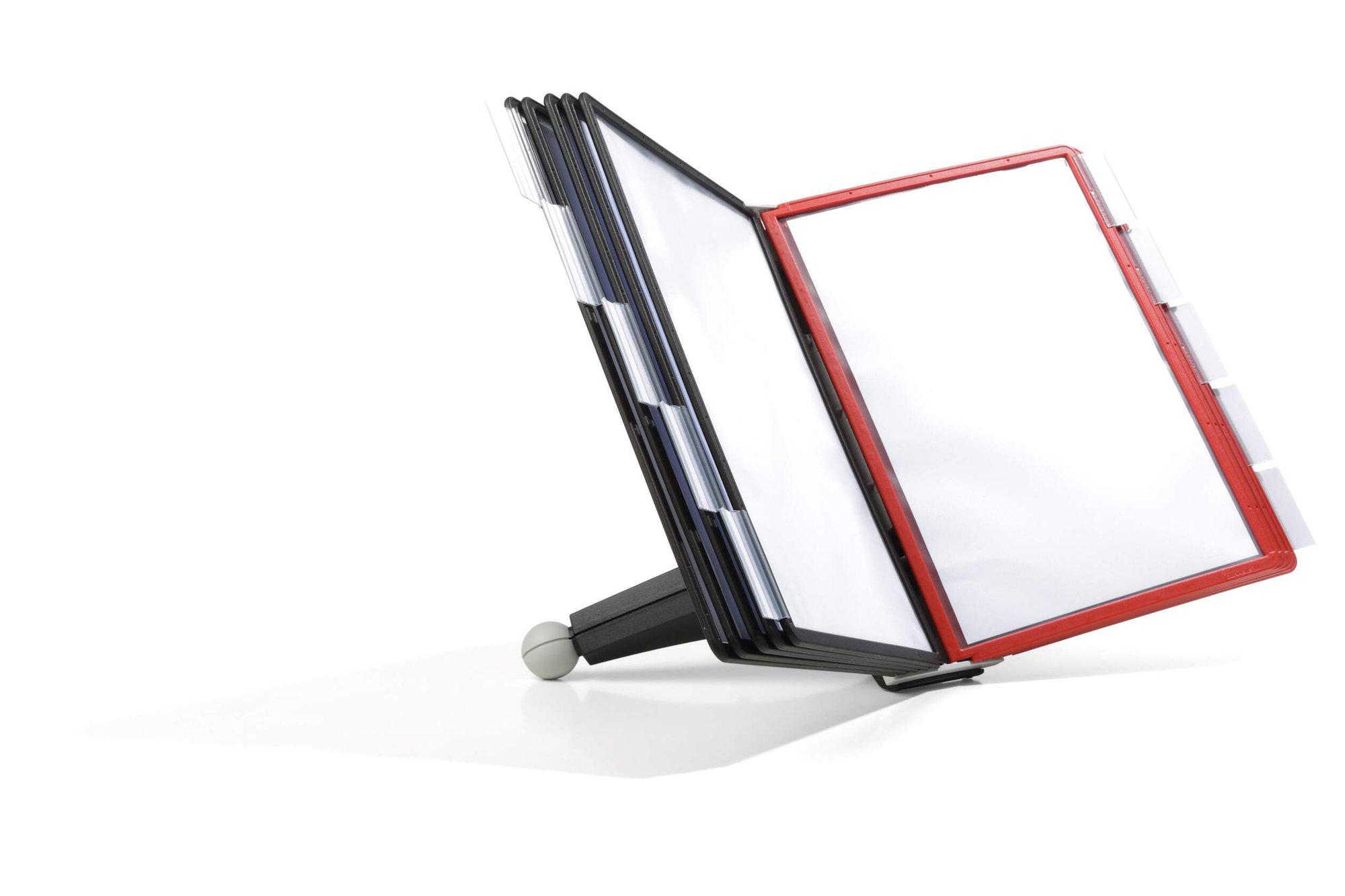 Enhance your organisation with our SHERPA Display Panel System, including 10 A4 panels and replaceable index tabs. Crafted from durable polypropylene, these panels boast low-reflection film for clear readability Compatible with scanners and barcode readers.<br><br>Effortlessly replace panels with the convenient pivot mechanism. Backed by a 5-year warranty, trust in the durability and reliability of our system for long-term organisational needs.<br><br>Mount type: Table stand<br>Included panels: 10<br><br>Made in Germany