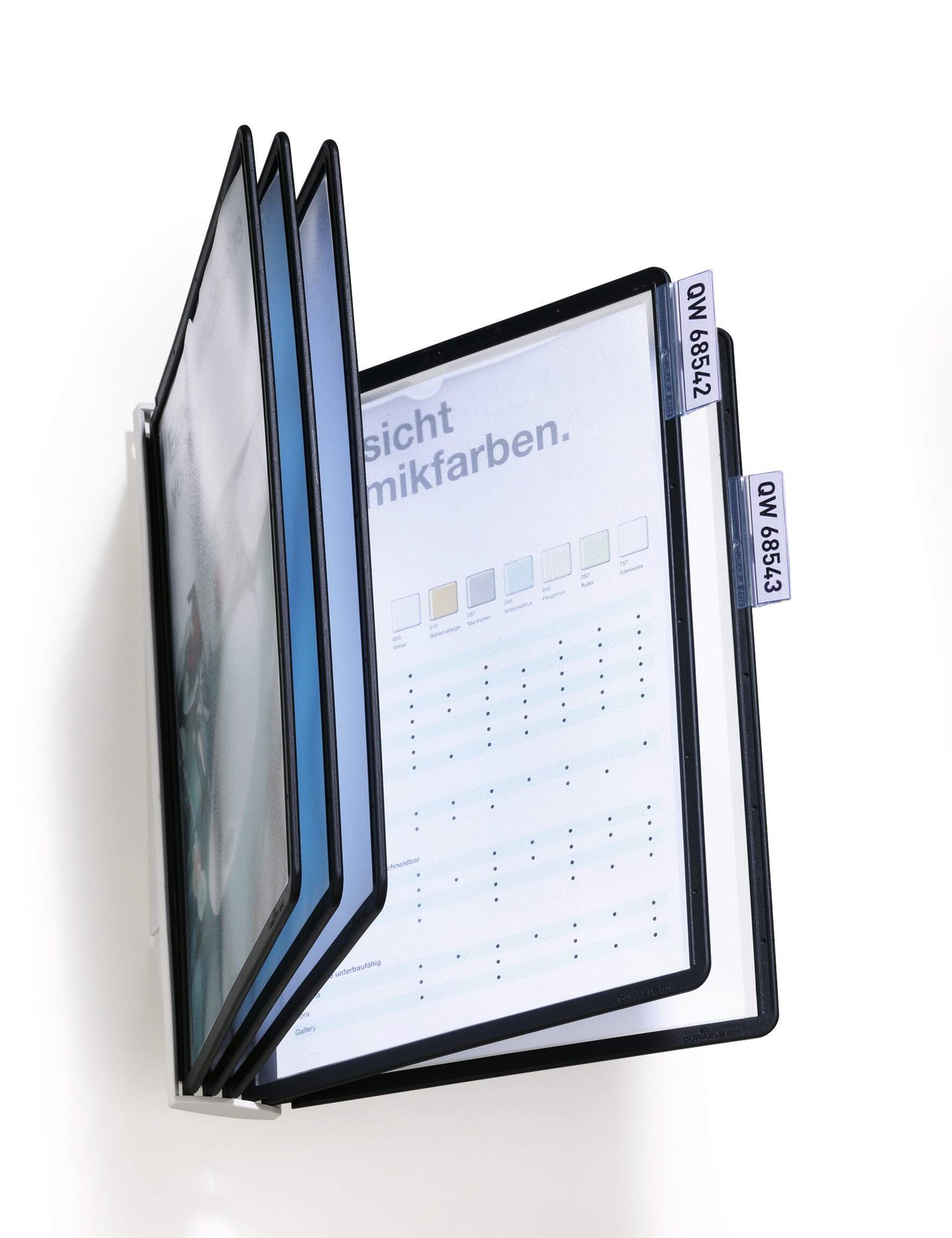 The DURABLE SHERPA range is a stylish display panel system range with a sturdy base. Perfect for use in a showroom, office, etc. This wall unit includes 5 black A4 double sided panels for holding up to 10 documents. The panels are anti-glare and copy-proof which makes it easy to use. Great for holding price lists, product information, frequently used telephone numbers, etc.