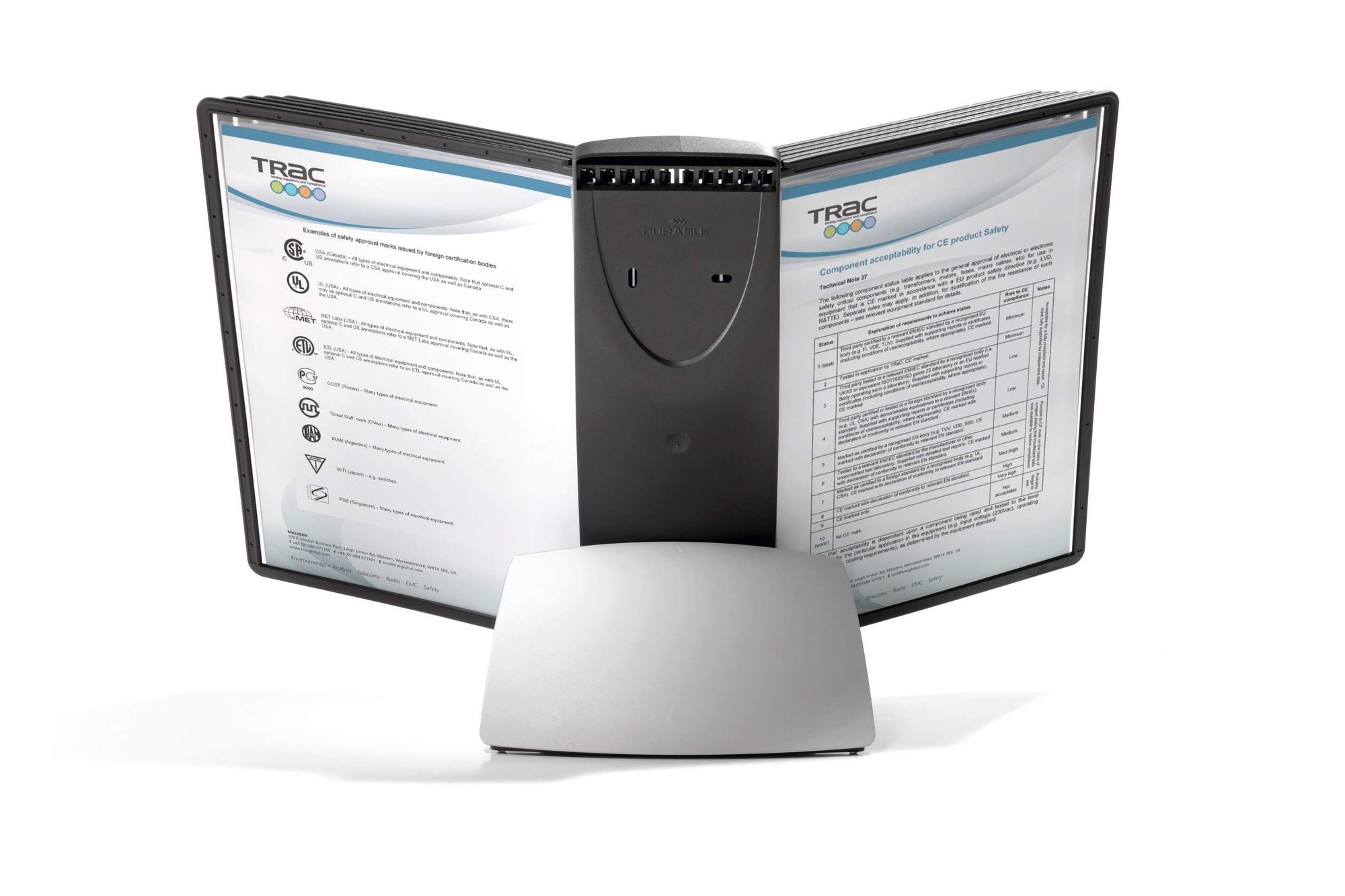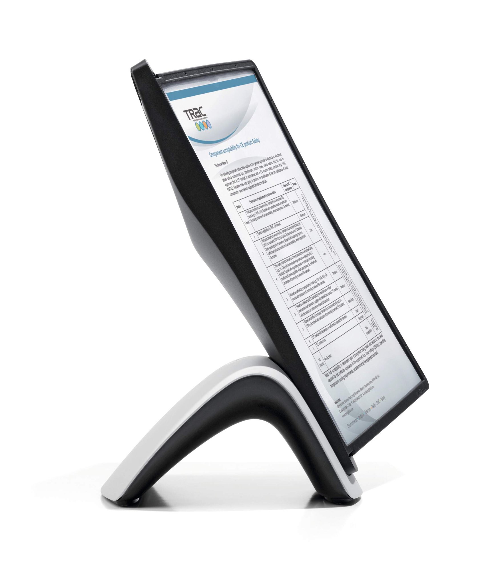 Stylish contoured table stand with 10 SHERPA PANEL display panels in A4 format (10 panels in Black). Ideal for office use and for all users who want to change information regularly or have important documents stored close to hand. All Sherpa units come with a 5 Year Guarantee.