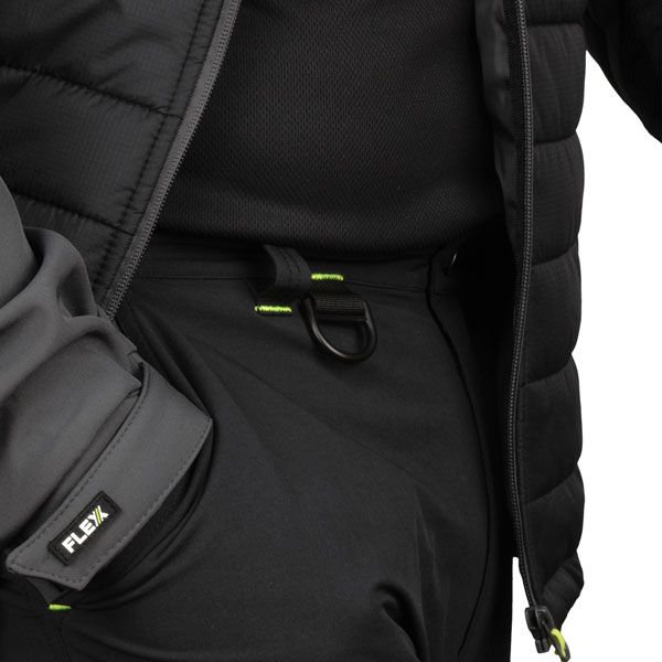 Medium weight trouser Four way stretch fabric Flex stretch fabric allows for a comfortable and functional fit YKK heavy duty zip Heavy duty button fastener Half elasticated waist for added comfort Five loop belt waistband D ring for security or ID tag Hi viz accents and bartacks for added styling Two angled hip pockets Multipurpose pocket to right thigh Two rear pocketsMain Fabric: 89% Nylon, 11% Spandex (225gsm)