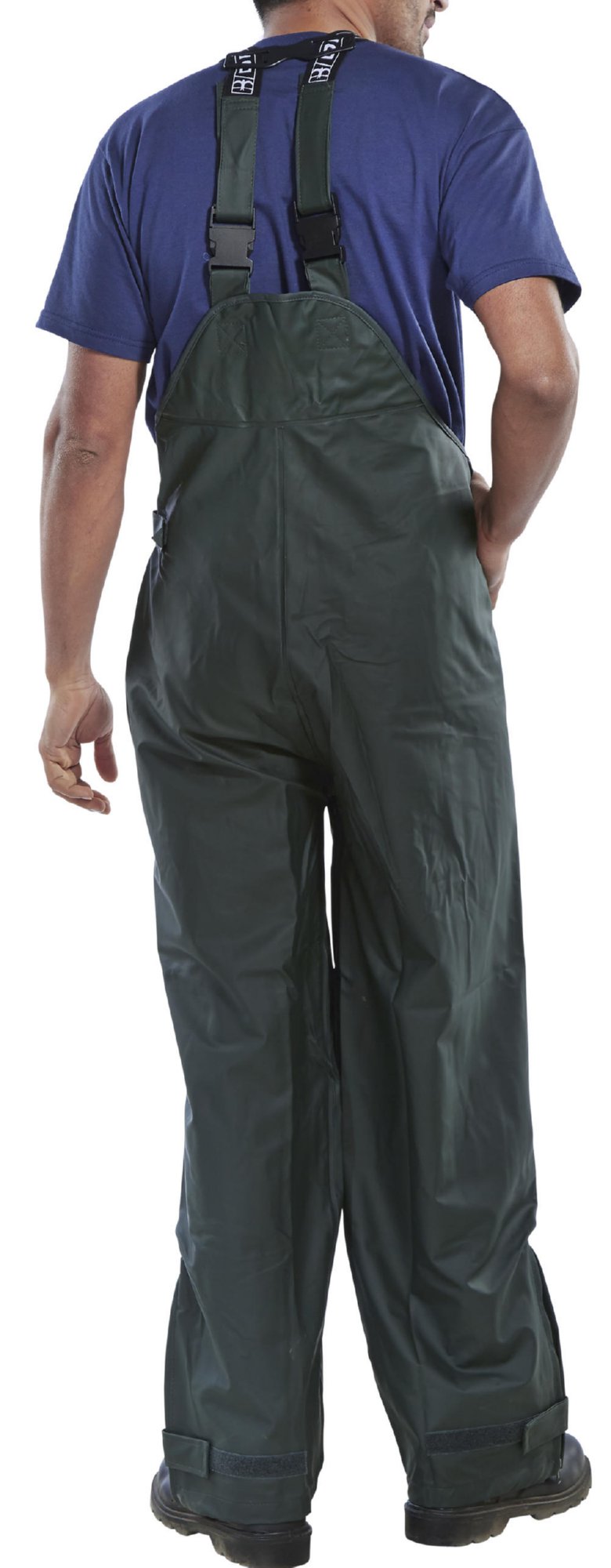 Polyester with PU coating, Adjustable elasticated braces with quick release buckles, Internal bib pocket with zipped entry, Side waist expension for easy €on-off€, 25cm zips at ankles with hook and loop tab closure, Stitched and welded seams